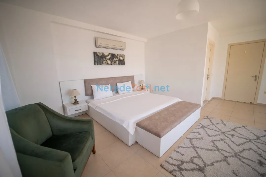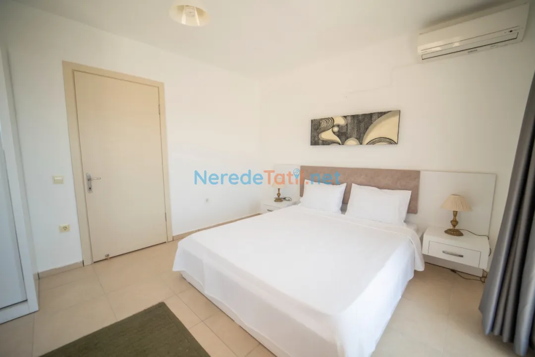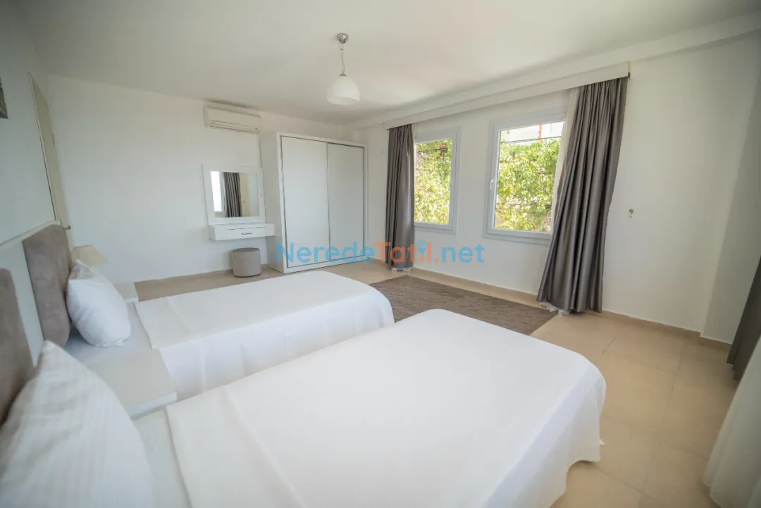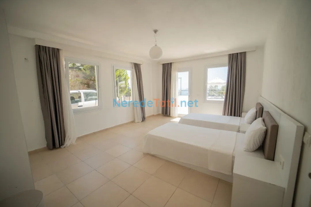 Kızıltaş'ın eşsiz atmosferinde konumlanan bu villa, deniz ve doğa manzarası ile misafirlerine unutulmaz bir konaklama deneyimi sunuyor. Altı yatak odası ve beş banyo ile toplam 12 kişilik kapasiteye sahiptir. Villanın geniş özel havuzu, 4 metre genişliğinde, 12 metre uzunluğunda ve 1.45 metre derinliğindedir, bu da tatilcilerin rahatlaması ve eğlenmesi için mükemmel bir ortam sağlar.