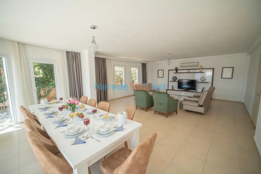 Merkeze sadece 500 metre, plaja 2 kilometre mesafede bulunan bu şehir içinde yer alan villa, hem huzurlu bir tatil hem de sosyal olanaklara kolay erişim imkanı sunar. Market ve restoranlara yakınlığı sayesinde ihtiyaçlarınızı kısa sürede giderebilirsiniz.