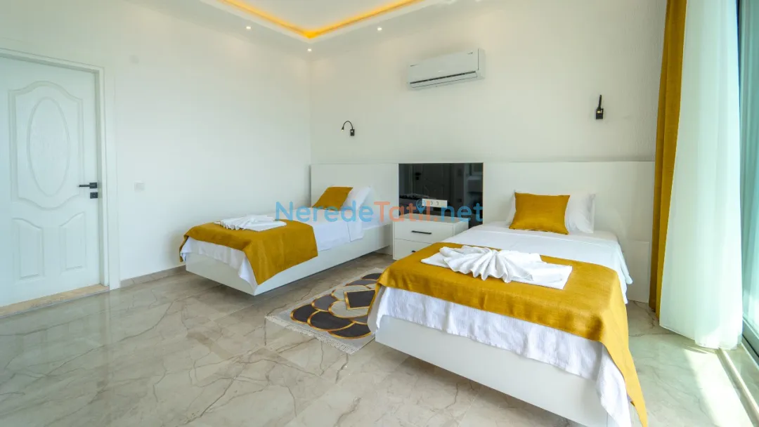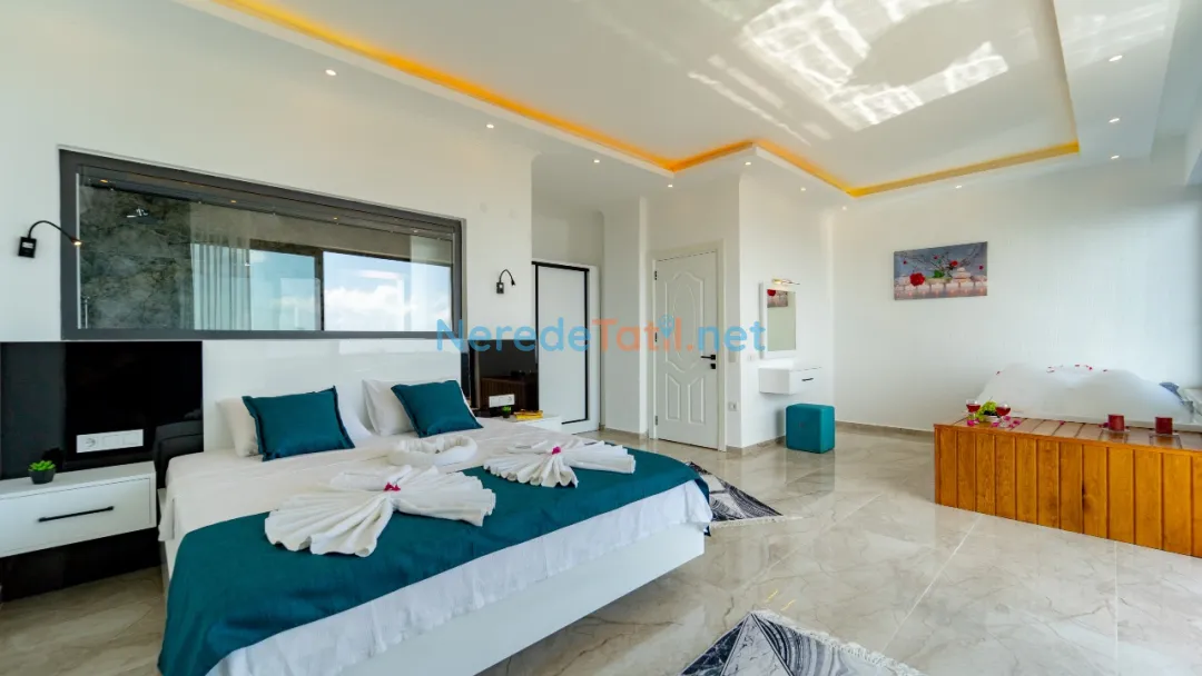 Villa, çift kişilik bir yatak ve iki tek kişilik yatak ile donatılmış olup, aileler veya arkadaş grupları için idealdir. Kördere'nin merkezi konumunda yer alması sayesinde plaj, market, restoran gibi noktalara kolayca ulaşabilirsiniz.