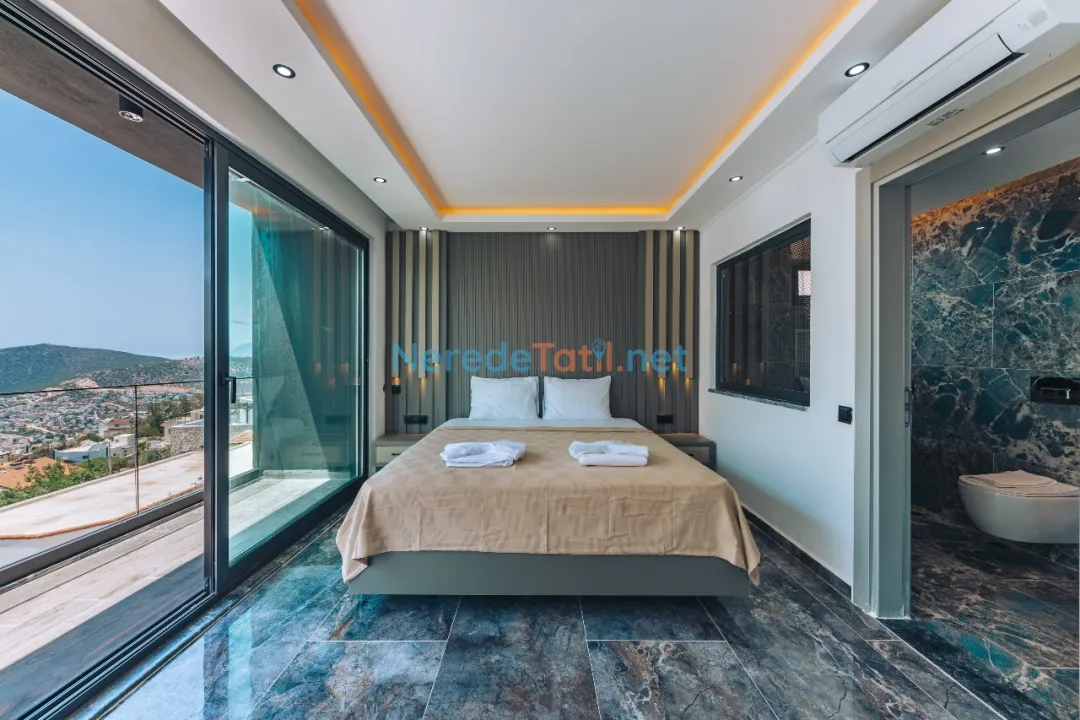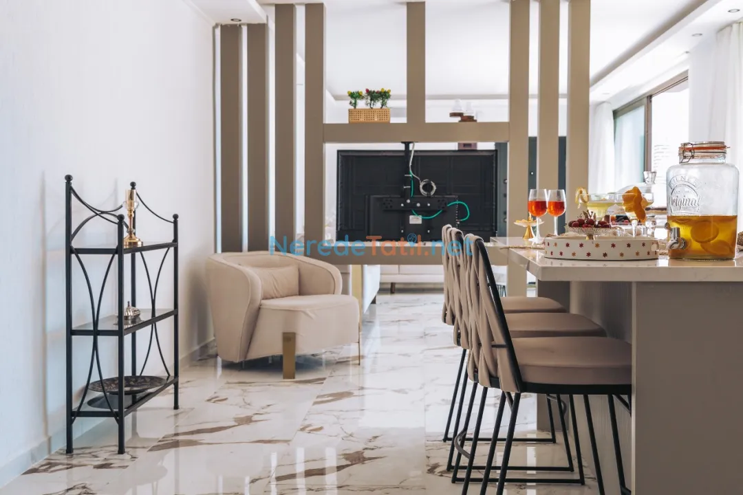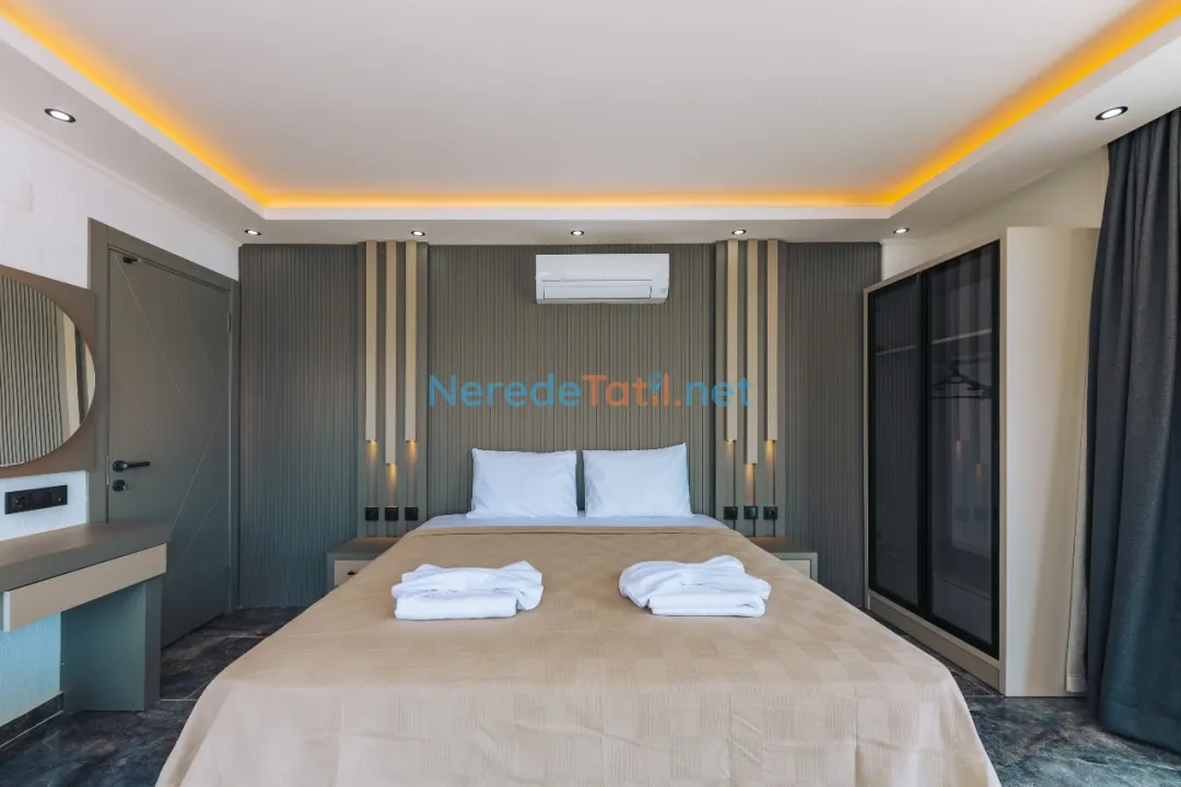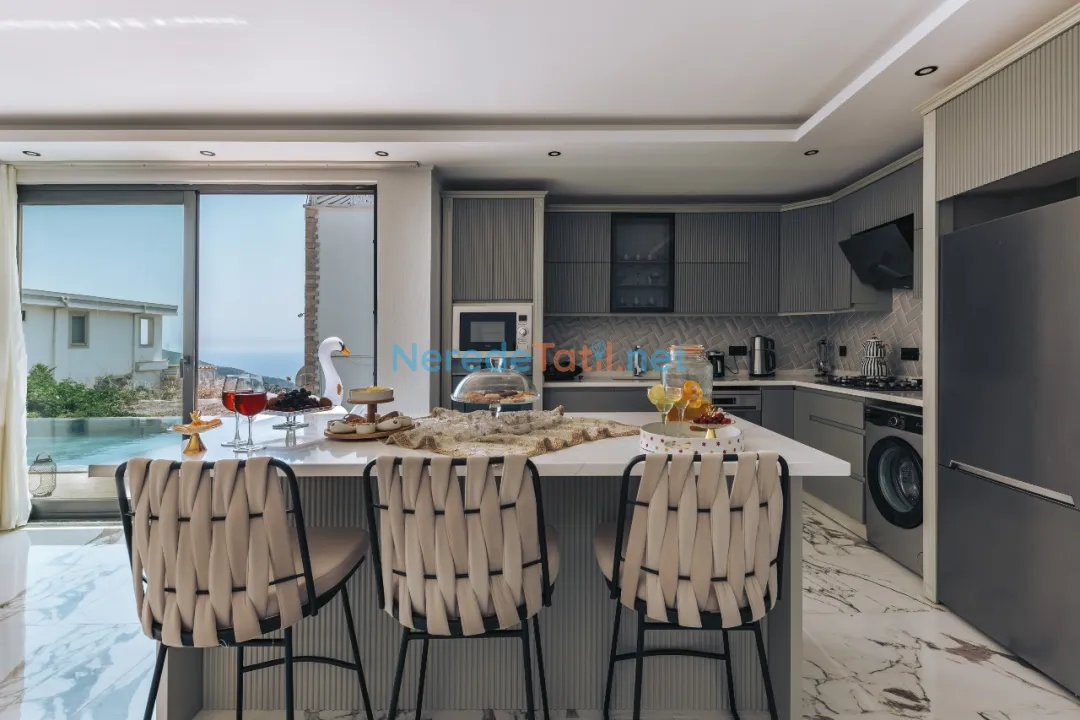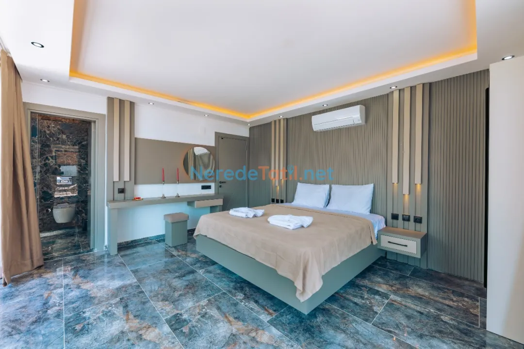 Kördere'nin eşsiz konumunda yer alan bu villa, deniz manzarası ve doğa manzarası ile konuklarına unutulmaz bir tatil deneyimi sunuyor. Üç yatak odası ve üç banyosu bulunan villa, altı kişilik konaklama kapasitesine sahiptir. İki çift kişilik ve iki tek kişilik yatak, konforlu bir uyku imkanı sunar.