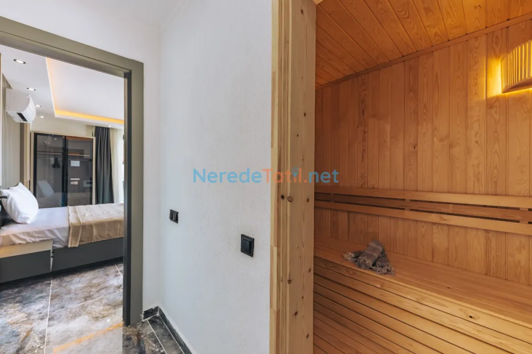 Villanın merkezi konumu, markete ve restorana sadece 100 metre mesafede, plaj ve şehir merkezine ise 3000 metre uzaklıktadır. Otopark olanakları ve saç kurutma makinesi, ütü gibi ev konforu sunan detaylar da mevcuttur. Havuz terasında deniz manzarasının tadını çıkarabilir ya da kapalı alanda huzurlu bir sauna deneyimi yaşayabilirsiniz.
