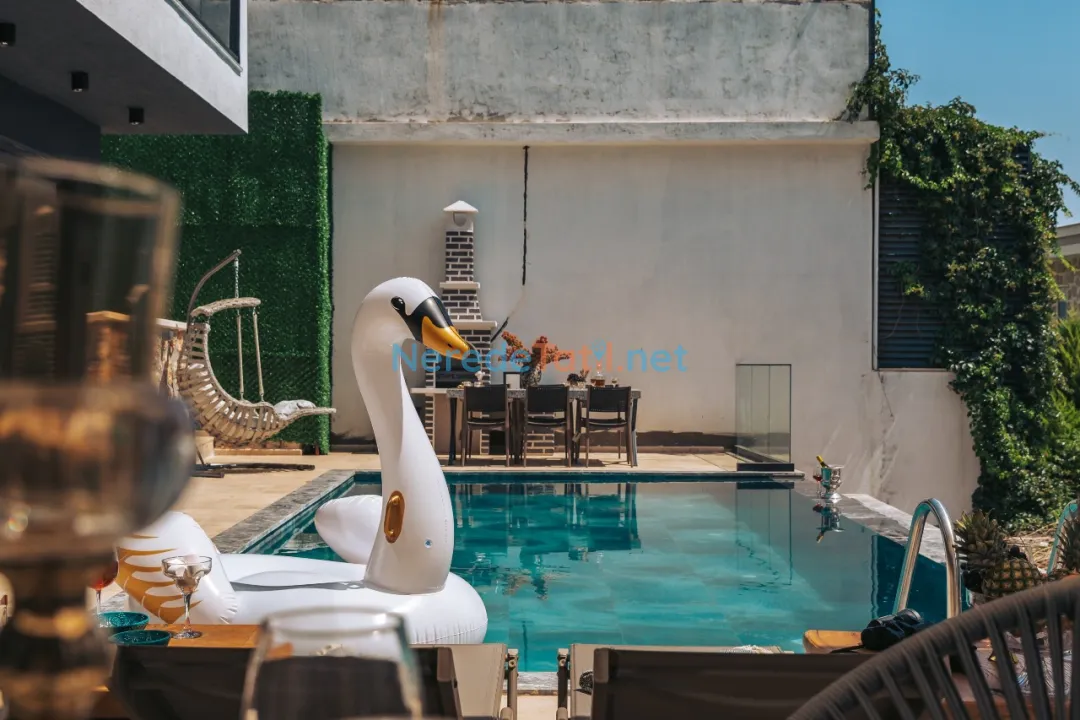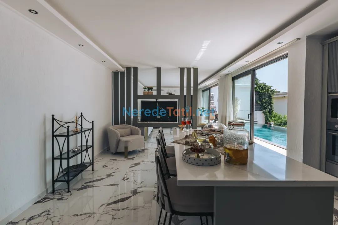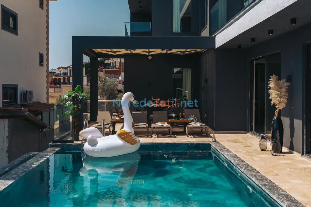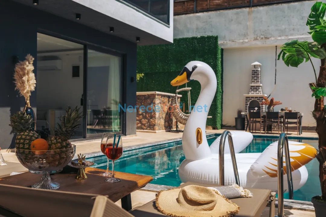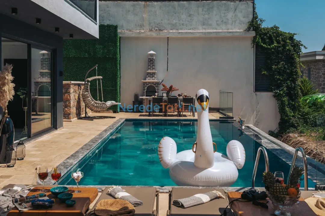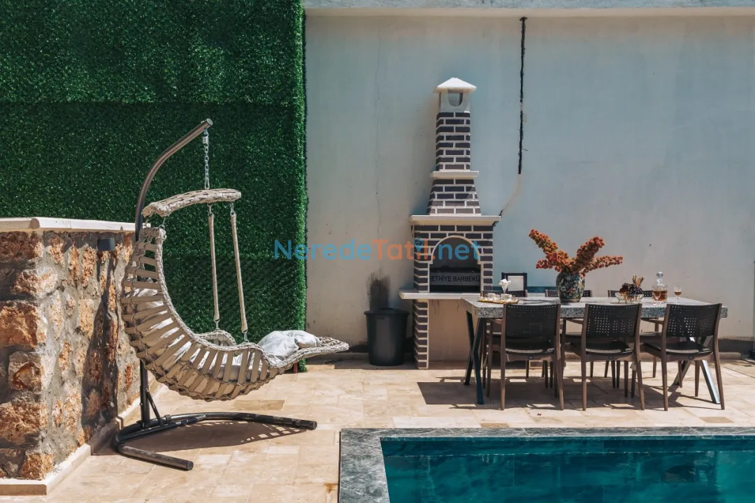 Villanın en dikkat çekici özelliklerinden biri, özel yüzme havuzudur. 3 metre eninde, 8 metre boyunda ve 1,5 metre derinliğinde olan havuz, serinletici bir kaçış noktası sunar. Ayrıca, jakuzisi ve saunası ile dinlenme imkanı sağlarken, BBQ - Mangal alanı ile keyifli anlar yaşayabilirsiniz.