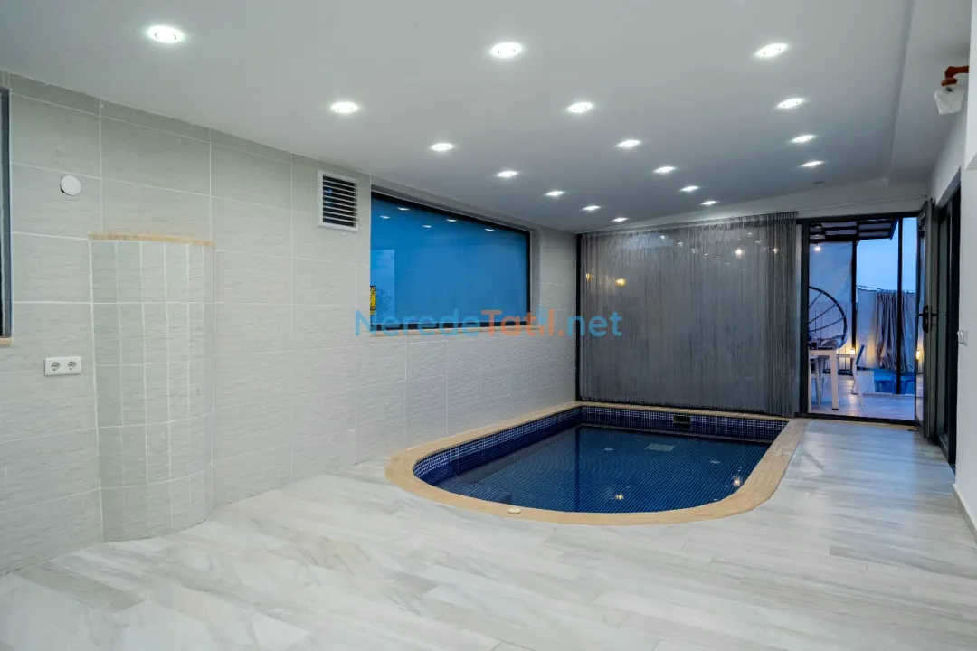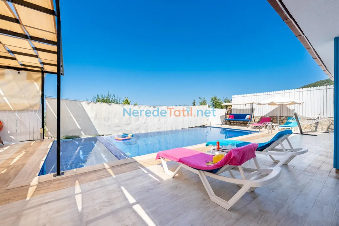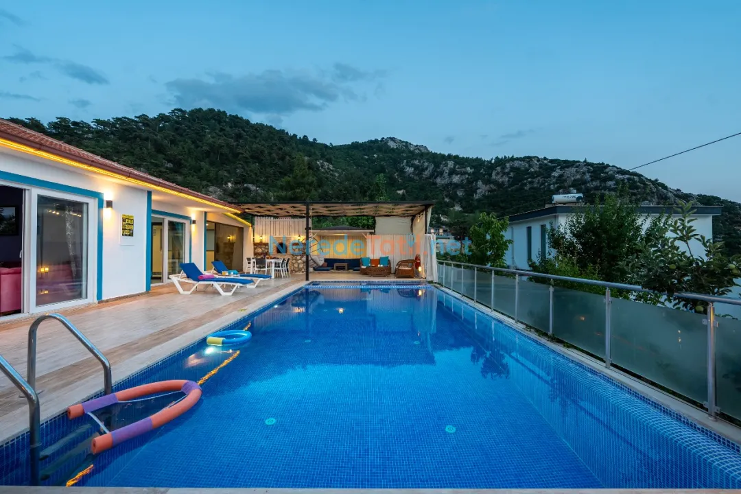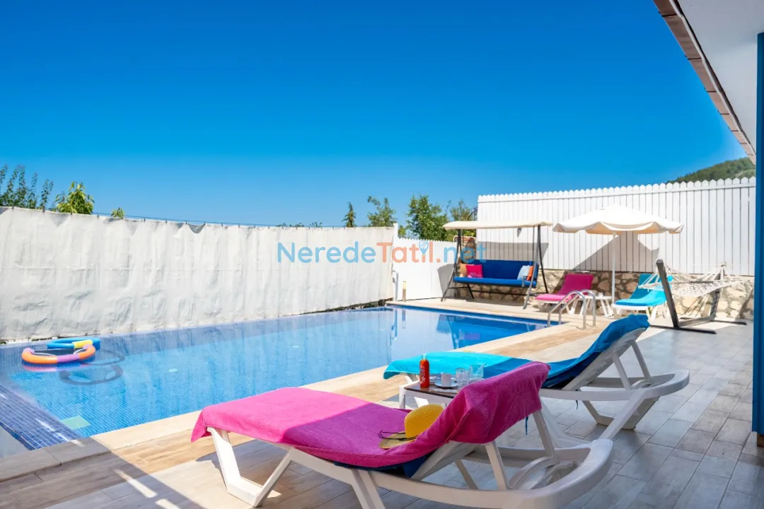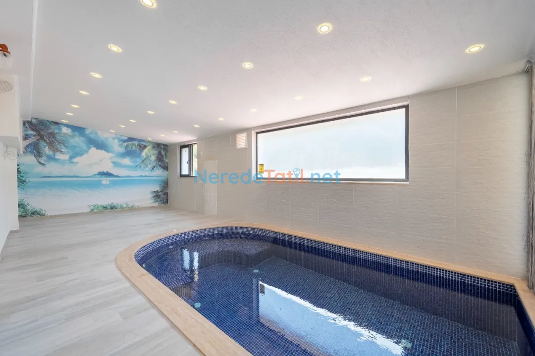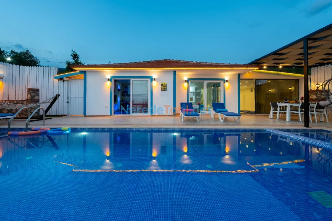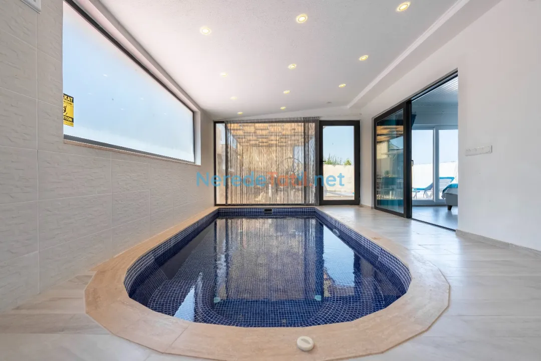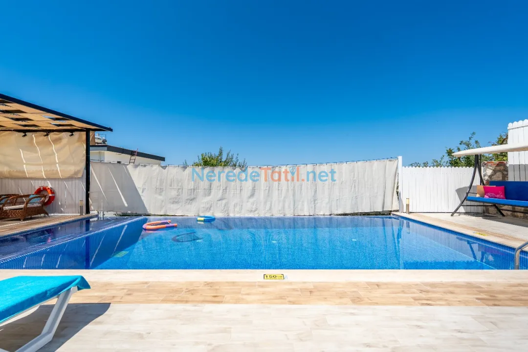 Bu lüks villanın en dikkat çekici özelliklerinden biri ısıtmalı kapalı havuzu ve büyük açık yüzme havuzudur. Açık havuzun ölçüleri 4 metre en, 8 metre boy ve 1,5 metre derinliktedir. Ayrıca çocuklar için güvenli ve eğlenceli bir tatil sunan çocuk havuzu 1 metre en, 4 metre boy ve 0,7 metre derinliğe sahiptir. Tüm havuzlar korunaklı yapısı ile muhafazakar aileler için idealdir.