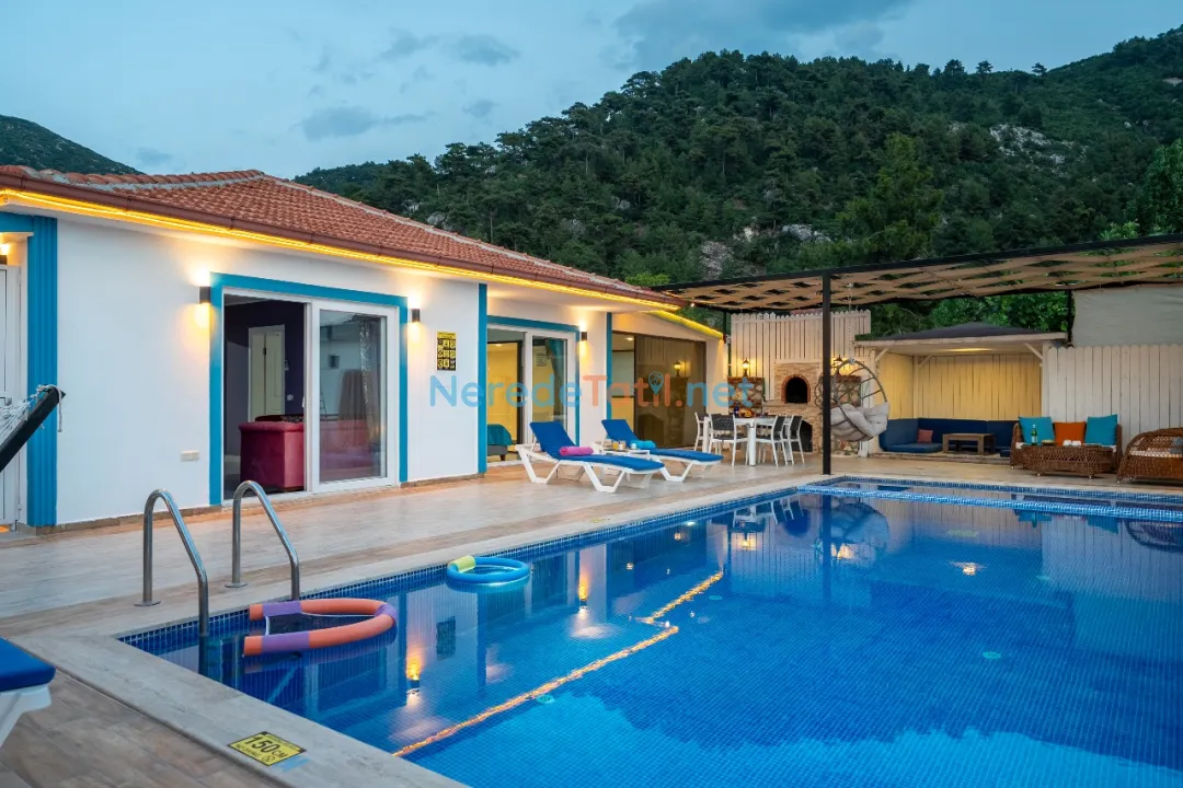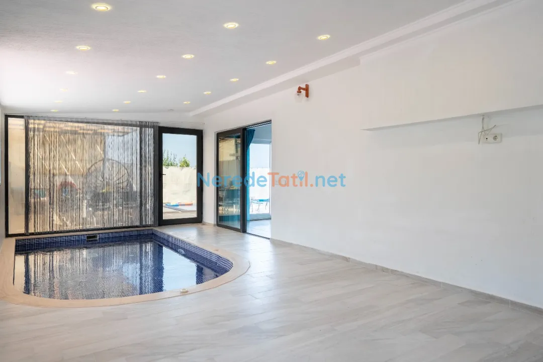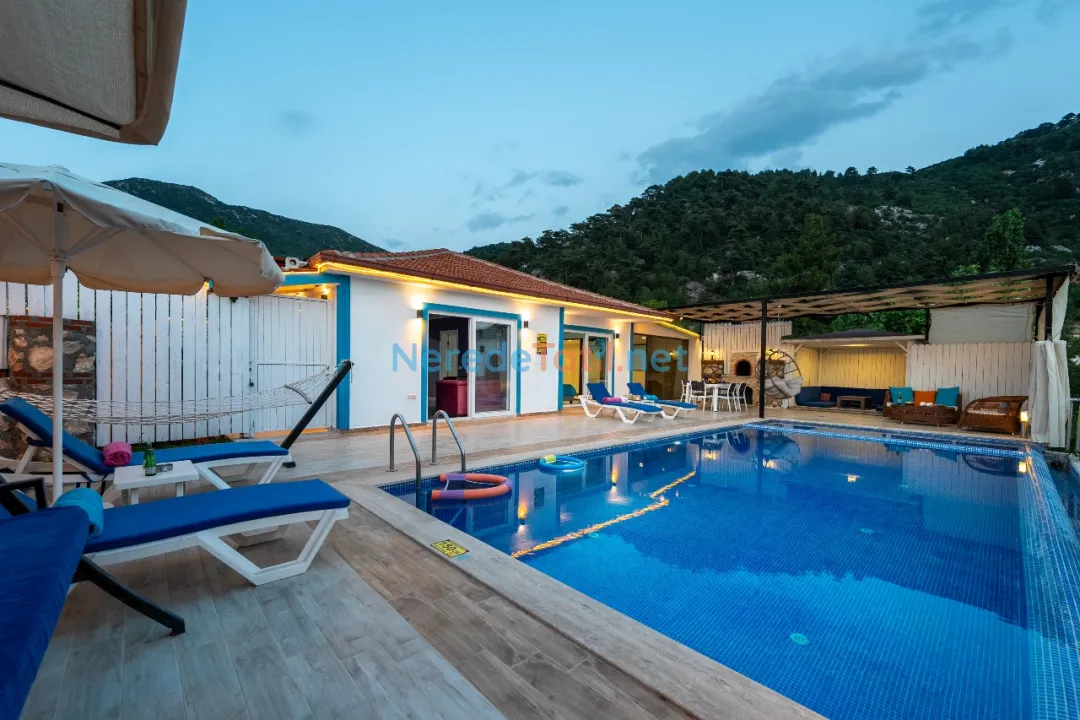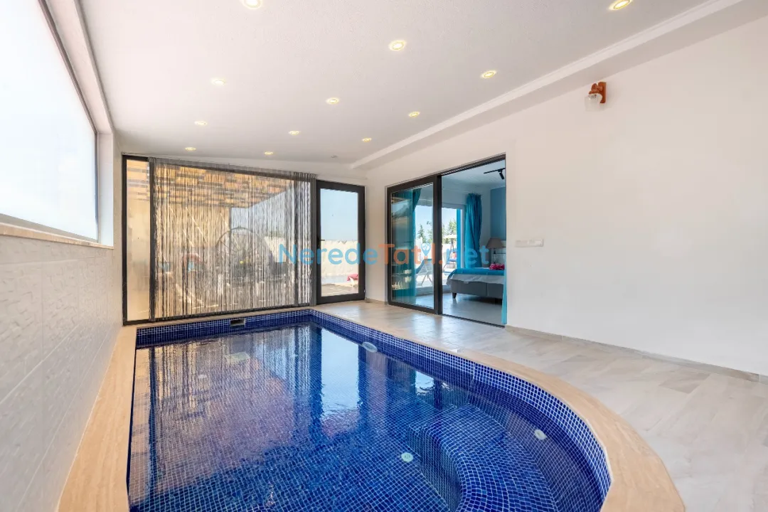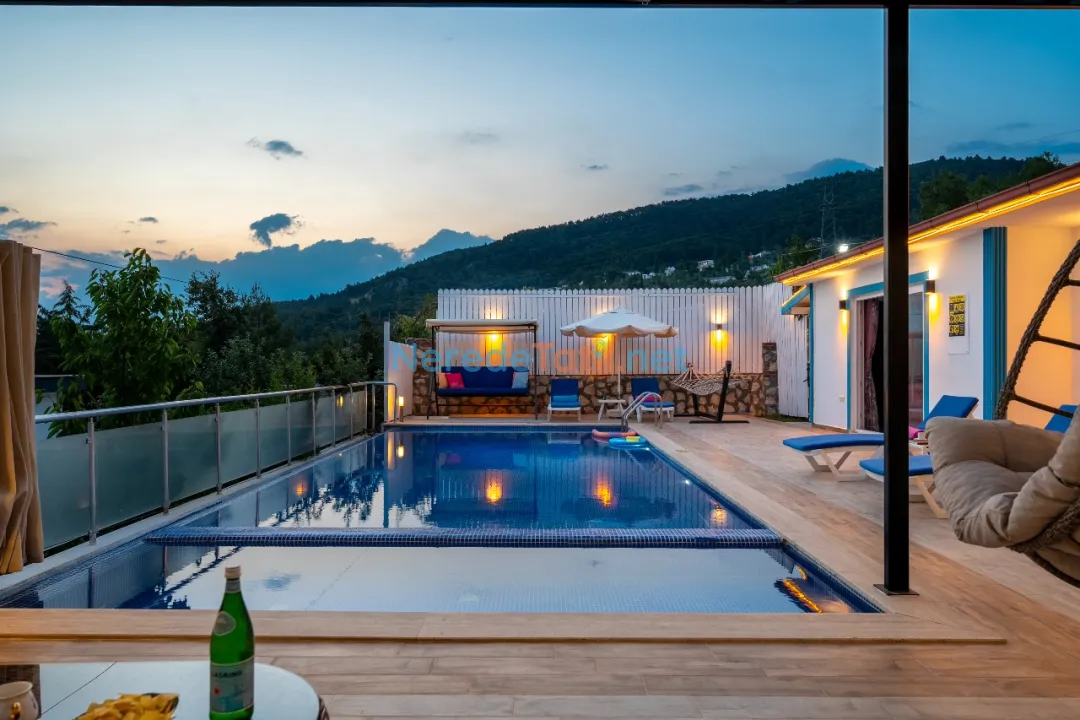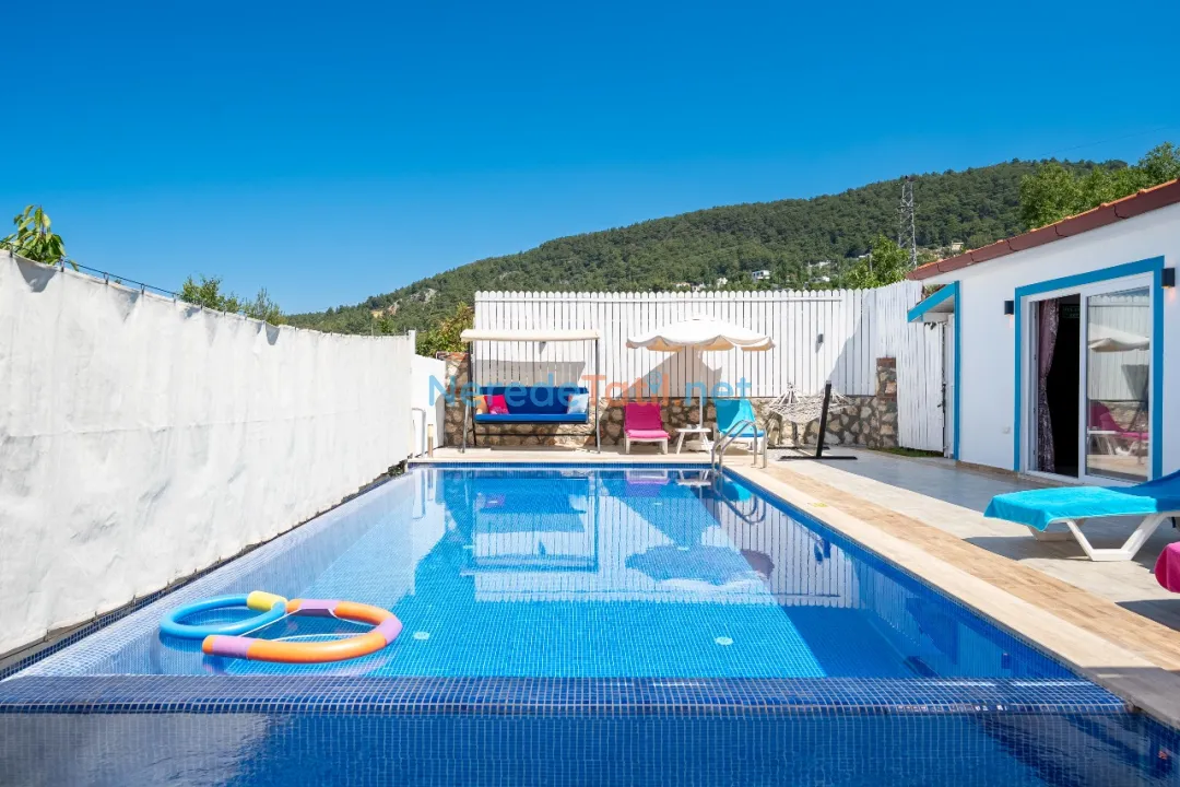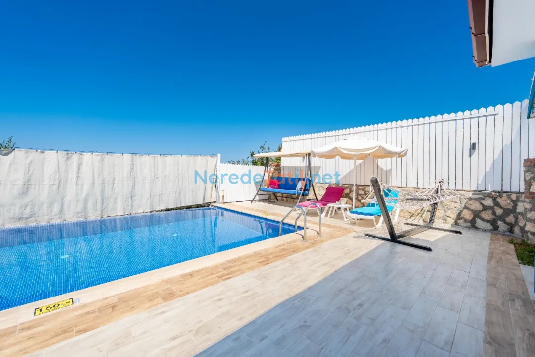 Bu lüks villanın en dikkat çekici özelliklerinden biri ısıtmalı kapalı havuzu ve büyük açık yüzme havuzudur. Açık havuzun ölçüleri 4 metre en, 8 metre boy ve 1,5 metre derinliktedir. Ayrıca çocuklar için güvenli ve eğlenceli bir tatil sunan çocuk havuzu 1 metre en, 4 metre boy ve 0,7 metre derinliğe sahiptir. Tüm havuzlar korunaklı yapısı ile muhafazakar aileler için idealdir.