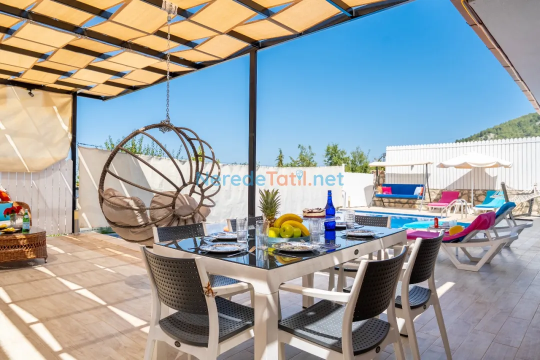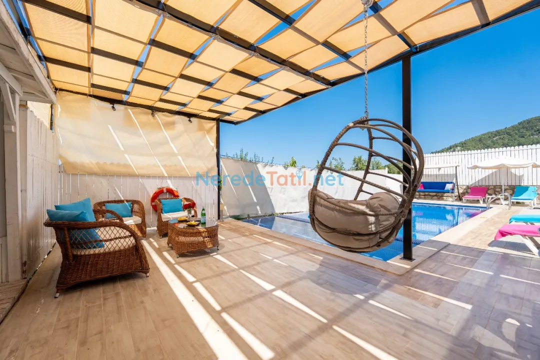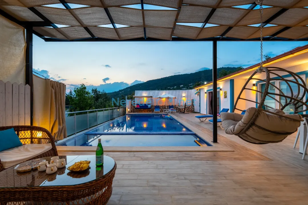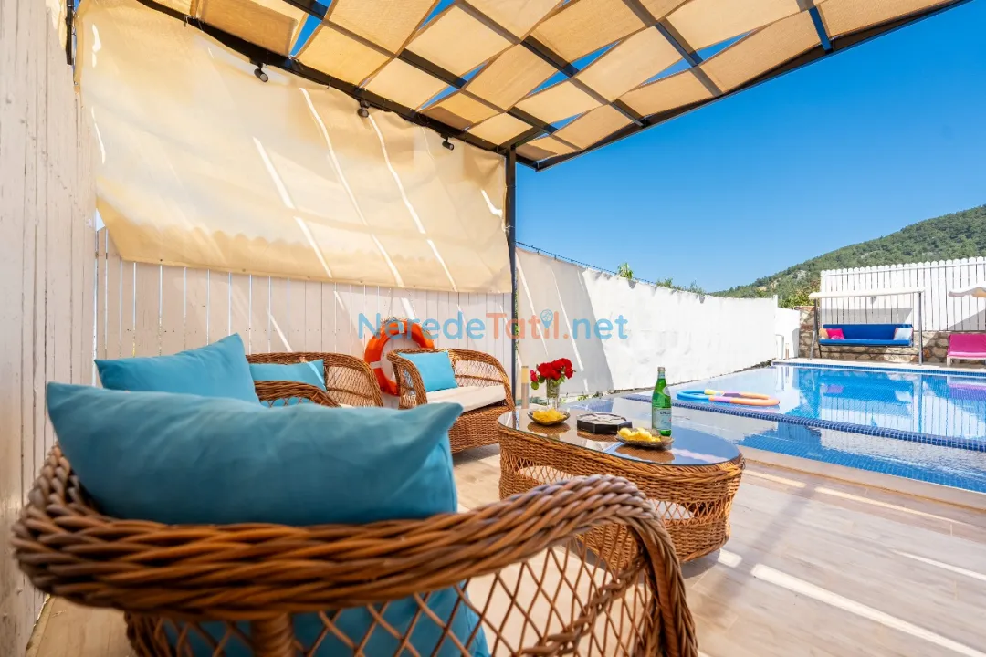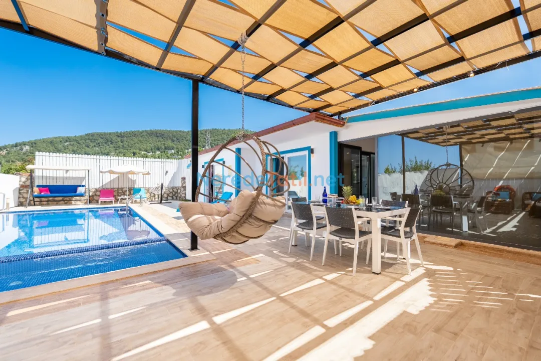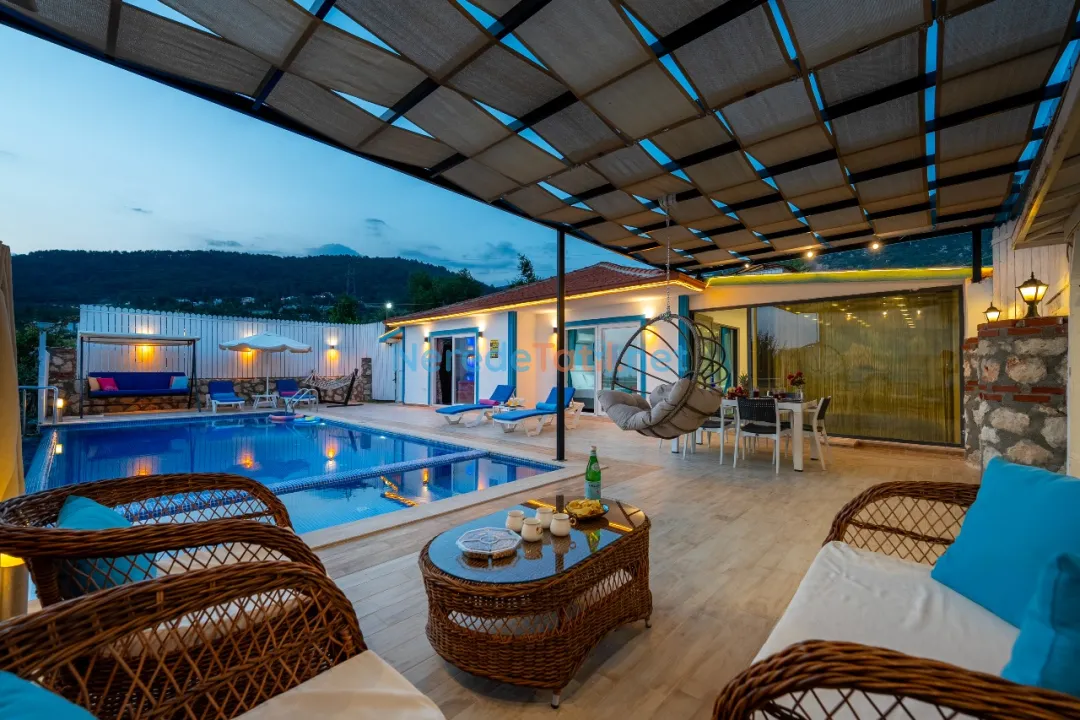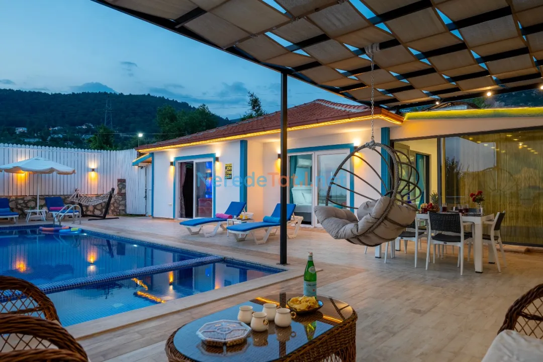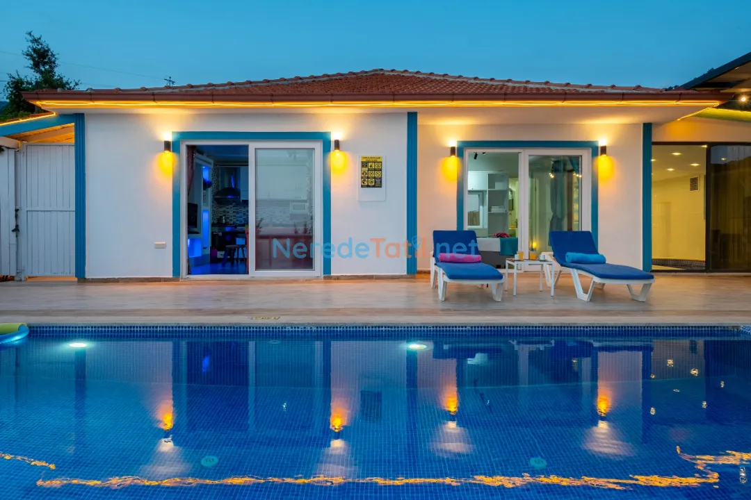 Bu lüks villanın en dikkat çekici özelliklerinden biri ısıtmalı kapalı havuzu ve büyük açık yüzme havuzudur. Açık havuzun ölçüleri 4 metre en, 8 metre boy ve 1,5 metre derinliktedir. Ayrıca çocuklar için güvenli ve eğlenceli bir tatil sunan çocuk havuzu 1 metre en, 4 metre boy ve 0,7 metre derinliğe sahiptir. Tüm havuzlar korunaklı yapısı ile muhafazakar aileler için idealdir.