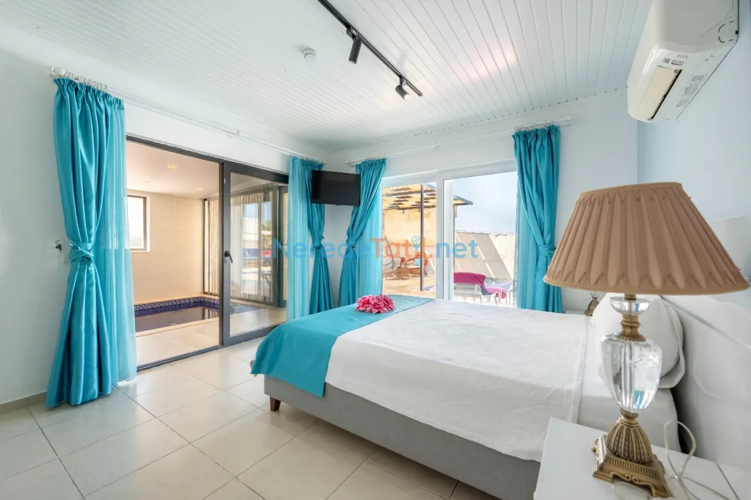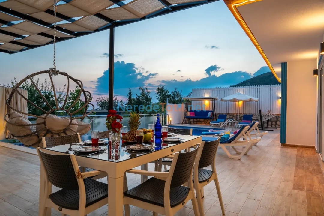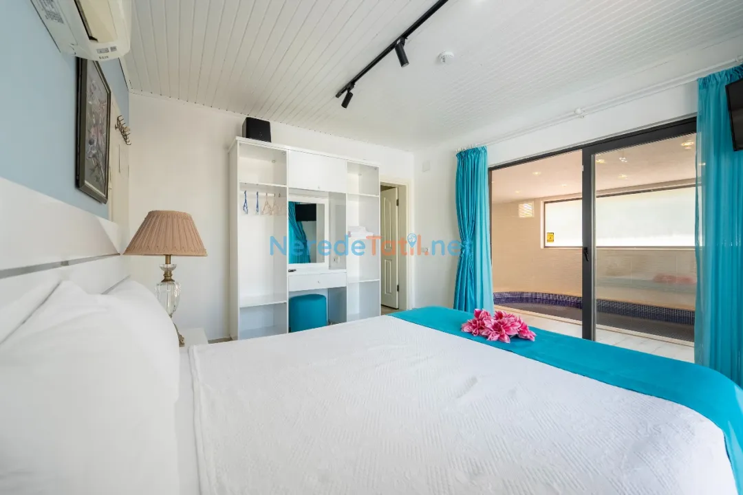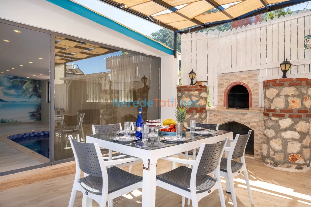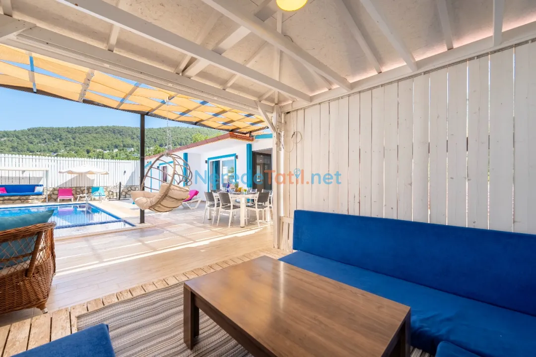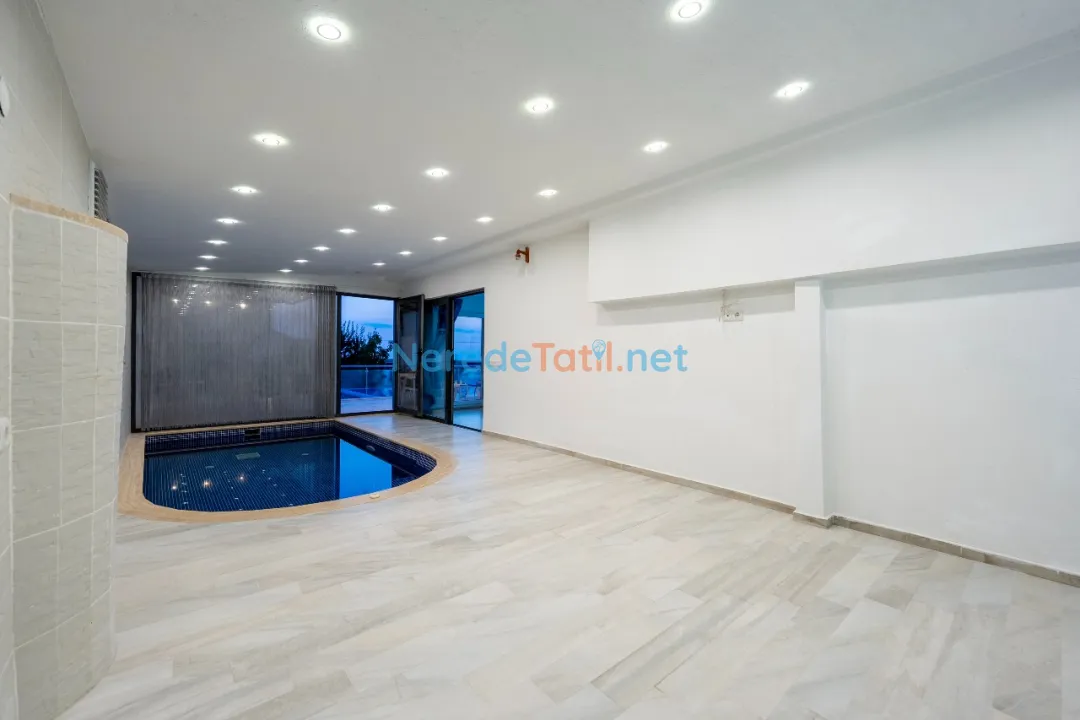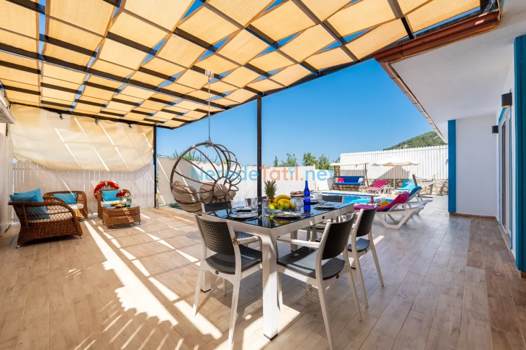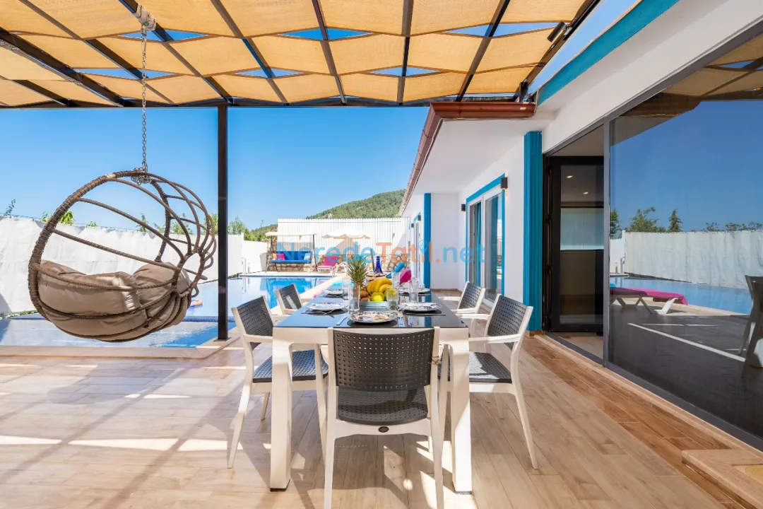Bu lüks villanın en dikkat çekici özelliklerinden biri ısıtmalı kapalı havuzu ve büyük açık yüzme havuzudur. Açık havuzun ölçüleri 4 metre en, 8 metre boy ve 1,5 metre derinliktedir. Ayrıca çocuklar için güvenli ve eğlenceli bir tatil sunan çocuk havuzu 1 metre en, 4 metre boy ve 0,7 metre derinliğe sahiptir. Tüm havuzlar korunaklı yapısı ile muhafazakar aileler için idealdir.
