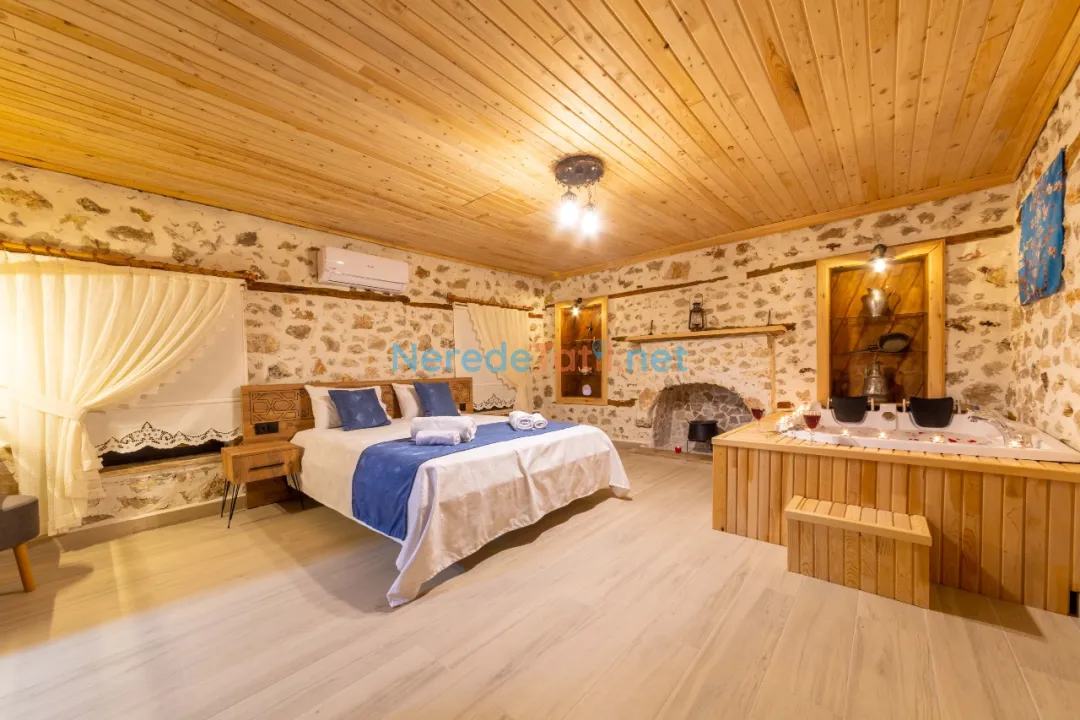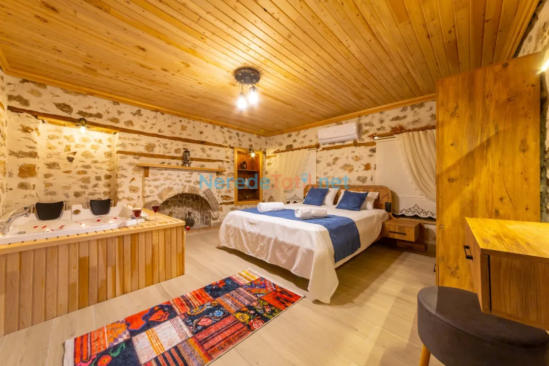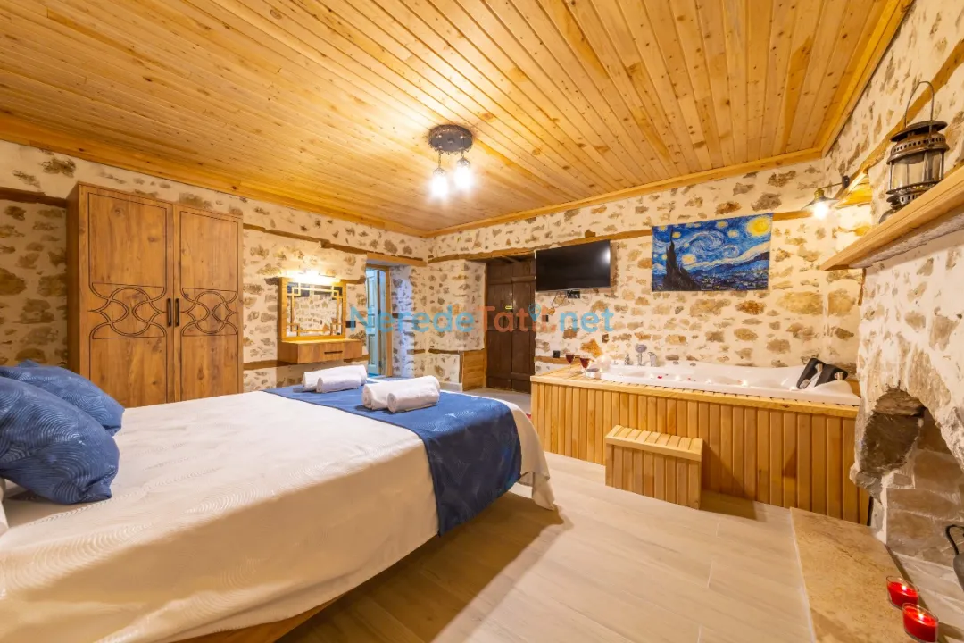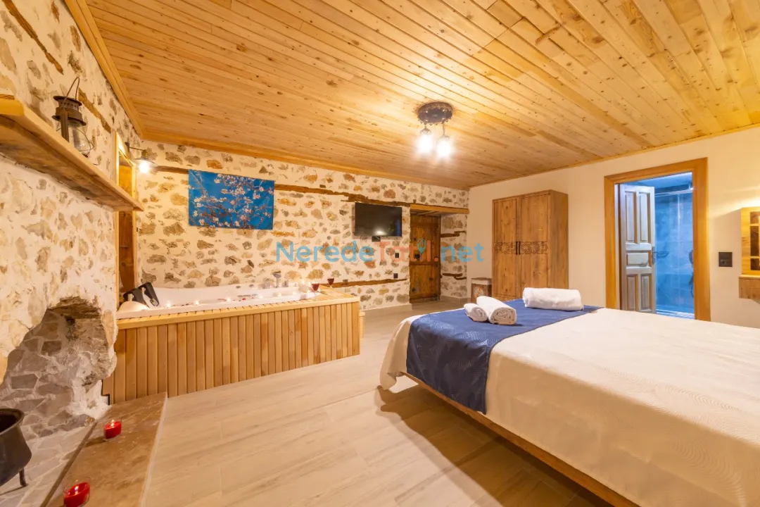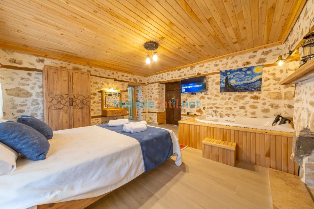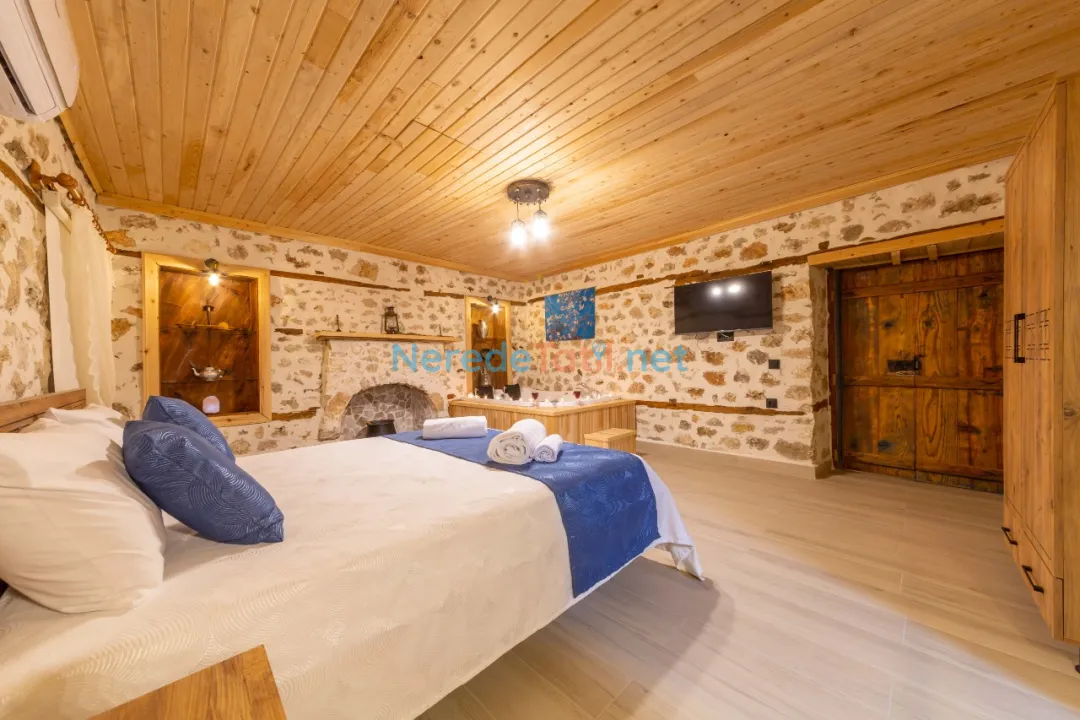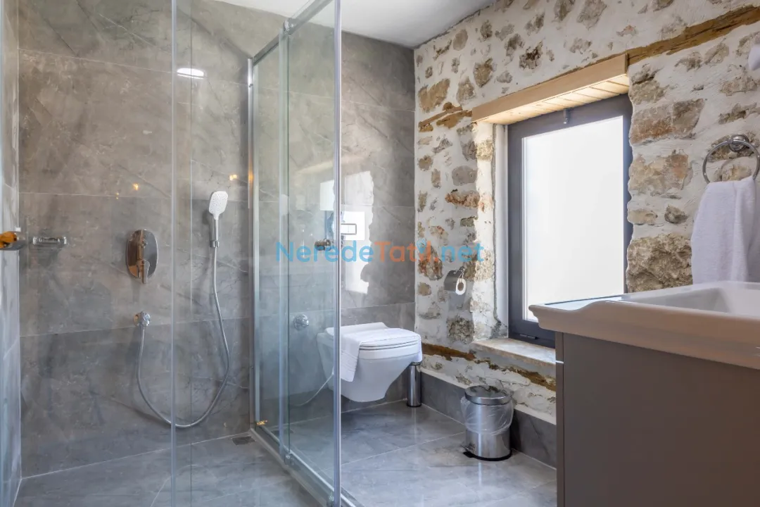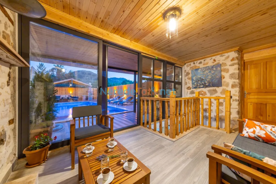 Bezirgan'da yer alan bu eşsiz villa, doğa manzarası ve özel havuzlu tasarımı ile büyüleyici bir tatil deneyimi sunuyor. Villa, 3 yatak odası ve her biri en-suite olan 3 banyo ile 7 kişiye kadar konaklama imkanı sunar. Çift kişilik iki yatak ve üç tek kişilik yatakla donatılan odalar, her misafirin konforunu ön planda tutuyor.