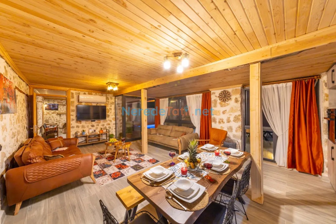 Doğa ile iç içe bir tatil sunan villamız, bahçeli yapısı ve BBQ - Mangal imkanları ile açık havada keyifli zamanlar geçirmenizi sağlar. Ayrıca spor aletleri ile fit kalabilir, hamam keyfi ile günün stresini atabilirsiniz. Villanın otopark imkanı da bulunmaktadır.