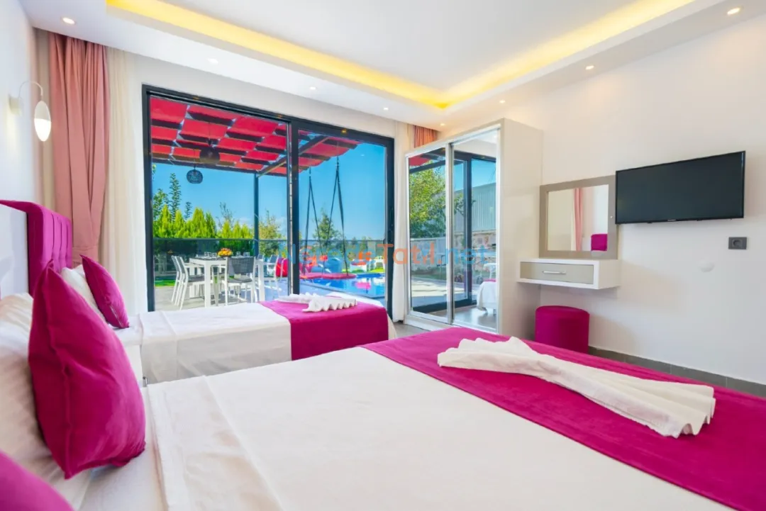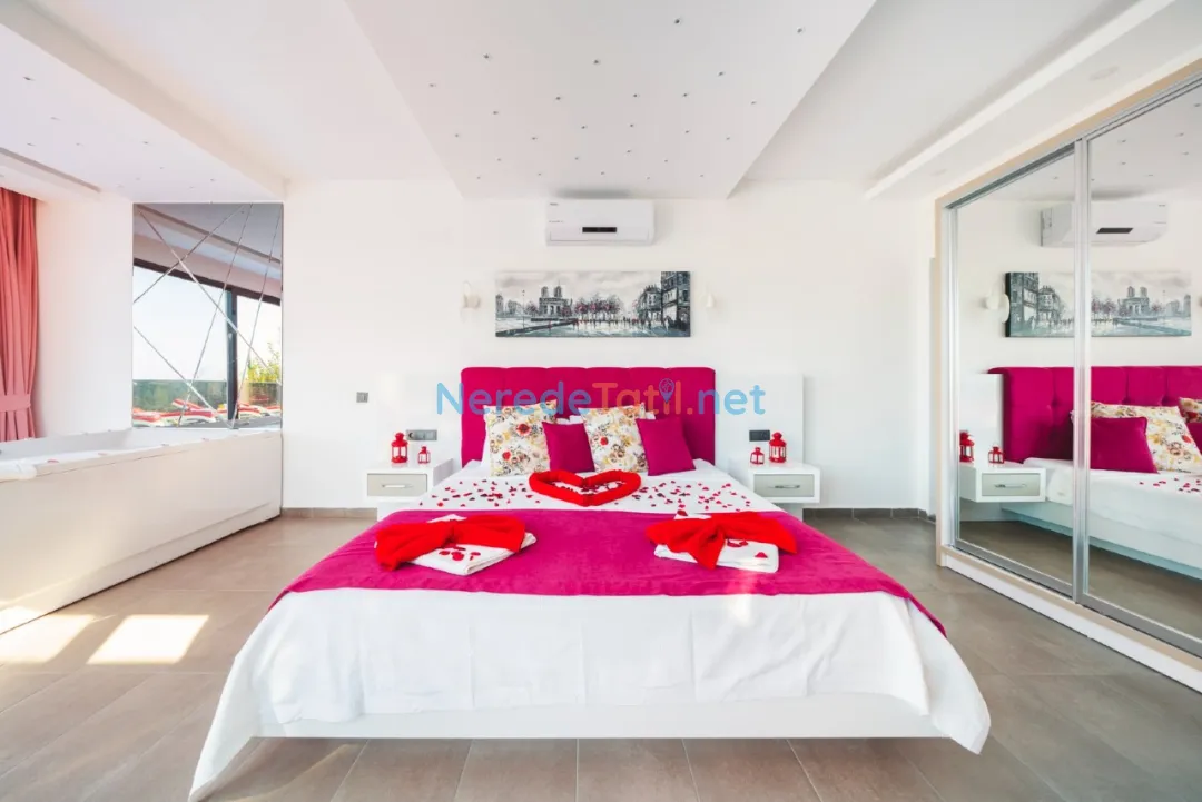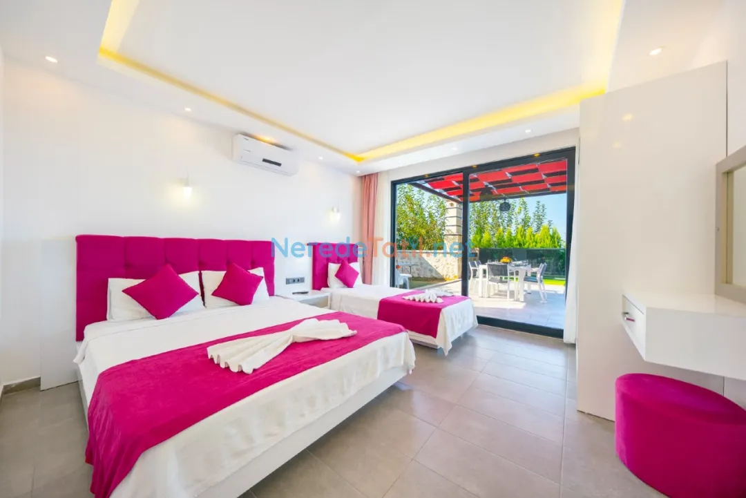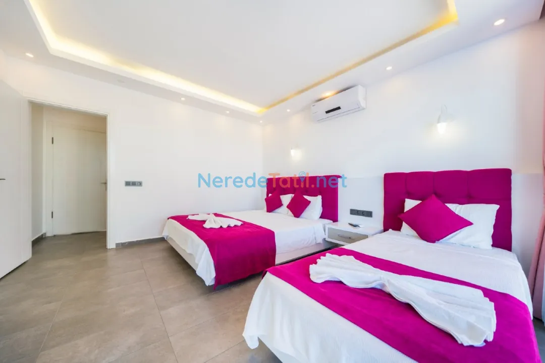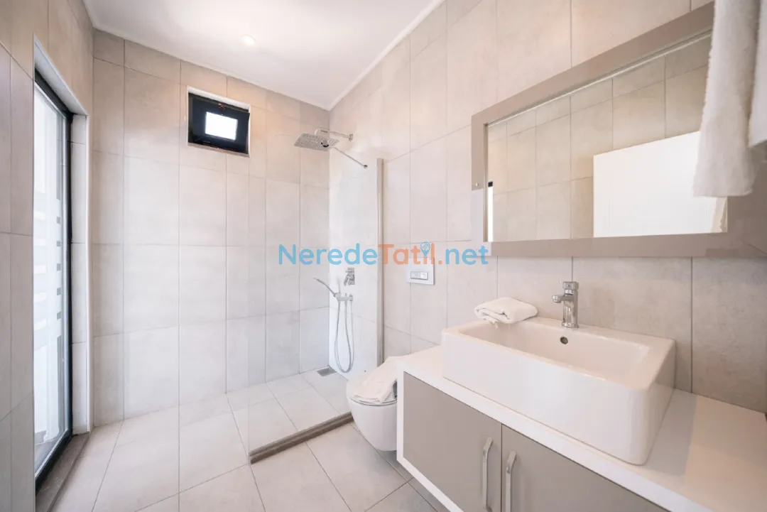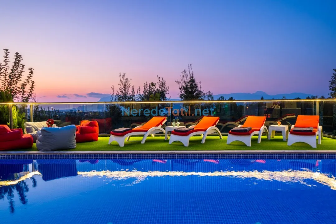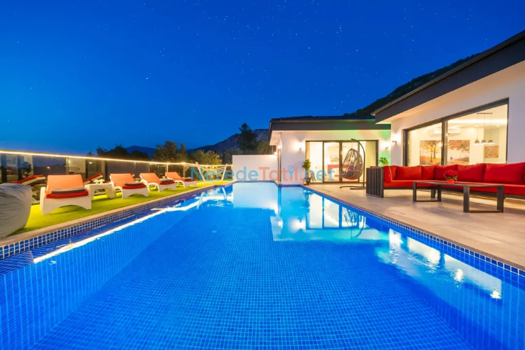 Üzümlü'nün sakin doğasında, sevdiklerinizle unutulmaz bir tatil deneyimi sunan bu şık villa, özel yüzme havuzu ile dikkat çekiyor. 4.5 metre eninde ve 14 metre boyunda olan havuz, tatilinizi serinletici bir keyfe dönüştürüyor. Villa, 5 kişi kapasitesine uygun olarak tasarlanmış olup, iki çift kişilik yatak ve bir tek kişilik yatak ile toplamda iki yatak odası sunuyor. Villada ayrıca iki banyo bulunmaktadır.
