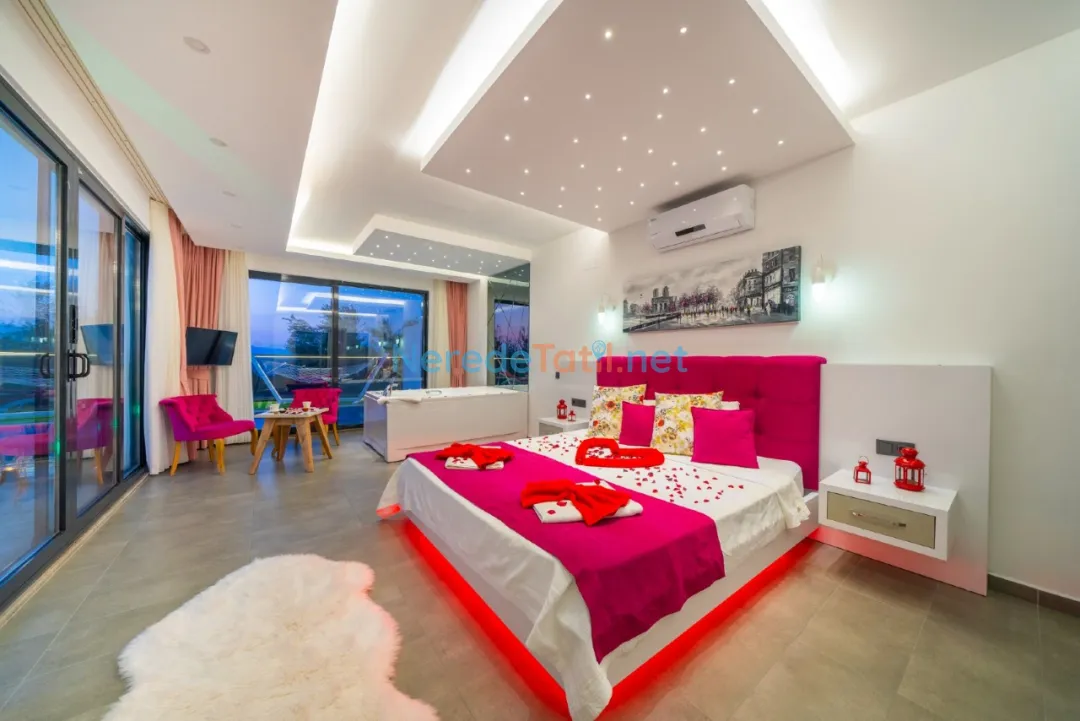 Üzümlü'de konumlanan bu villa, merkeze ve plaja kısa bir sürüş mesafesinde olup, market ve restoranlara yakınlığı ile misafirlerine konforlu bir deneyim sunar. Havalimanına olan 135 km mesafe, şehre kolay erişim sağlar. Tam donanımlı ve modern dekorasyonu ile dikkat çeken villada, huzurlu ve keyifli bir tatil sizleri bekliyor.