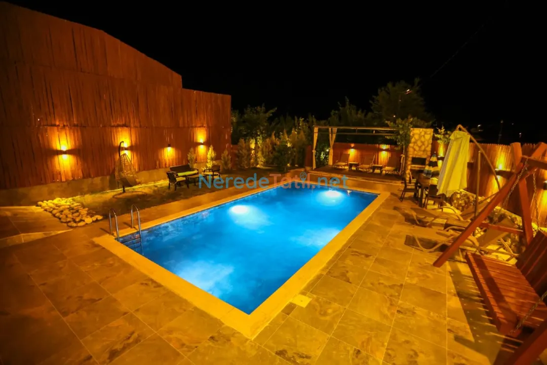 Misafirler, geniş özel yüzme havuzunun (3 metre genişlik, 8.2 metre boy, 1.45 metre derinlik) tadını çıkarabilirler. Ayrıca, çocuk havuzu (1.5 metre genişlik, 1.5 metre boy, 0.4 metre derinlik) miniklerin güvenli bir şekilde eğlenmesine olanak tanır. Havuz alanı korunaklı olup, gizlilik arayan misafirler için uygun bir ortam sunar.