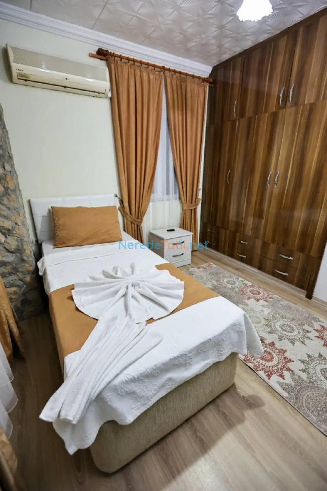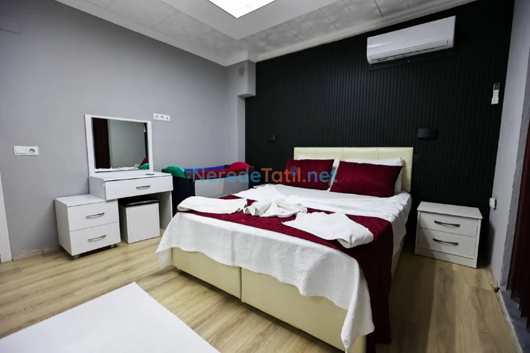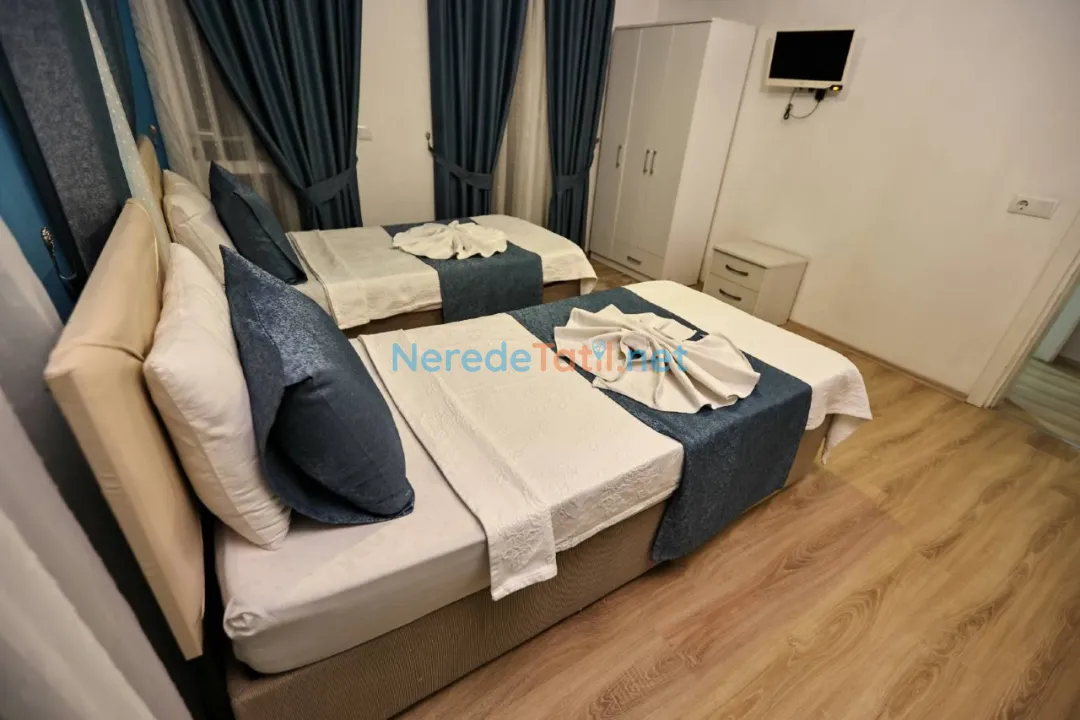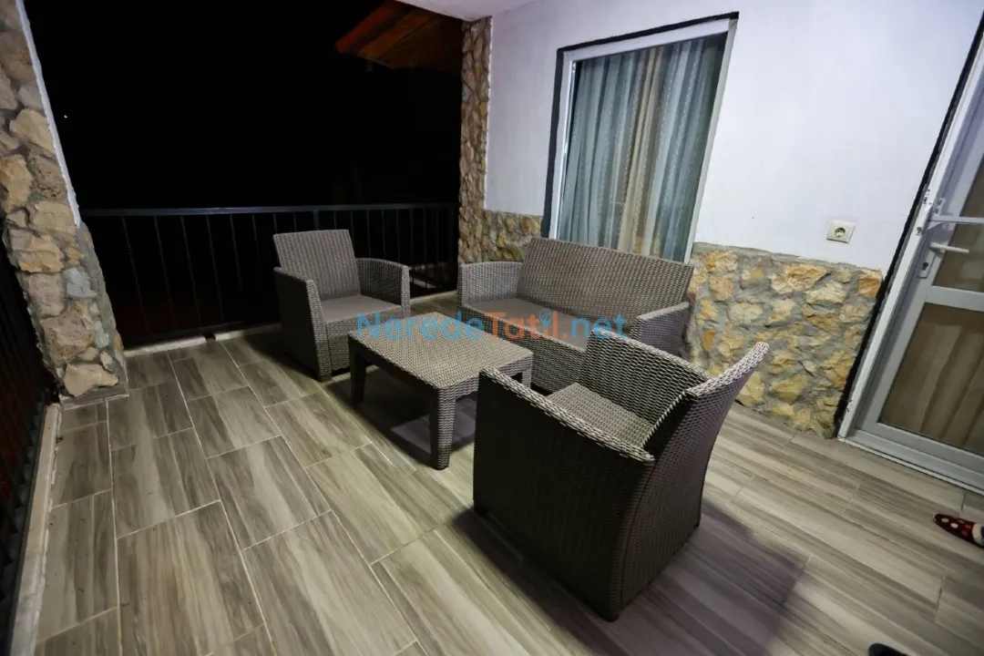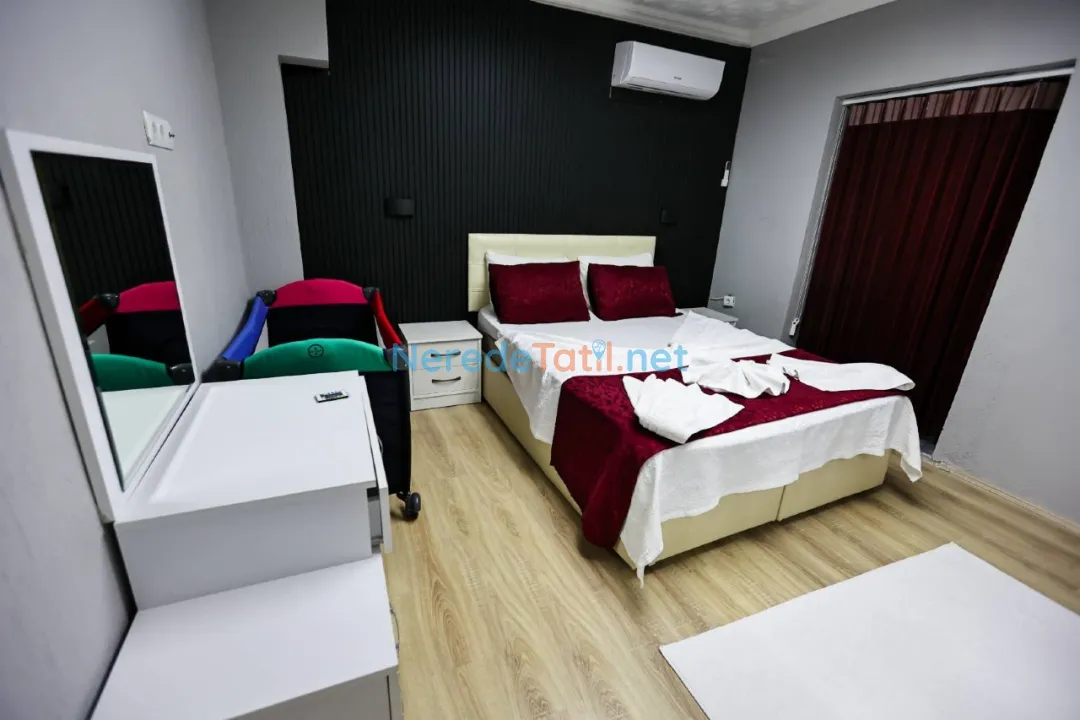Konforlu bir tatil için mama sandalyesi, saç kurutma makinesi, su sebili ve ütü gibi olanaklar da mevcuttur. Araçla gelen misafirler için otopark da bulunmaktadır. Sarıbelen'e yakın konumuyla, plaja 14 km, merkeze 13 km ve restoranlara 10 km mesafede yer alır. Markete sadece 5 km mesafede olmasıyla alışveriş ihtiyaçlarınıza kolay erişim sağlar.