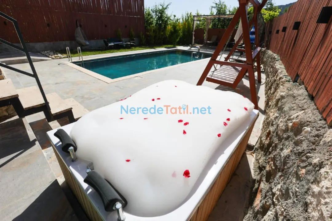 Villamız, jakuzi ile rahatlama imkanı sağlarken, bahçesi ve BBQ - mangal alanı açık hava keyfi seven misafirler için idealdir. Doğa manzaralı bu villa, çocuk dostu ve muhafazakar özellikleriyle dikkat çekmektedir.