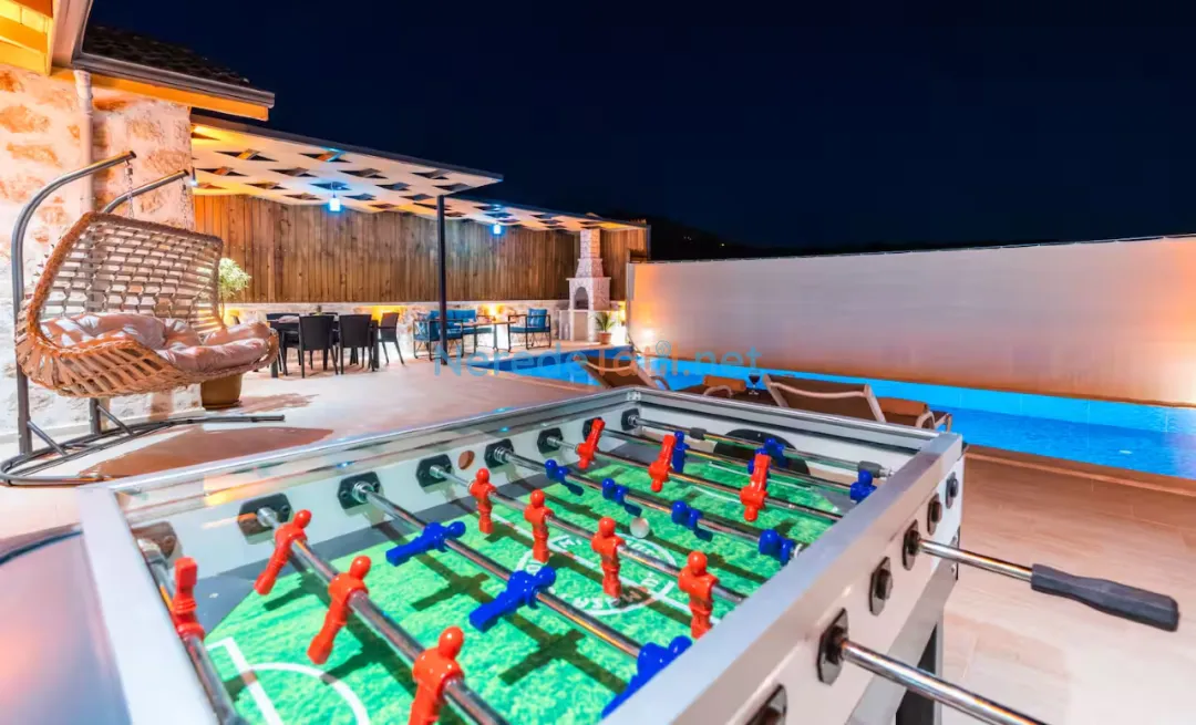 Villanın iç donanımı, lüks detaylarla tamamlanmıştır. Langırt gibi eğlence olanakları da mevcuttur. Saç kurutma makinesi, ütü gibi temel ihtiyaçlarınızı karşılayacak eşyalarla donatılmıştır. Araçla gelen misafirler için ise otopark alanı bulunmaktadır.