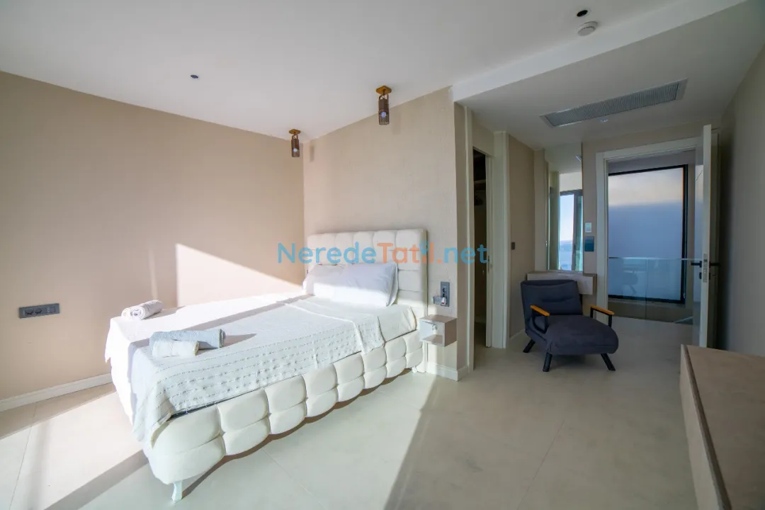 Boğaziçi'nde konumlanmış bu deniz manzaralı ultra lüks villa, muhteşem bir tatil deneyimi sunuyor. 8 kişilik kapasitesi ile geniş gruplar ve aileler için ideal olan villada dört yatak odası ve dört banyo bulunmaktadır. Her odada konforu sağlayacak şekilde yerleştirilmiş çift kişilik yataklar mevcuttur.