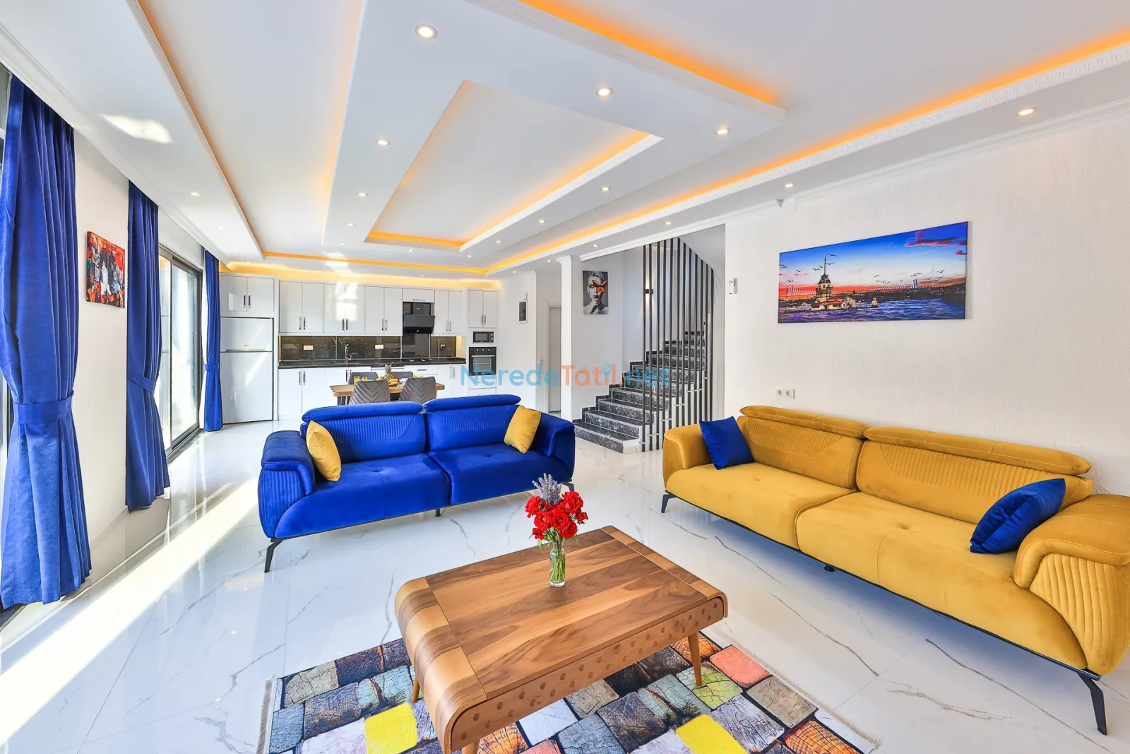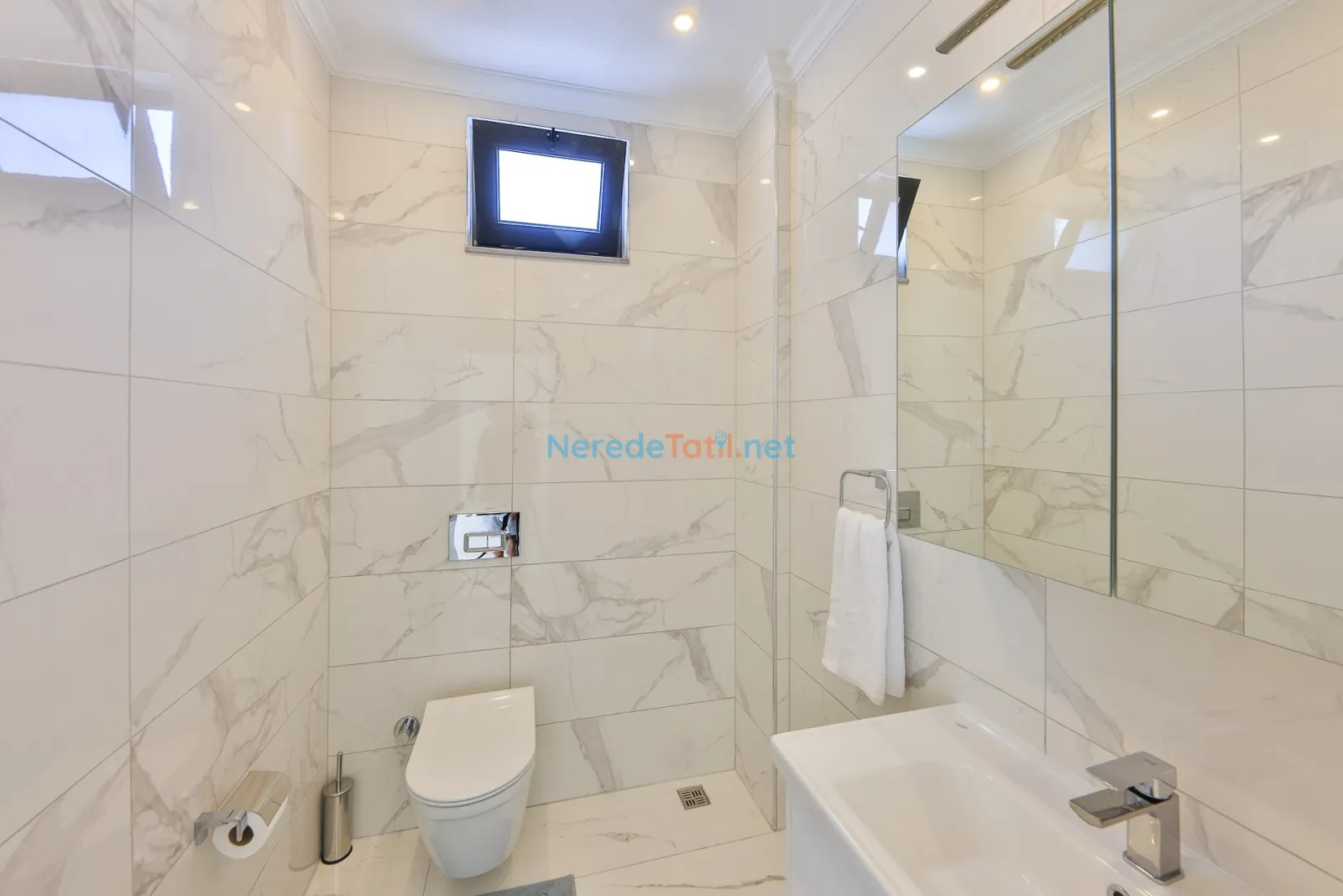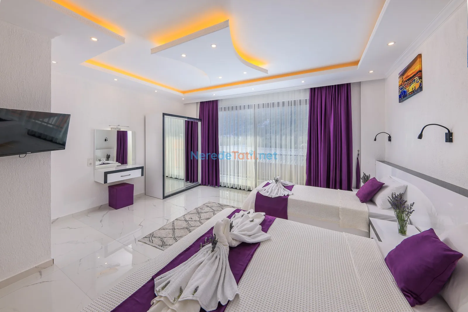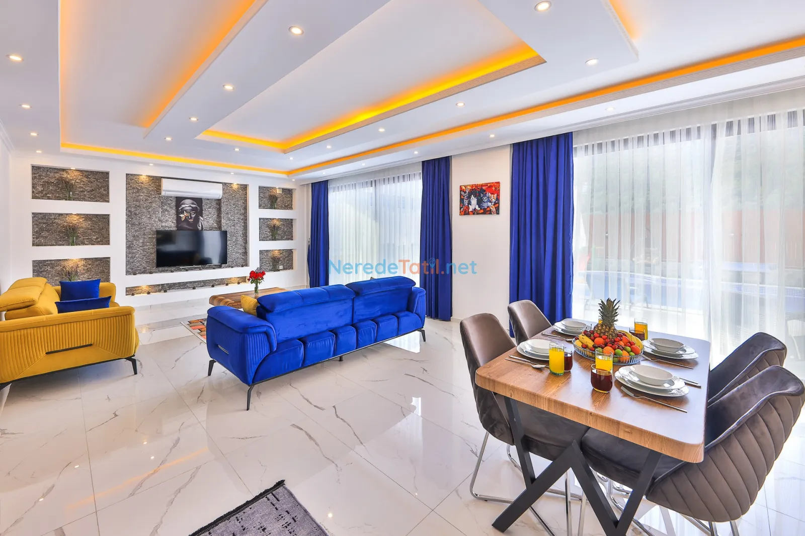 Villamız beş kişilik kapasiteye sahip olup, iki yatak odası ve iki banyosu ile rahat bir konaklama imkanı sunmaktadır. Odalarda iki çift kişilik ve bir tek kişilik yatak bulunmaktadır. Geniş ve modern iç mekan tasarımıyla evinizin konforunu aratmayacak bir yaşam alanı sunulmaktadır.