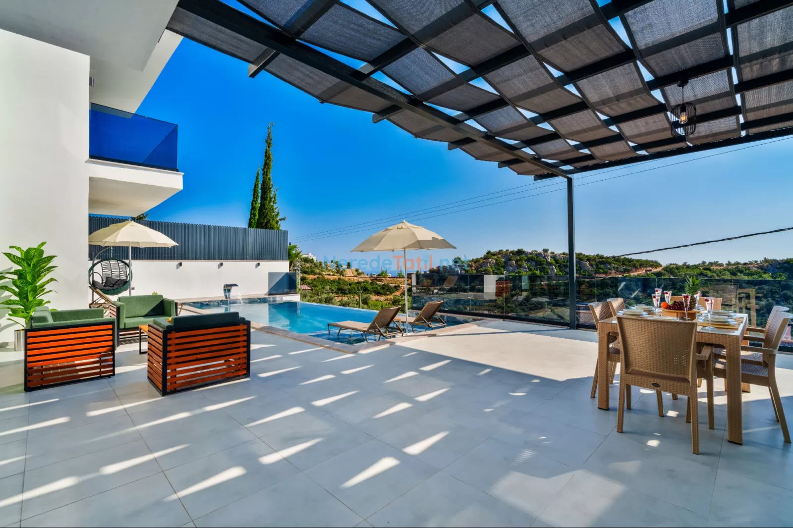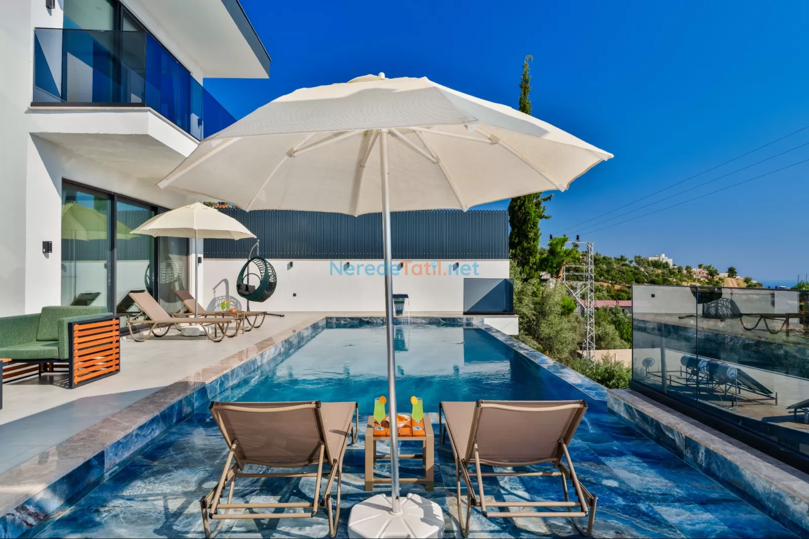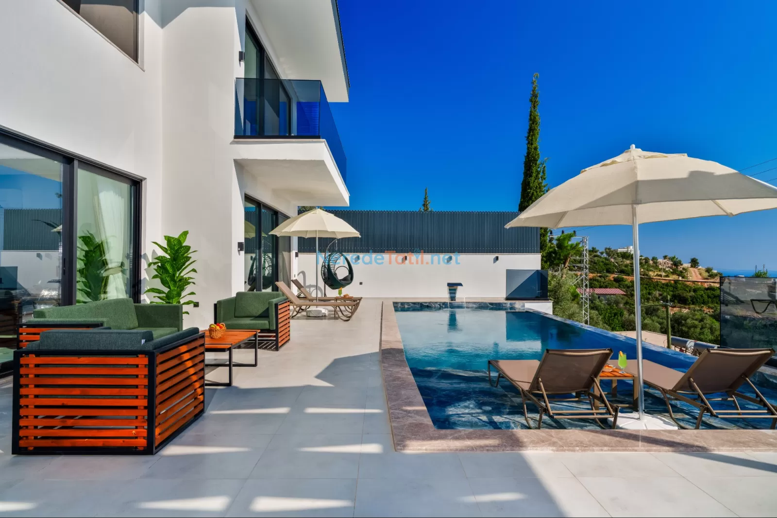 Özel yüzme havuzumuz, 4 metre genişlik, 9 metre uzunluk ve 1,5 metre derinliğe sahiptir. Geniş havuz alanı, güneşin tadını çıkarabileceğiniz ideal bir alan sunmaktadır. Çocuk havuzunun bulunmaması nedeniyle, çocuklu misafirlerin bu durumu göz önünde bulundurması önerilir.