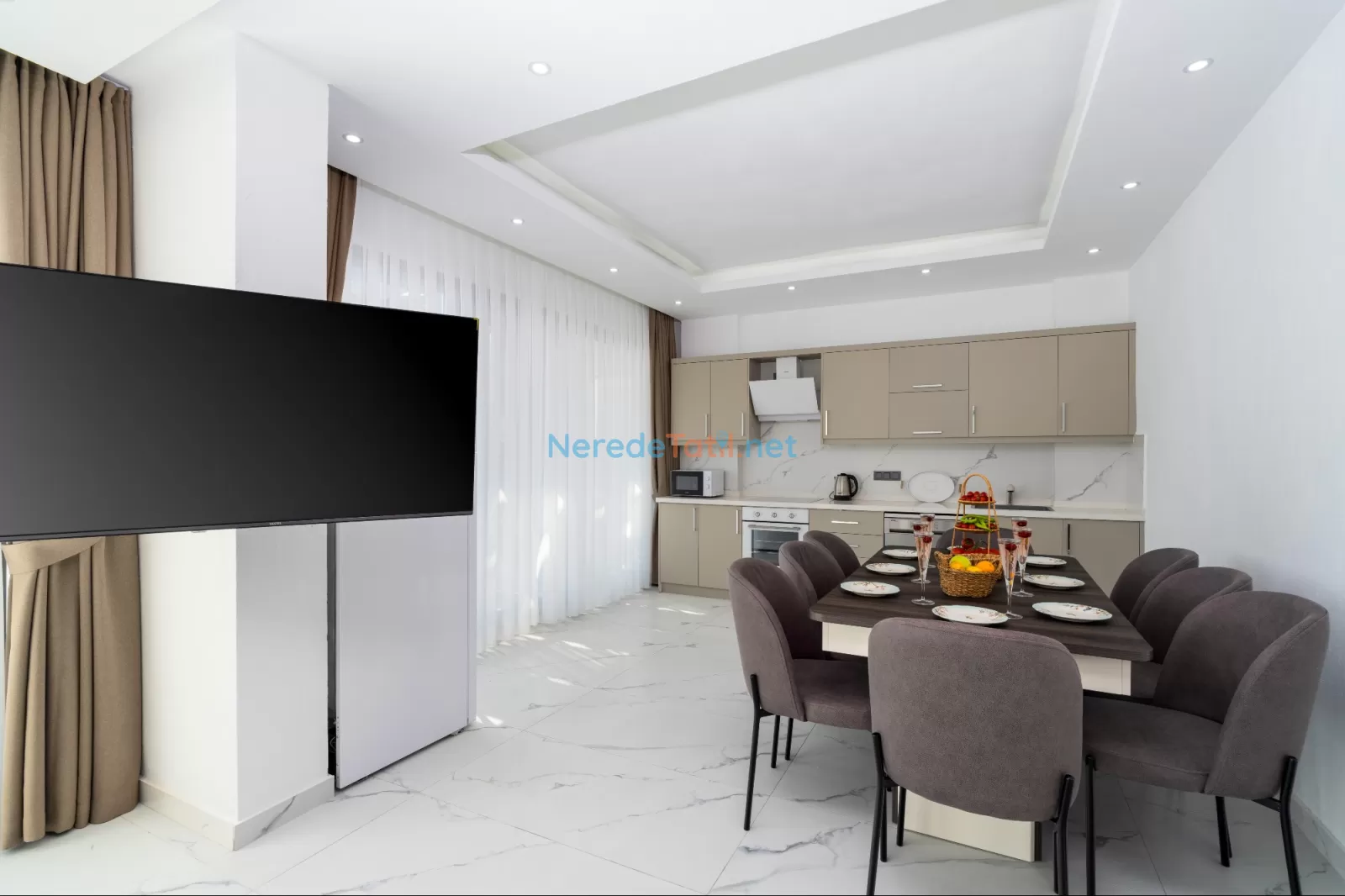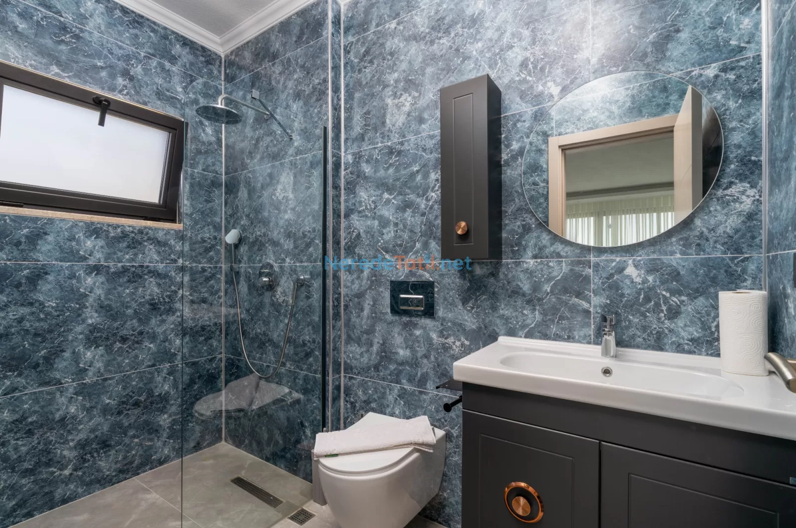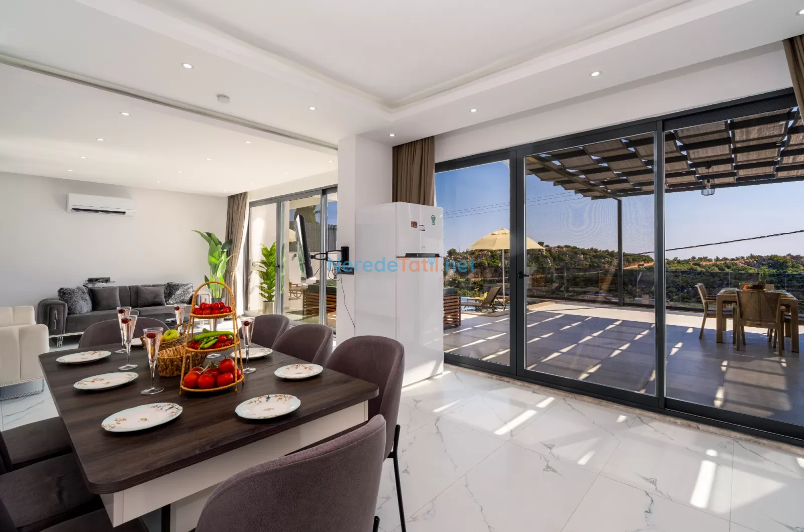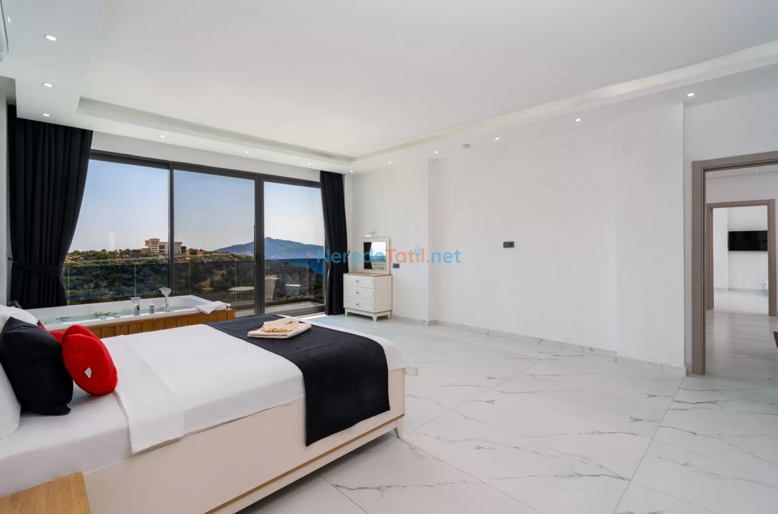 Villa, çevresindeki olanaklara da kolay erişim sağlamaktadır. Market ve restoranlar sadece 1 km mesafede olup, plaj ve hastane 6 km uzaklıktadır. Huzur dolu bir tatil arayanlar için Kördere'de bu özel villa, doğayla iç içe unutulmaz bir kaçış noktası sunuyor.
