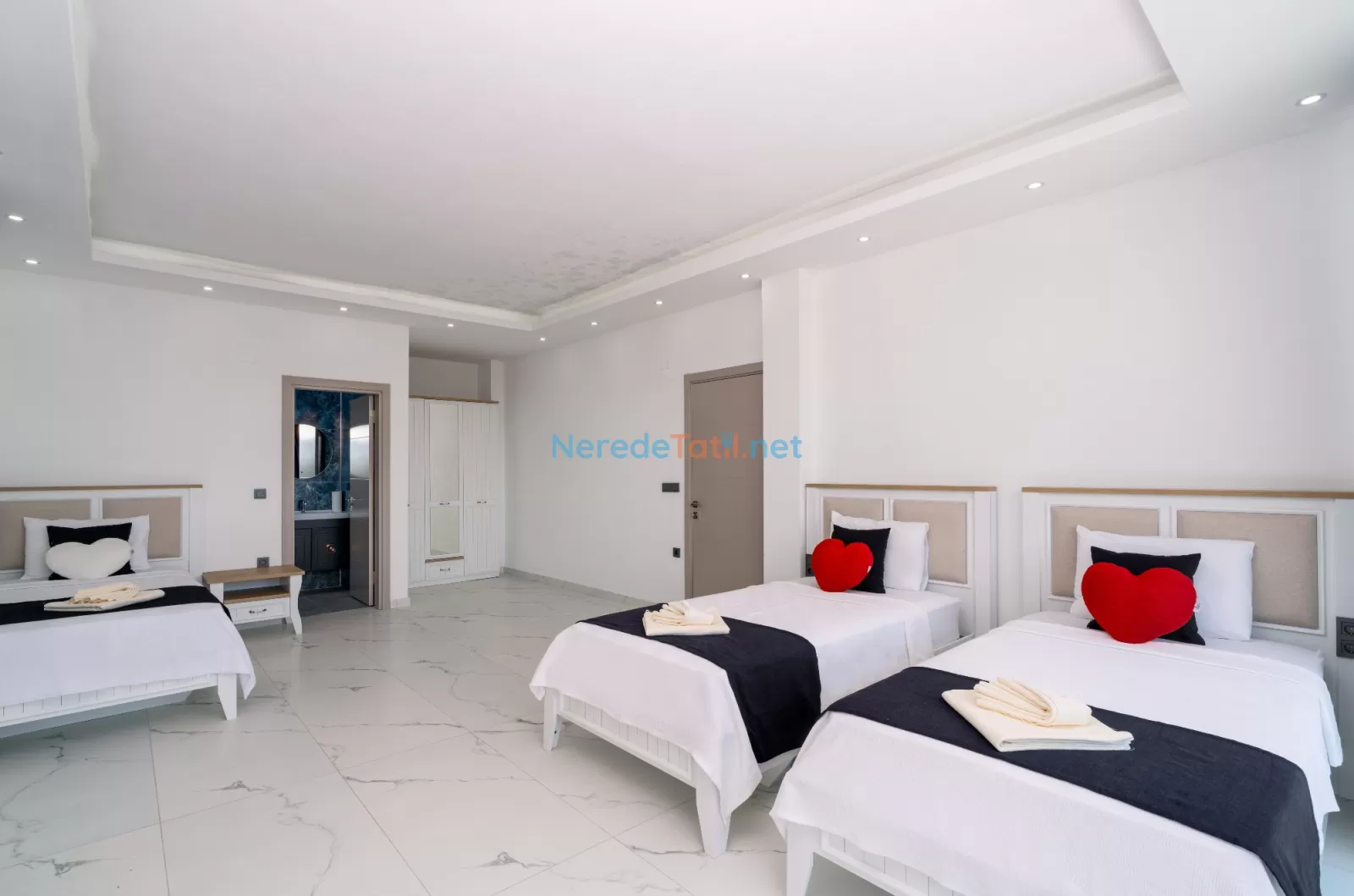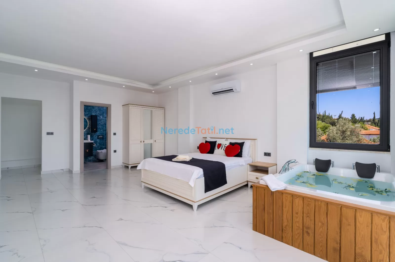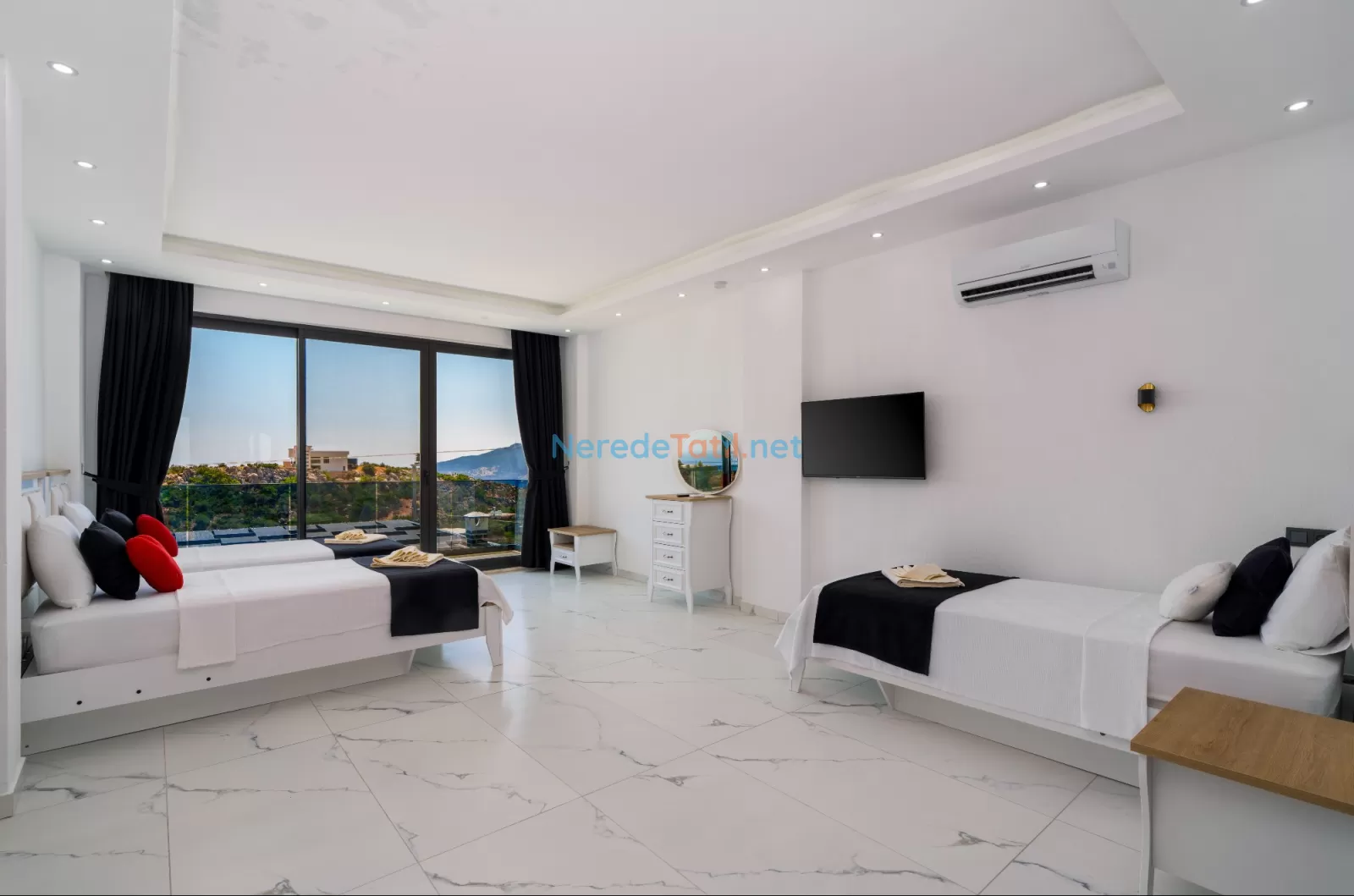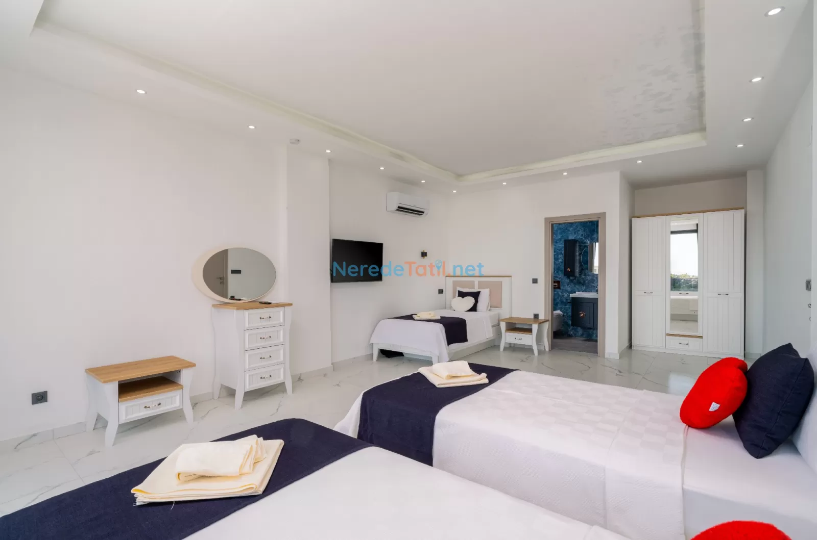 Kördere'nin eşsiz doğasında konumlanan, muhteşem bir tatil fırsatı sunan bu villa, 9 kişilik konaklama kapasitesi ile aileler ve arkadaş grupları için mükemmel bir seçimdir. Villamızda dört yatak odası ve dört banyo bulunmaktadır. Konforlu bir tatil geçirmeniz için üç çift kişilik yatak ve üç tek kişilik yatak ile donatılmıştır.