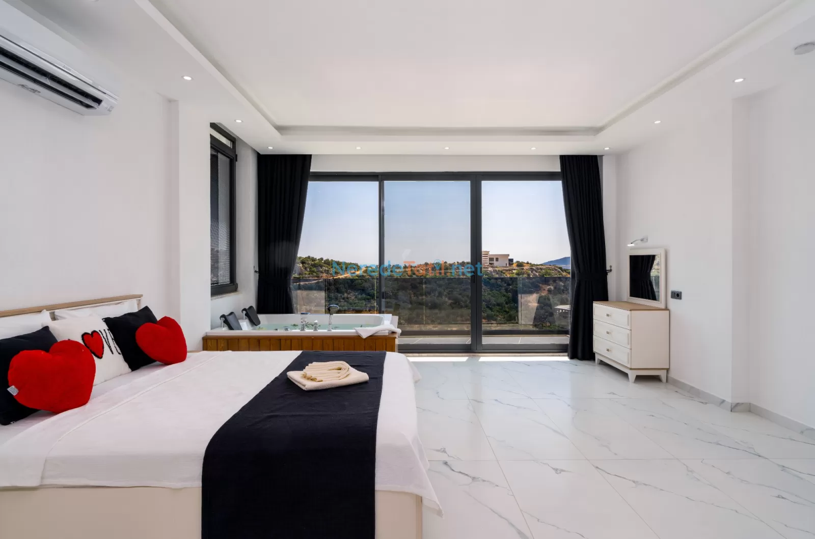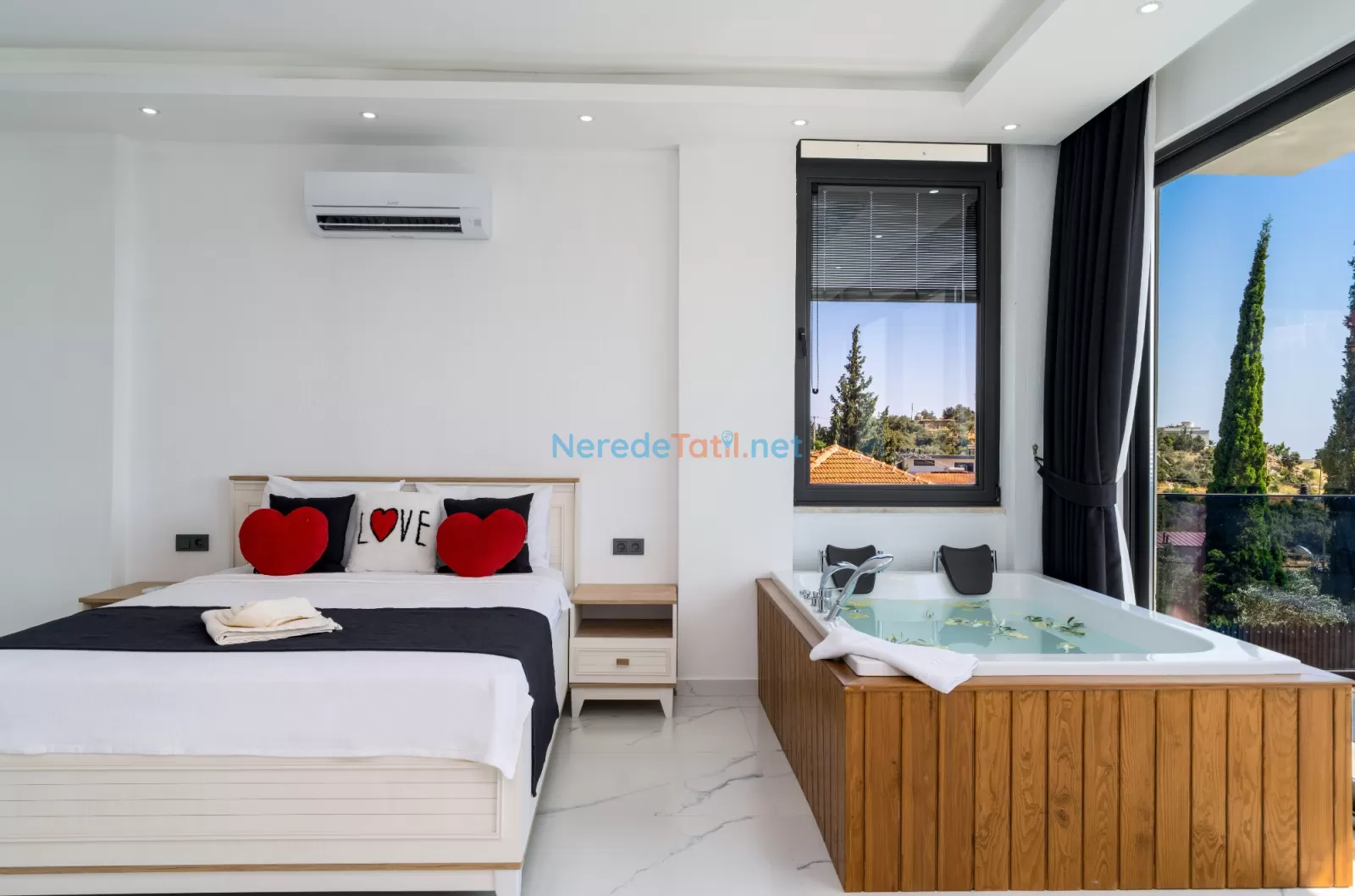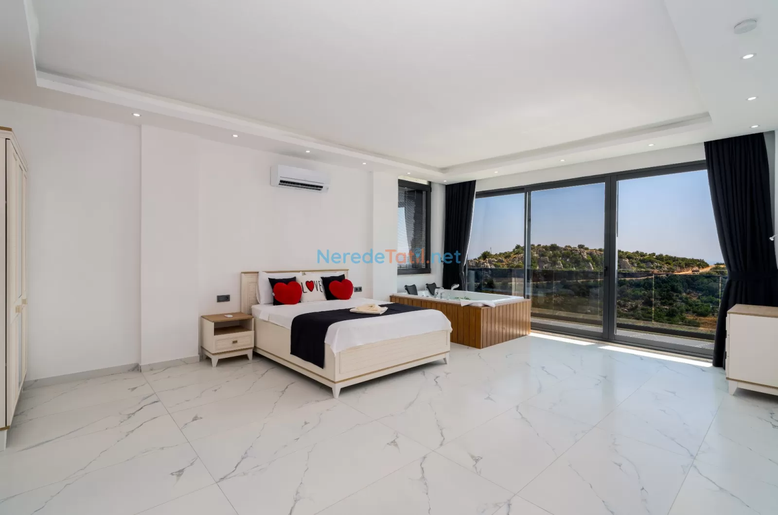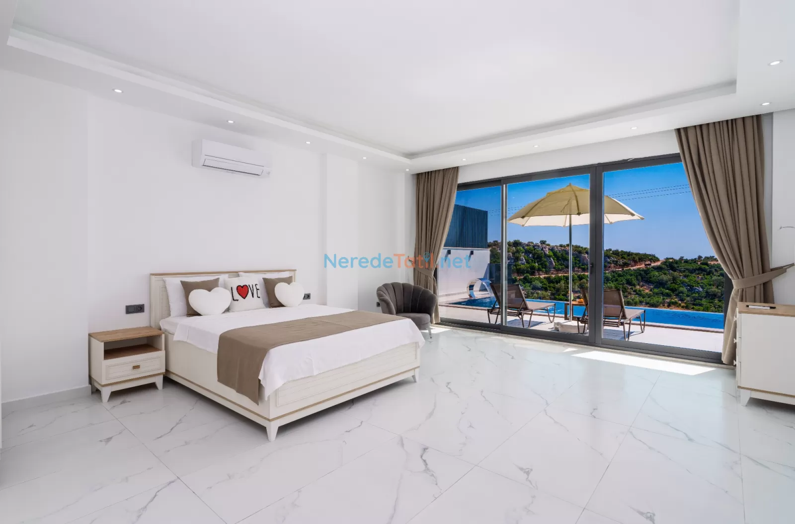 Kördere'nin eşsiz doğasında konumlanan, muhteşem bir tatil fırsatı sunan bu villa, 9 kişilik konaklama kapasitesi ile aileler ve arkadaş grupları için mükemmel bir seçimdir. Villamızda dört yatak odası ve dört banyo bulunmaktadır. Konforlu bir tatil geçirmeniz için üç çift kişilik yatak ve üç tek kişilik yatak ile donatılmıştır.