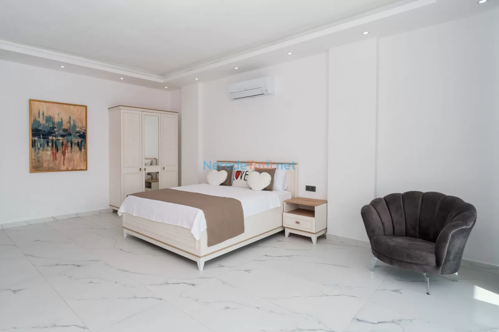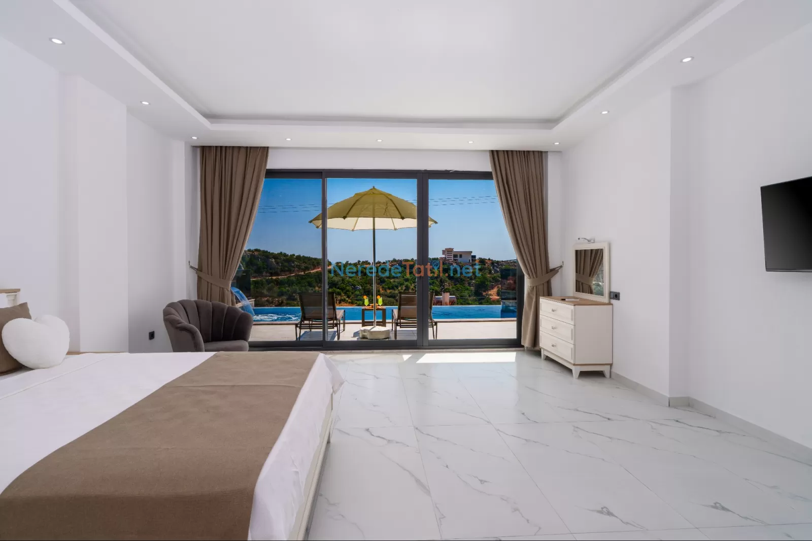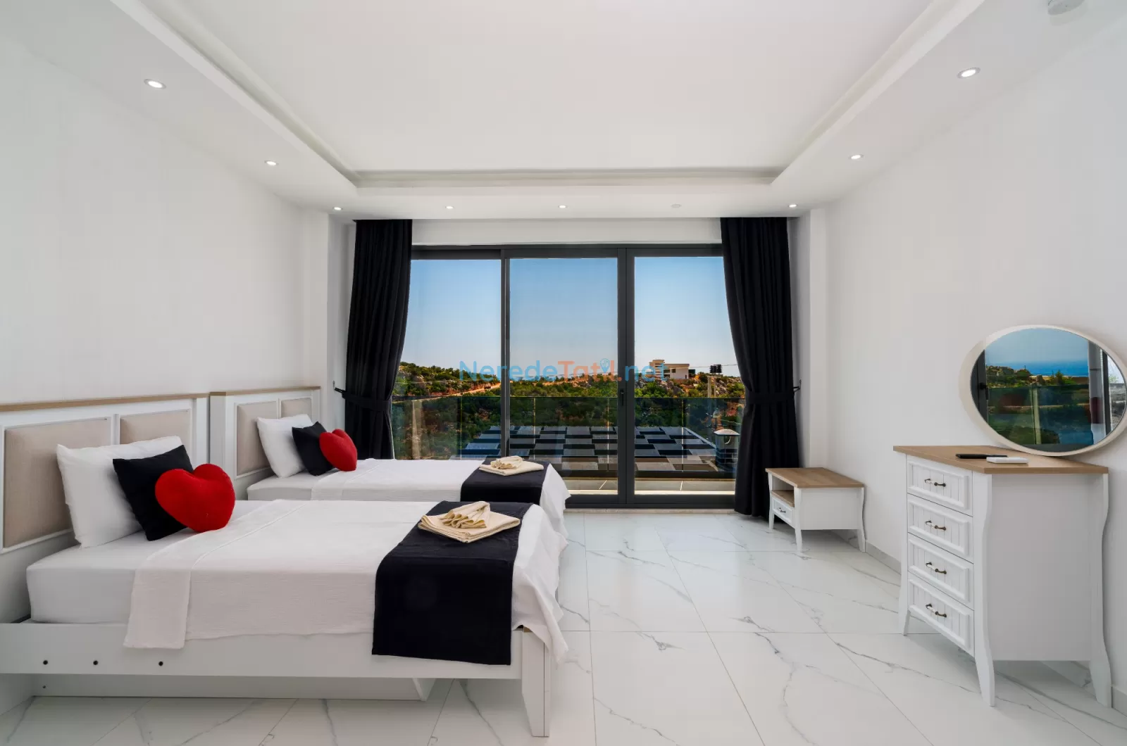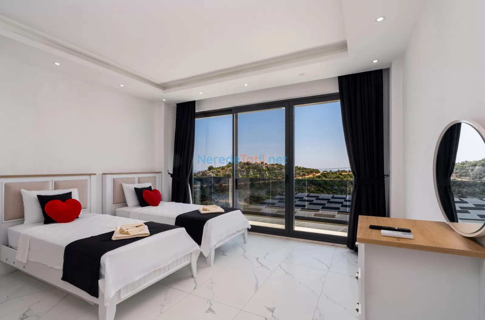 Kördere'nin eşsiz doğasında konumlanan, muhteşem bir tatil fırsatı sunan bu villa, 9 kişilik konaklama kapasitesi ile aileler ve arkadaş grupları için mükemmel bir seçimdir. Villamızda dört yatak odası ve dört banyo bulunmaktadır. Konforlu bir tatil geçirmeniz için üç çift kişilik yatak ve üç tek kişilik yatak ile donatılmıştır.