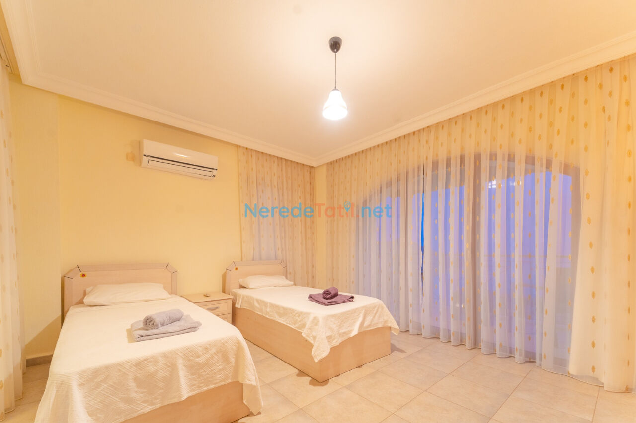 Villa, sekiz kişilik konaklama kapasitesine sahip olup, dört yatak odası ve dört banyo içermektedir. Çift kişilik iki yatak ve tek kişilik dört yatak sayesinde konforlu bir uyku deneyimi sunar. Geniş terasında, deniz manzarasının tadını çıkarırken, jakuzide rahatlayabilir ve tatilinizi daha keyifli hale getirebilirsiniz.