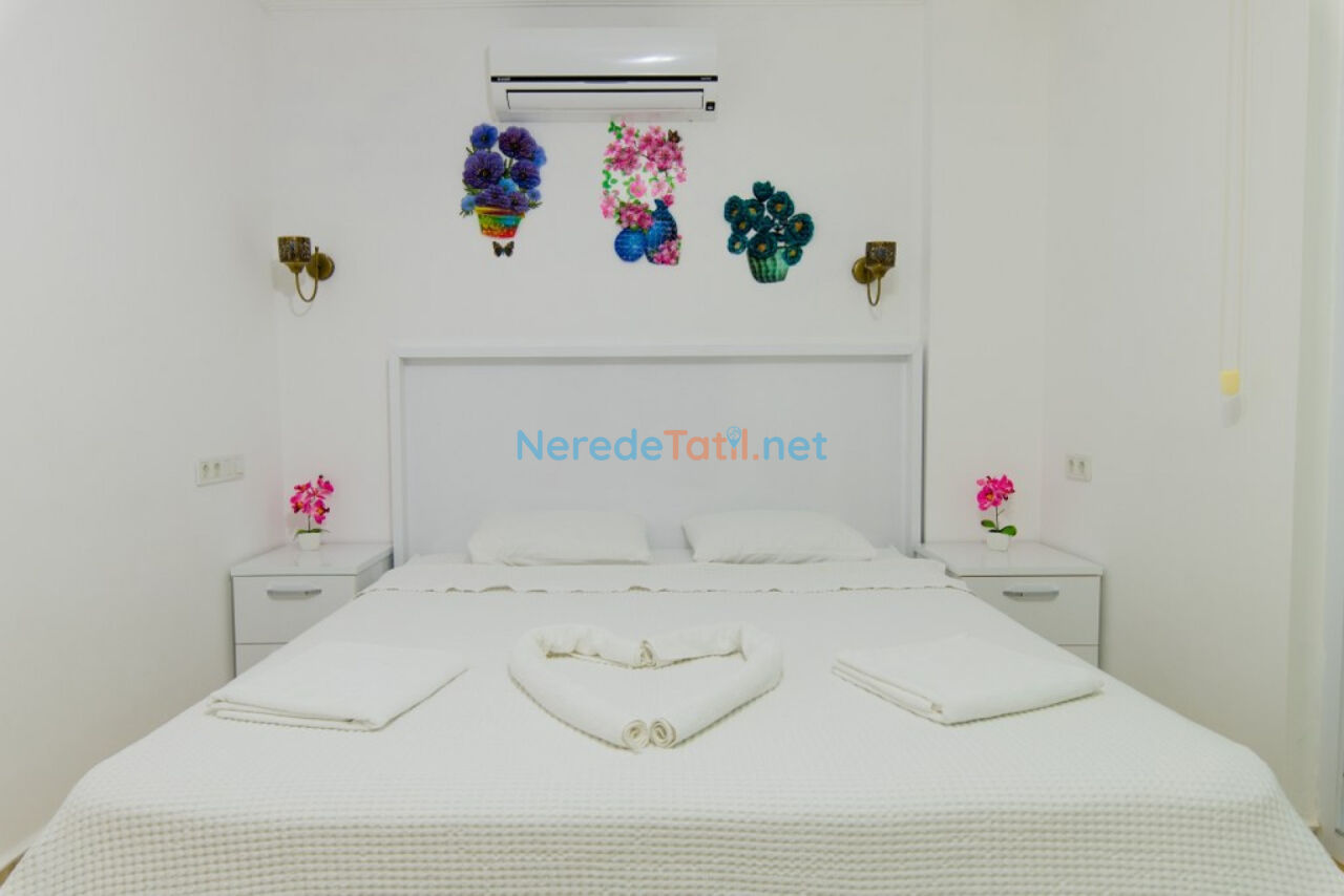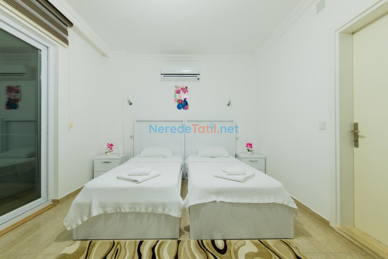 İslamlar'ın huzur dolu atmosferinde konumlanmış bu lüks villa, deniz manzarası ve doğa ile iç içe bir deneyim sunuyor. Villamız, toplamda 8 kişilik konaklama kapasitesi ile dört yatak odasına ve dört banyoya ev sahipliği yapmaktadır. İki adet çift kişilik yatak ve dört adet tek kişilik yatak bulunan odalar, konforlu bir tatil için ideal.