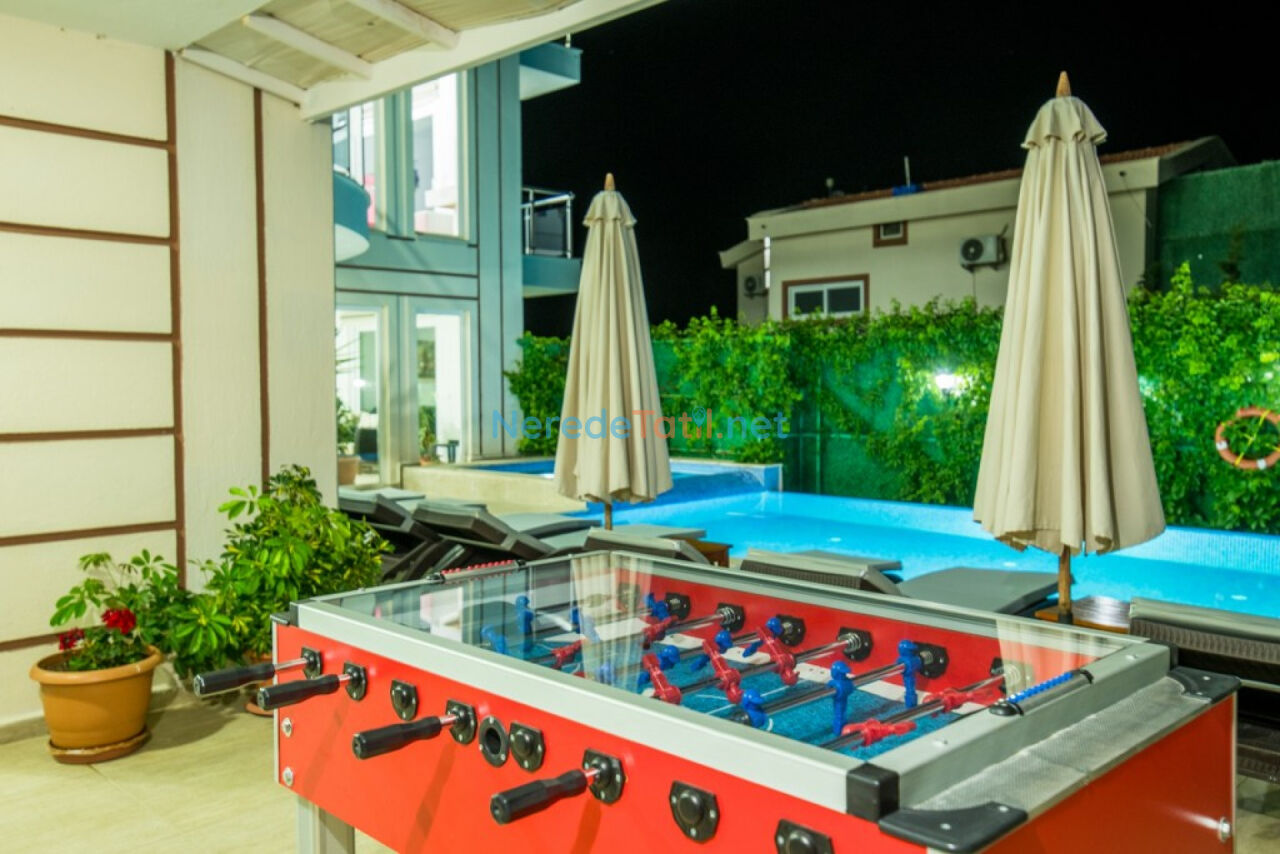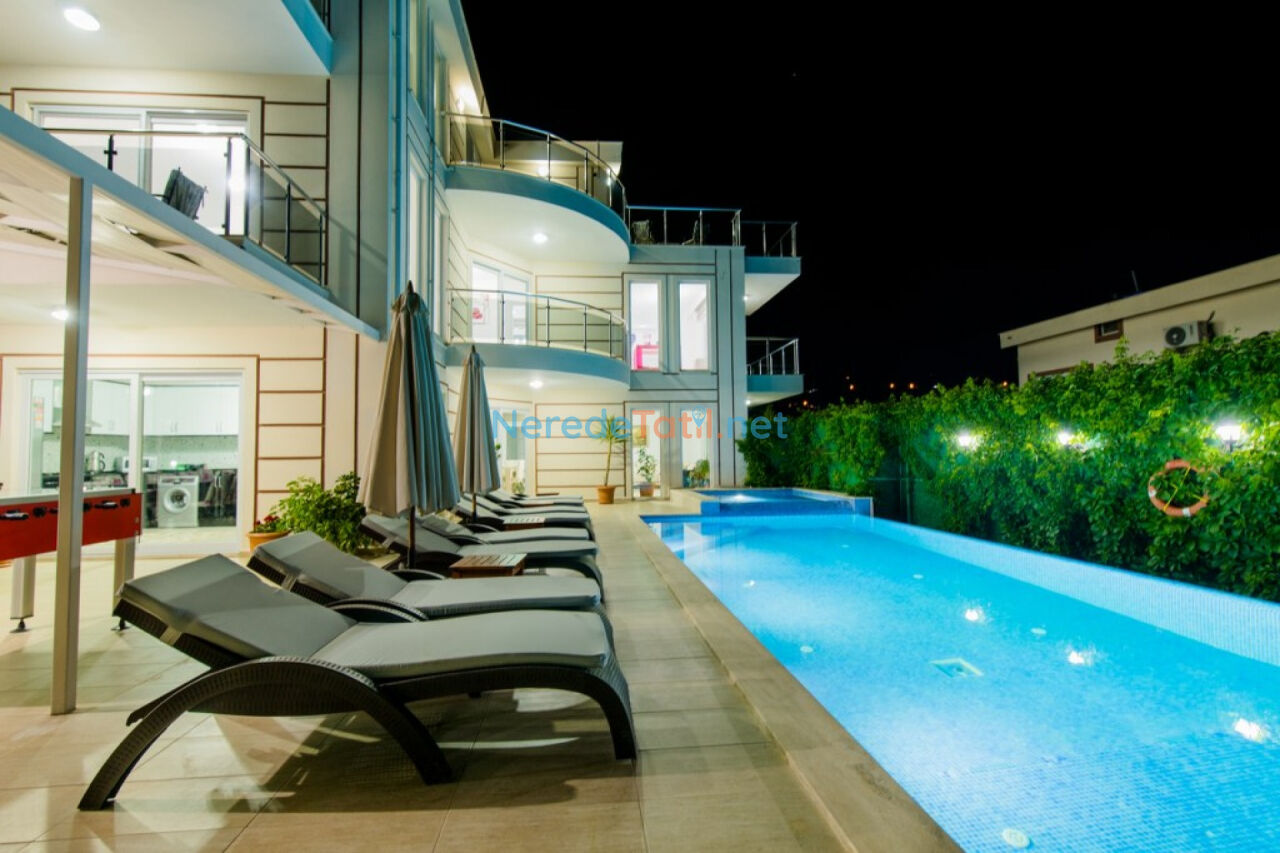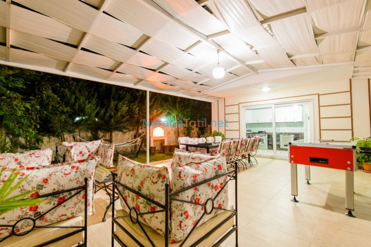 Villada ısıtmalı havuz, jakuzi, ve sinema salonu gibi lüks özellikler tatil keyfinizi artırmak için hazır. Bahçede bulunan BBQ - Mangal alanı, sevdiklerinizle keyifli vakit geçirmenizi sağlar. Çocuklar ve yetişkinler için sunulan oyun alanı, masa tenisi, langırt ve spor aletleri ise eğlence ve aktivite dolu anlar vadediyor.