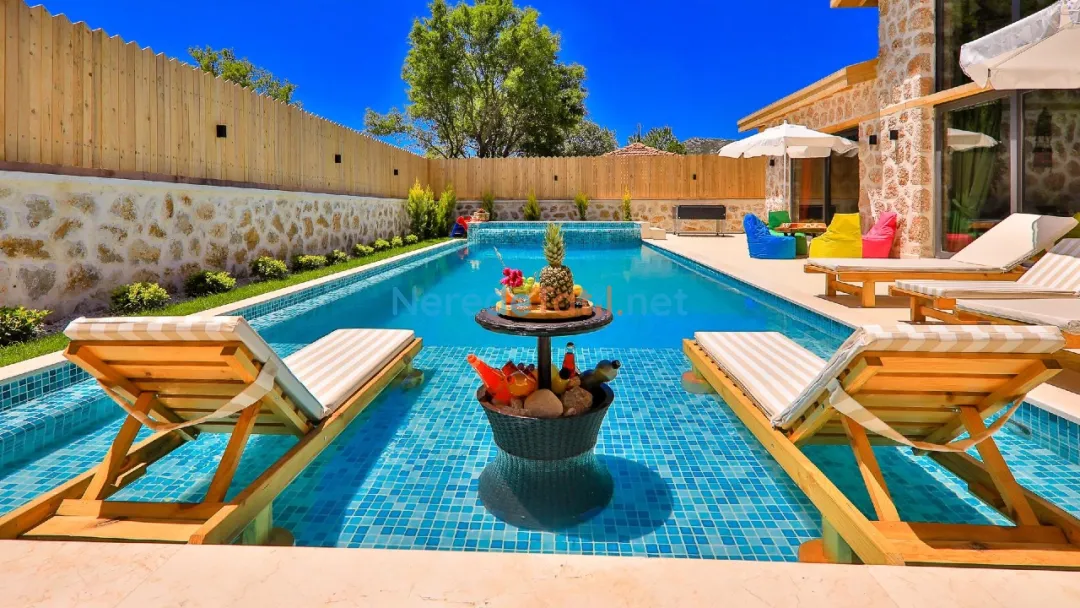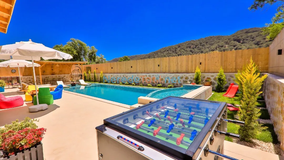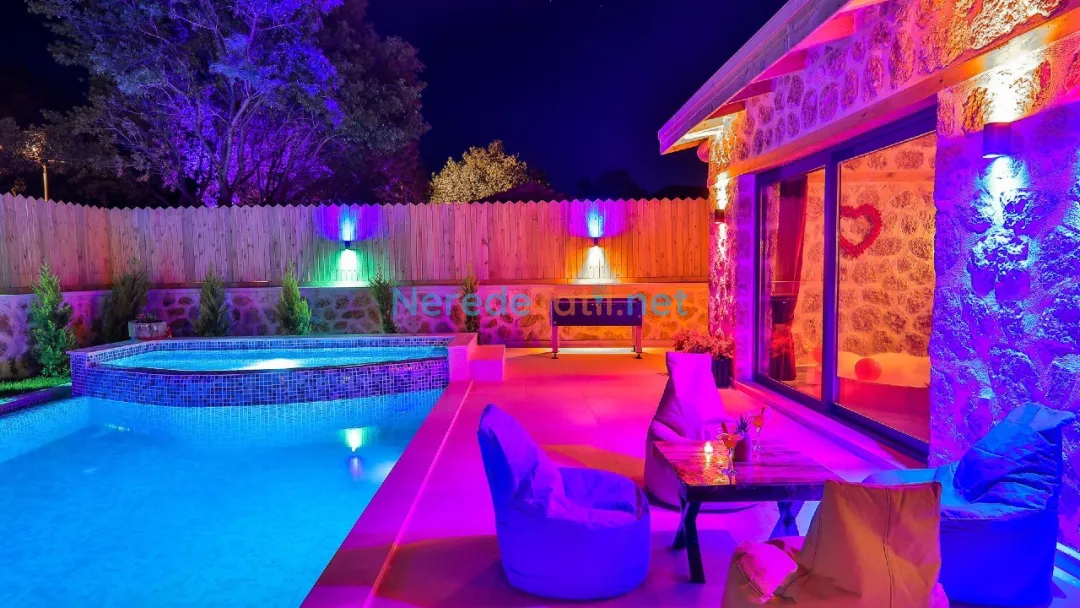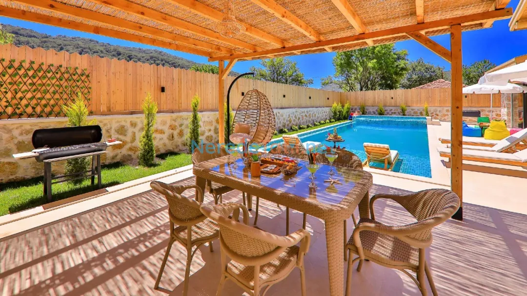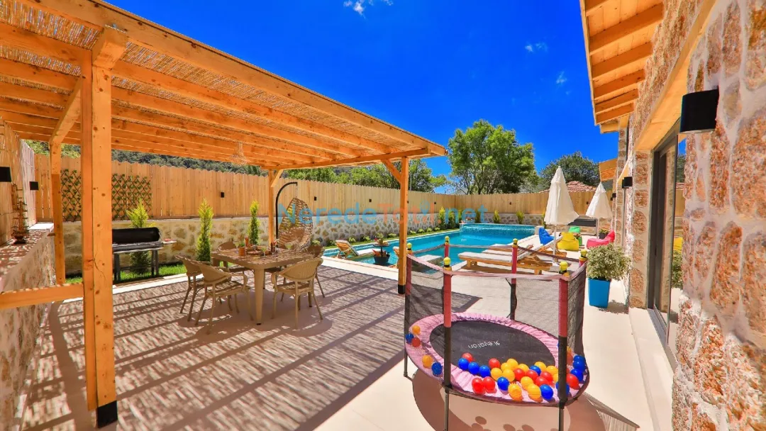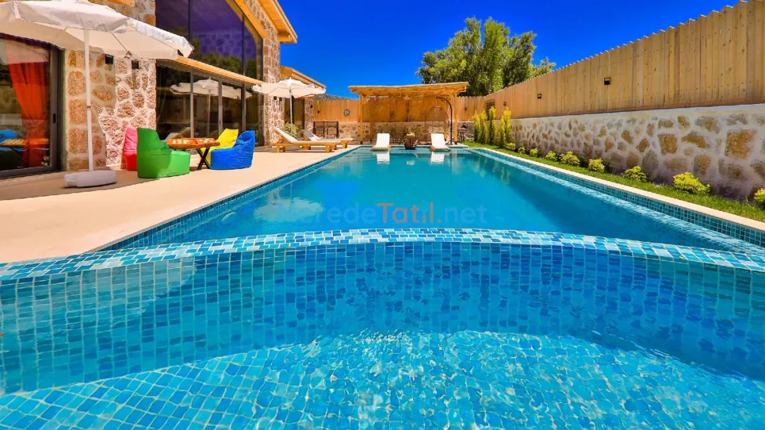 Misafirler, özel ve korunaklı havuzun tadını çıkarabilir. Havuzun büyüklüğü 4 metre en, 10 metre boy ve 1.55 metre derinliğiyle geniş bir yüzme alanı sunar. Doğa manzaralı terasta, sevdiklerinizle keyifli anlar geçirebilir ve barbekü yapabilirsiniz.