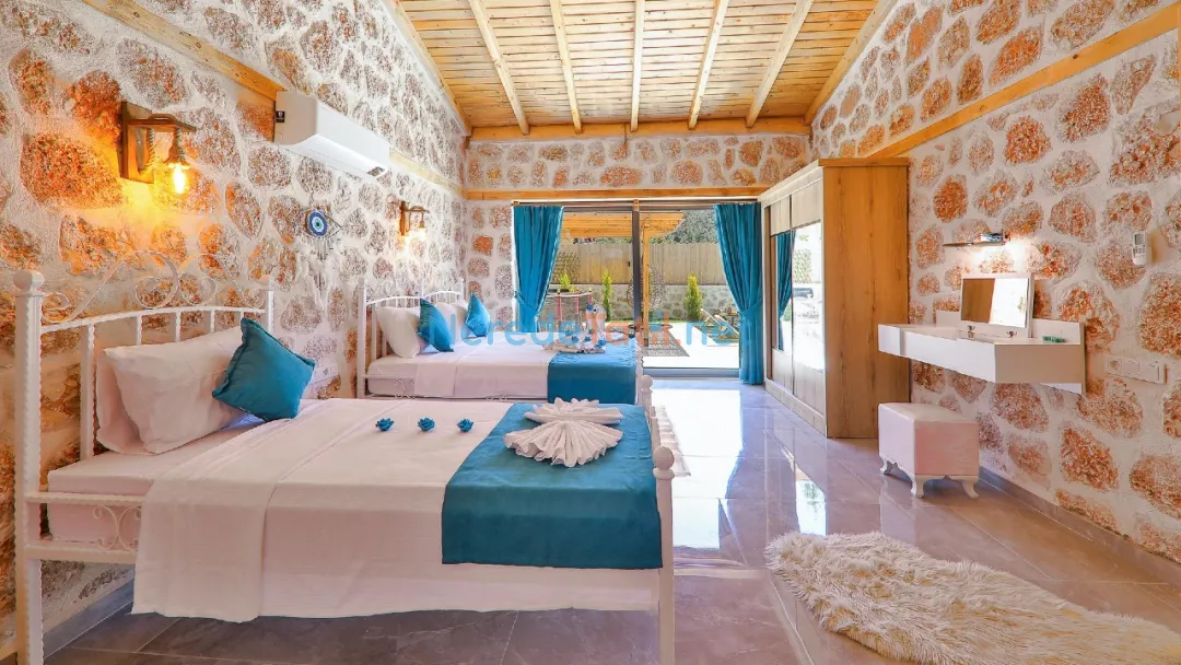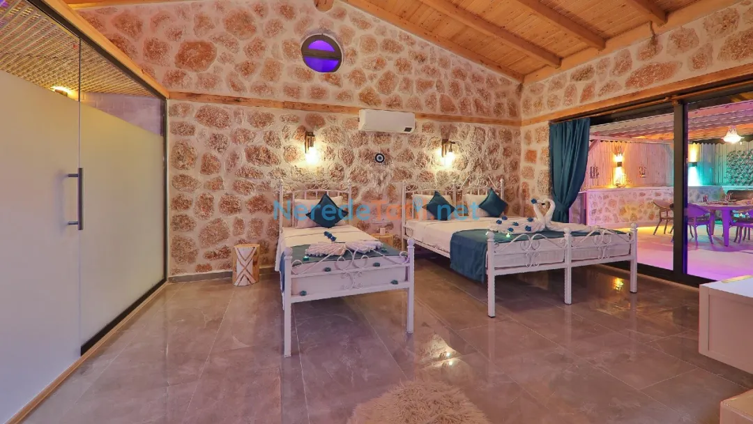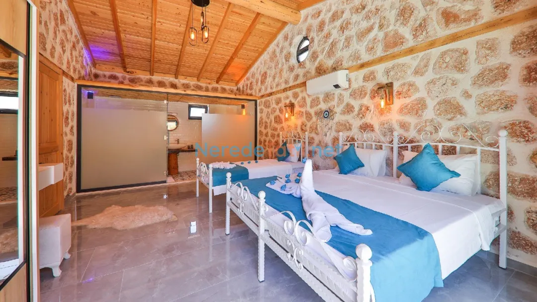 Bu muhteşem villa, Sarıbelen'de konumlanmış olup beş kişilik konaklama kapasitesi sunar. Villa, iki adet çift kişilik ve bir adet tek kişilik yatak ile toplamda üç yatak odası ve iki banyoya sahiptir.