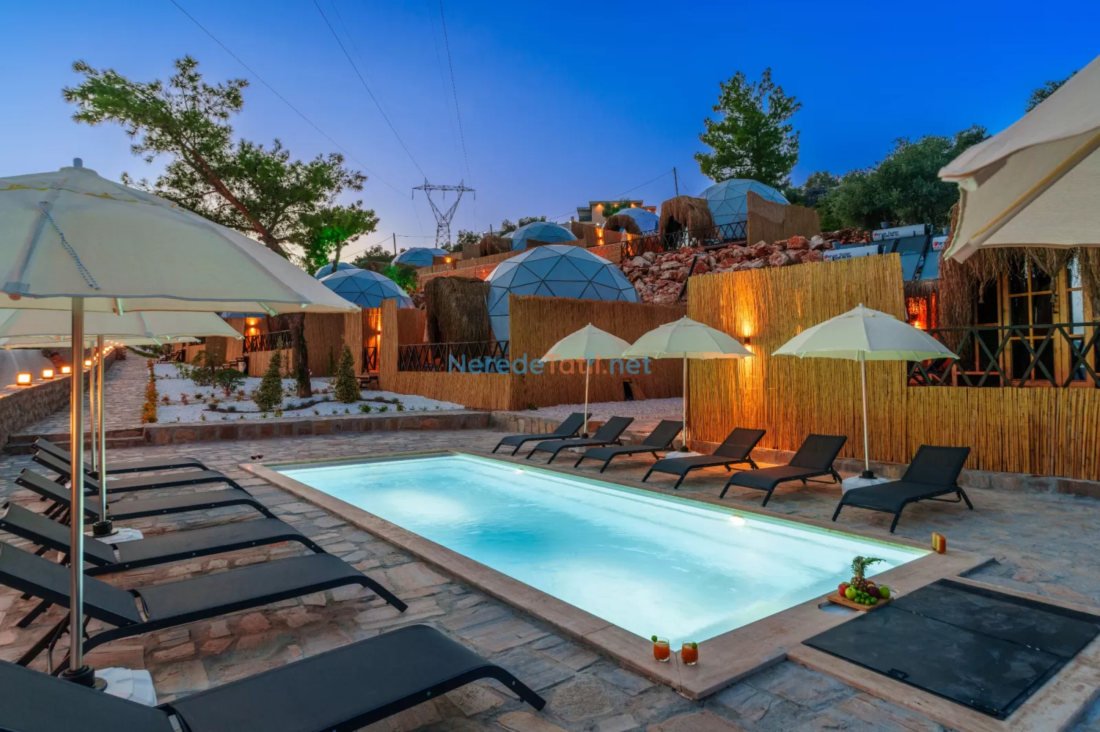 Üzümlü'nün doğa ile iç içe huzurlu ortamında yer alan bu villada 2 kişilik konaklama imkanı sunulmaktadır. Ortak havuzu ile dikkat çeken villa, şehir hayatının karmaşasından uzaklaşmak isteyen çiftler için idealdir. 3 metre genişliğinde ve 9 metre uzunluğundaki ortak havuzu ile suyun tadını doyasıya çıkarabilirsiniz.