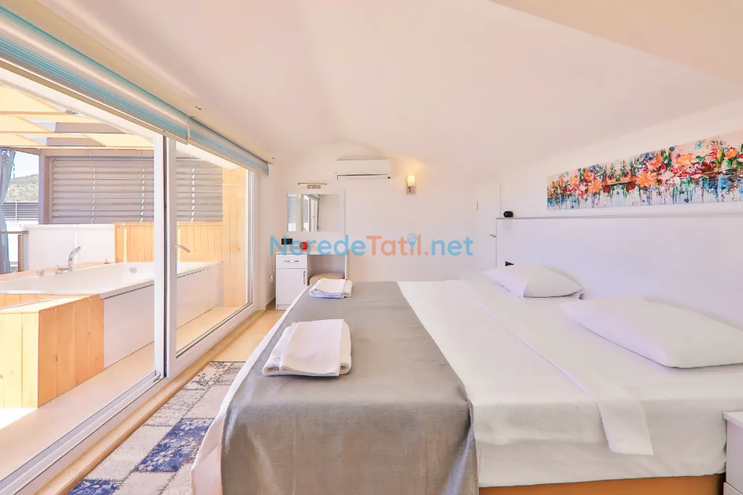 Kızıltaş'ta Deniz Manzaralı, Lüks ve Jakuzili Tatil Villası
