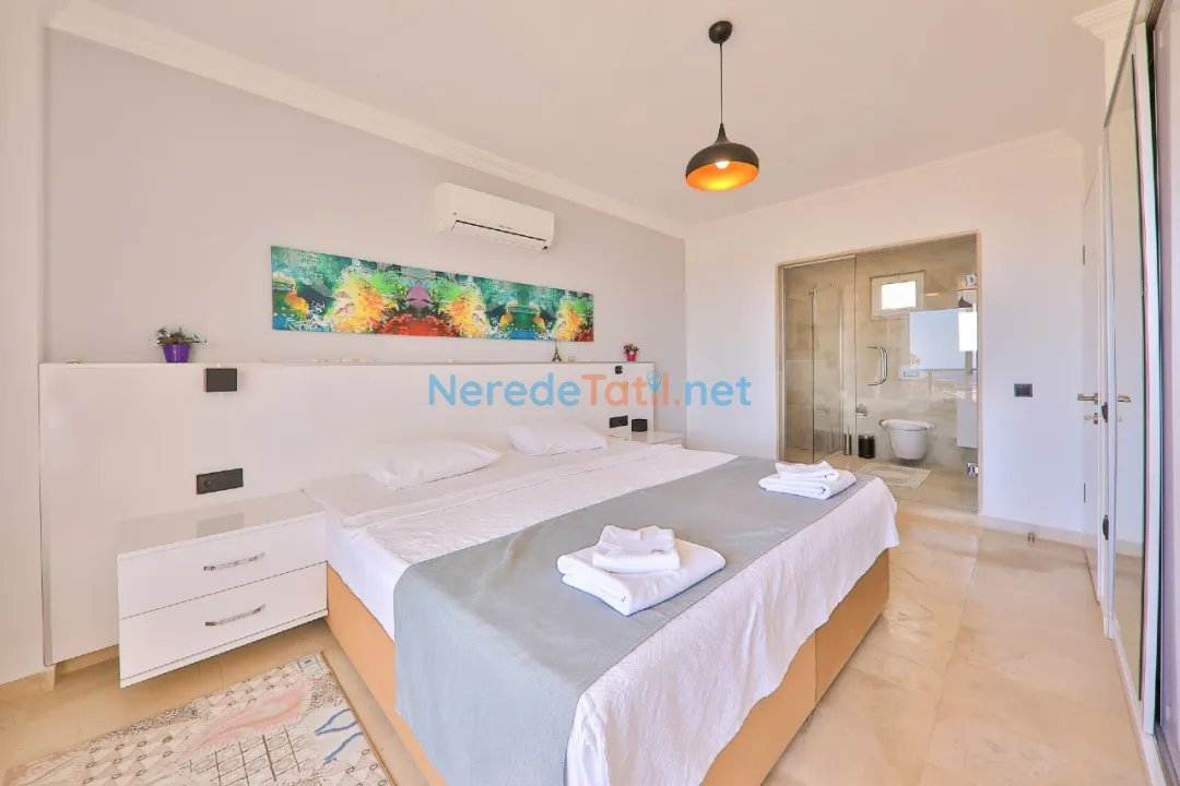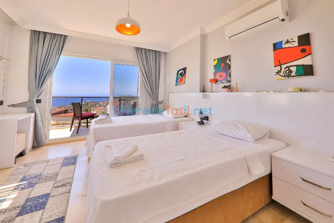 Kızıltaş'ta yer alan bu villa, deniz manzarası ve lüks detaylarıyla öne çıkıyor. Altı kişilik konaklama kapasitesi sunan villa, dört yatak ve üç banyo ile rahat bir tatil imkanı sağlıyor. İki adet çift kişilik yatak ve iki adet tek kişilik yatak mevcut.