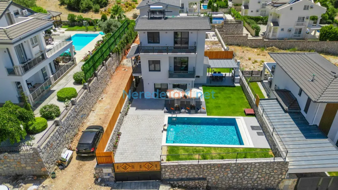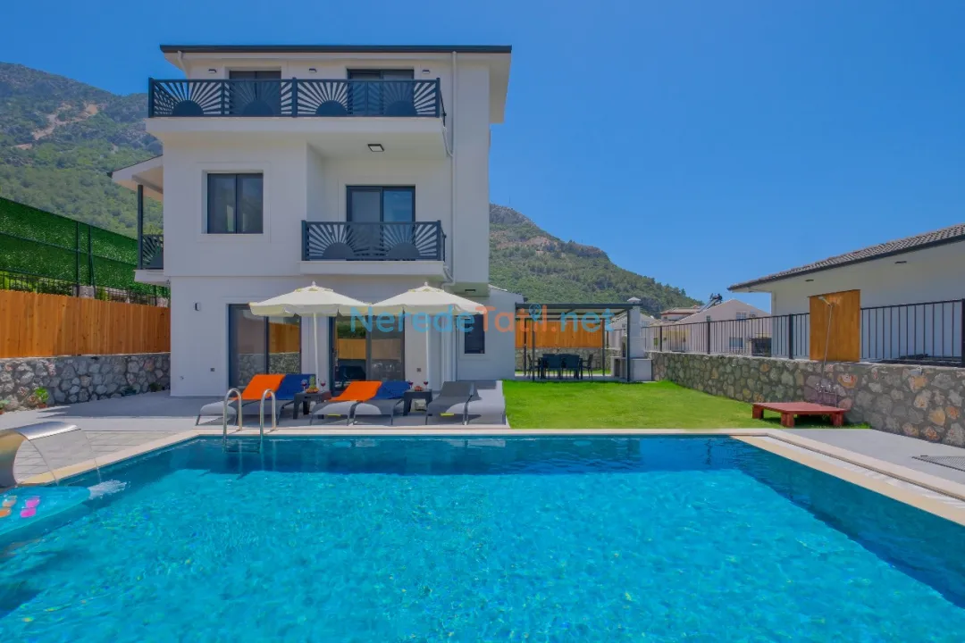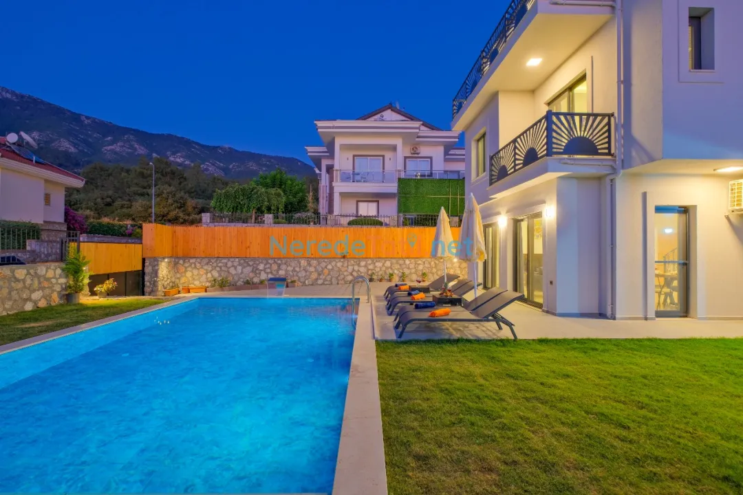 Ölüdeniz'in benzersiz güzellikleri içinde konumlanmış bu villa, şehir merkezine ve plajlara yakınlığı ile dikkat çekiyor. Şehir içinde yer alan bu lüks villa, özel havuz ve doğa manzarası sunarak misafirlerine huzur dolu bir tatil imkanı sağlıyor. Villada üç yatak odası ve dört banyo bulunuyor, bu da konforlu bir konaklama deneyimi sunuyor.