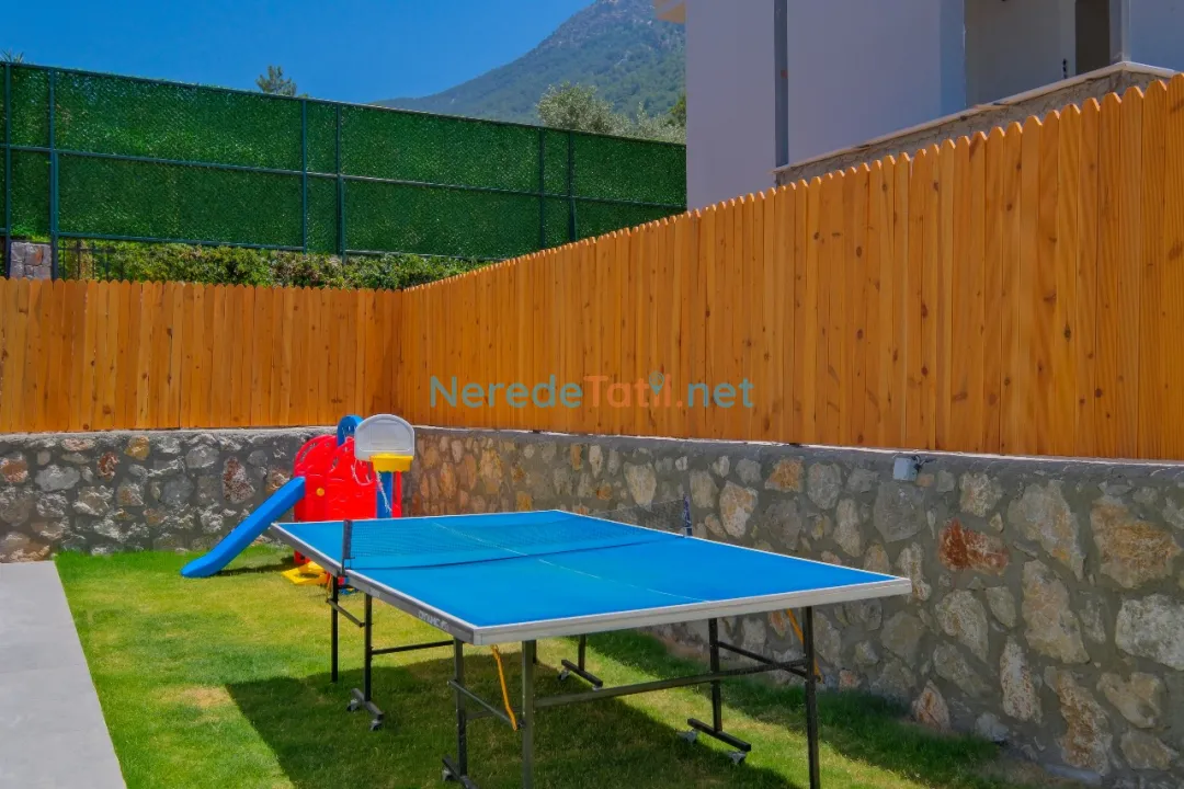 Villa, çift kişilik ve tek kişilik yatakları ile altı kişiye kadar konaklama kapasitesine sahip olup, ayrıca bebek yatağı da bulunmaktadır. Tatil boyunca misafirler, jakuzi ve bahçede BBQ - mangal keyfi yaşayabilirler. Oyun alanı ve masa tenisi gibi eğlenceli aktiviteler ile dolu dolu bir tatil geçirebilirsiniz. Ütü ve saç kurutma makinesi gibi çeşitli olanaklar da misafirlerin kullanımına sunulmuştur.