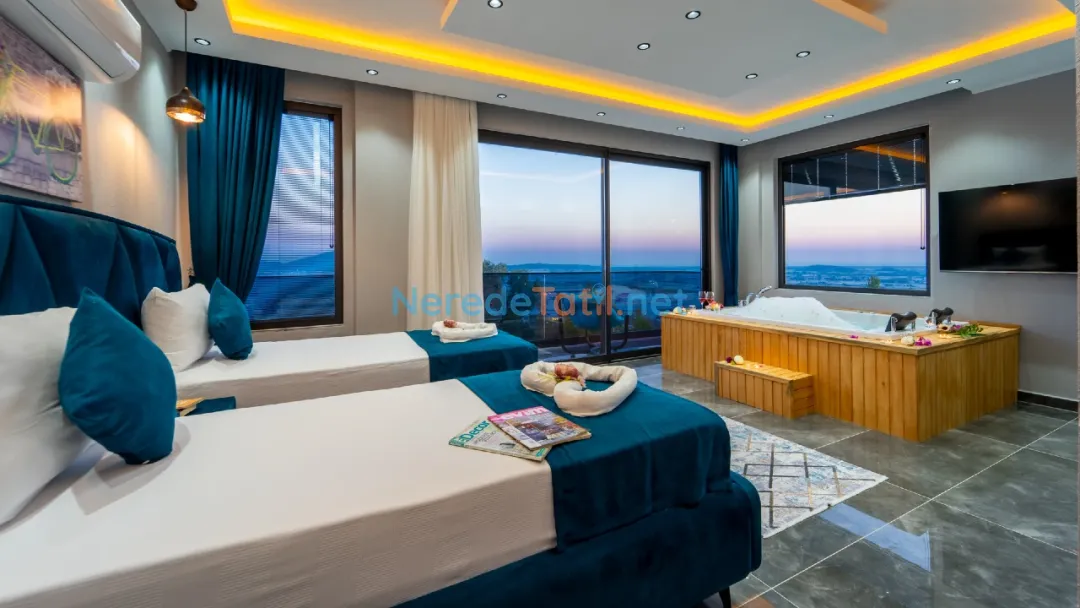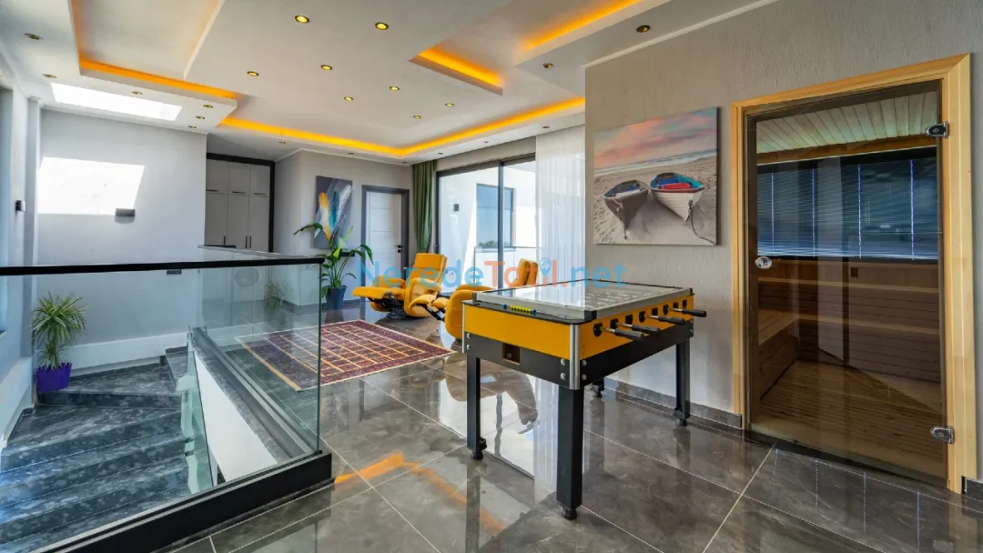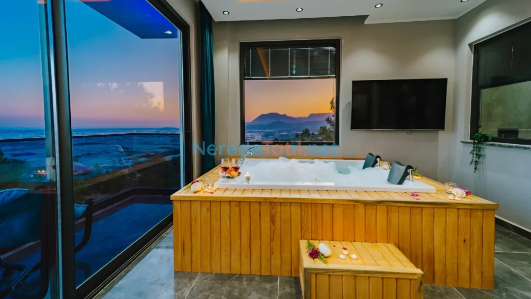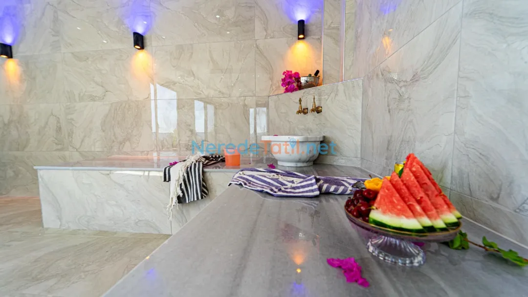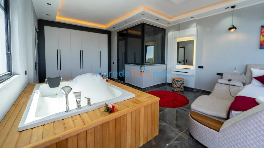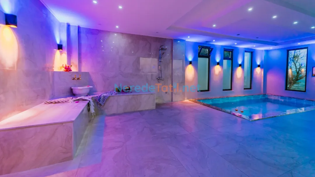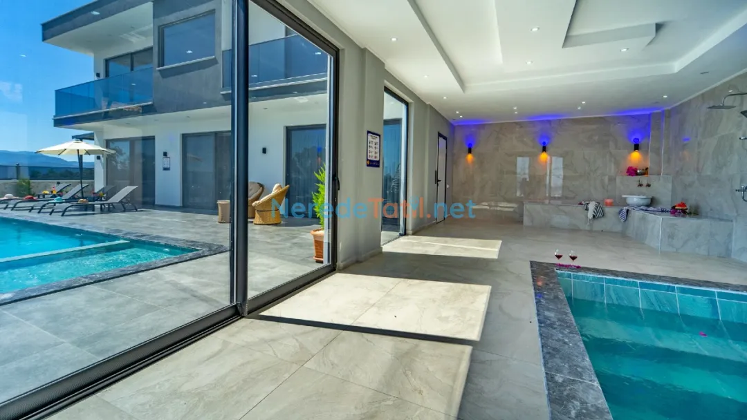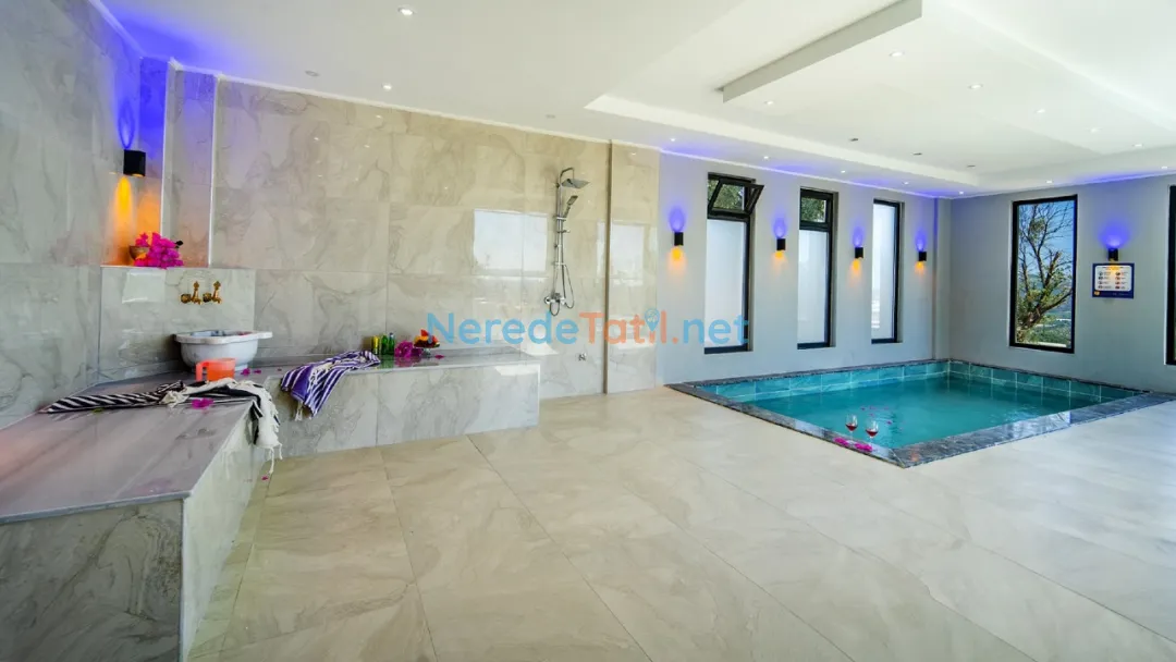 Villanın içinde yer alan jakuzi, sauna ve hamam alanları ile tatilinizi daha da özel hale getirebilirsiniz. Ayrıca, kapalı havuz ve ısıtmalı havuz seçenekleri ile yılın her zamanı keyifle kullanabilirsiniz. Çocuklar için özel tasarlanmış çocuk havuzu, tatil boyunca çocuklarınızın da eğlenceli vakit geçirmesini sağlayacak.