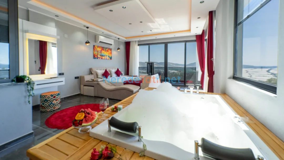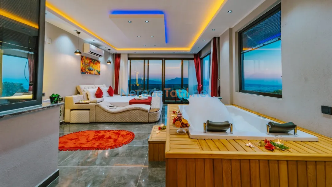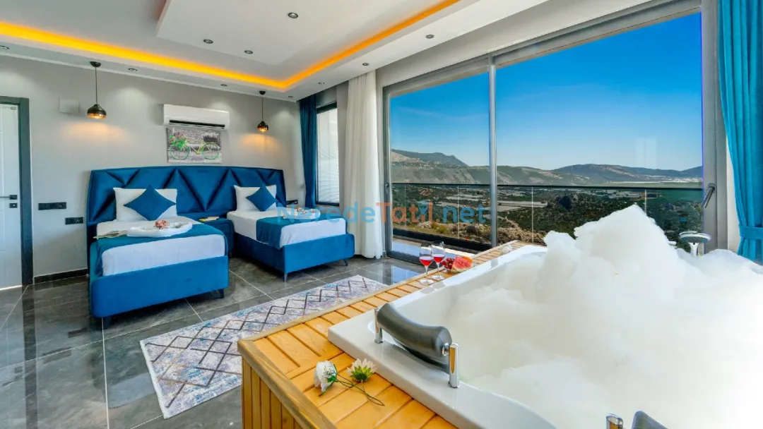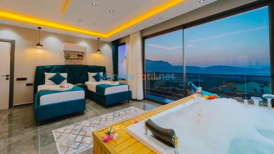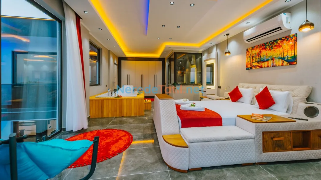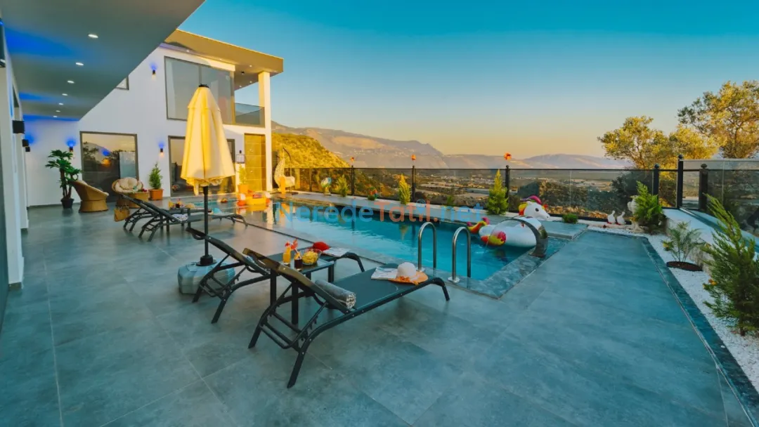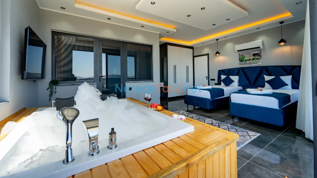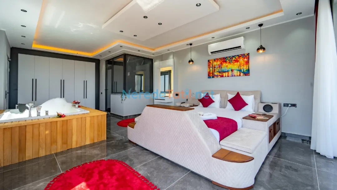 Villanın içinde yer alan jakuzi, sauna ve hamam alanları ile tatilinizi daha da özel hale getirebilirsiniz. Ayrıca, kapalı havuz ve ısıtmalı havuz seçenekleri ile yılın her zamanı keyifle kullanabilirsiniz. Çocuklar için özel tasarlanmış çocuk havuzu, tatil boyunca çocuklarınızın da eğlenceli vakit geçirmesini sağlayacak.