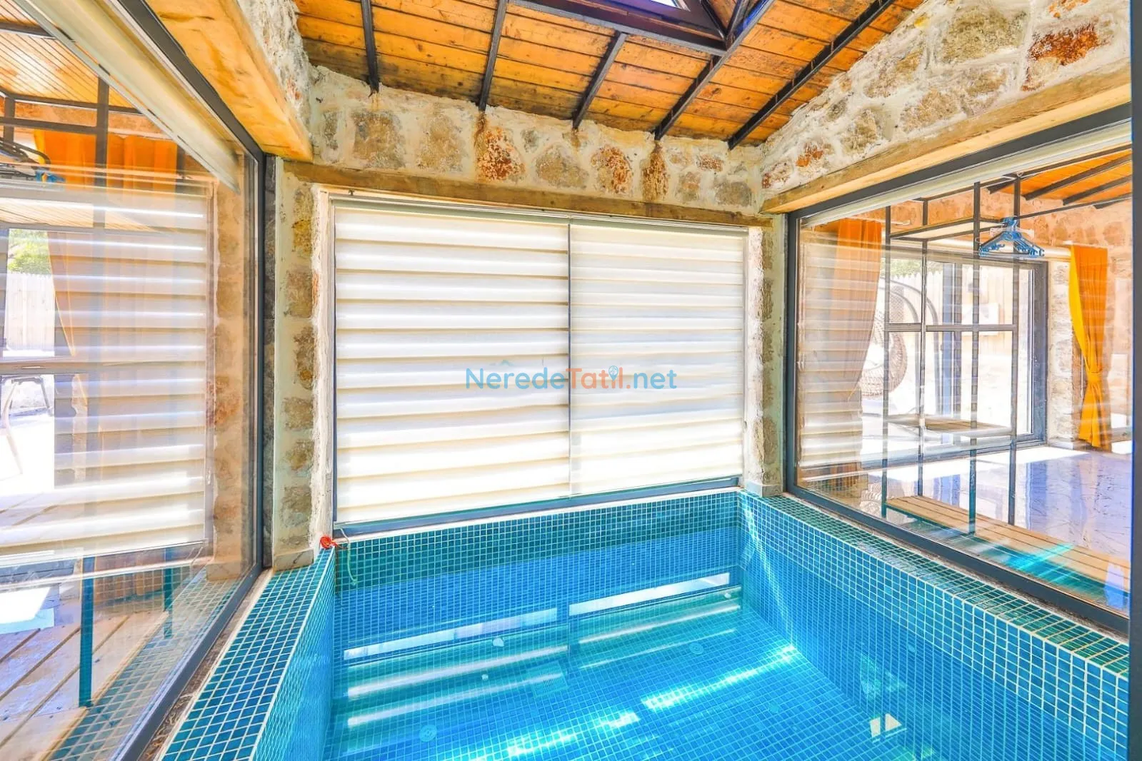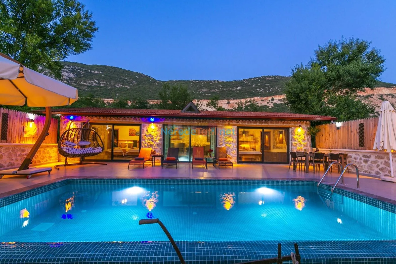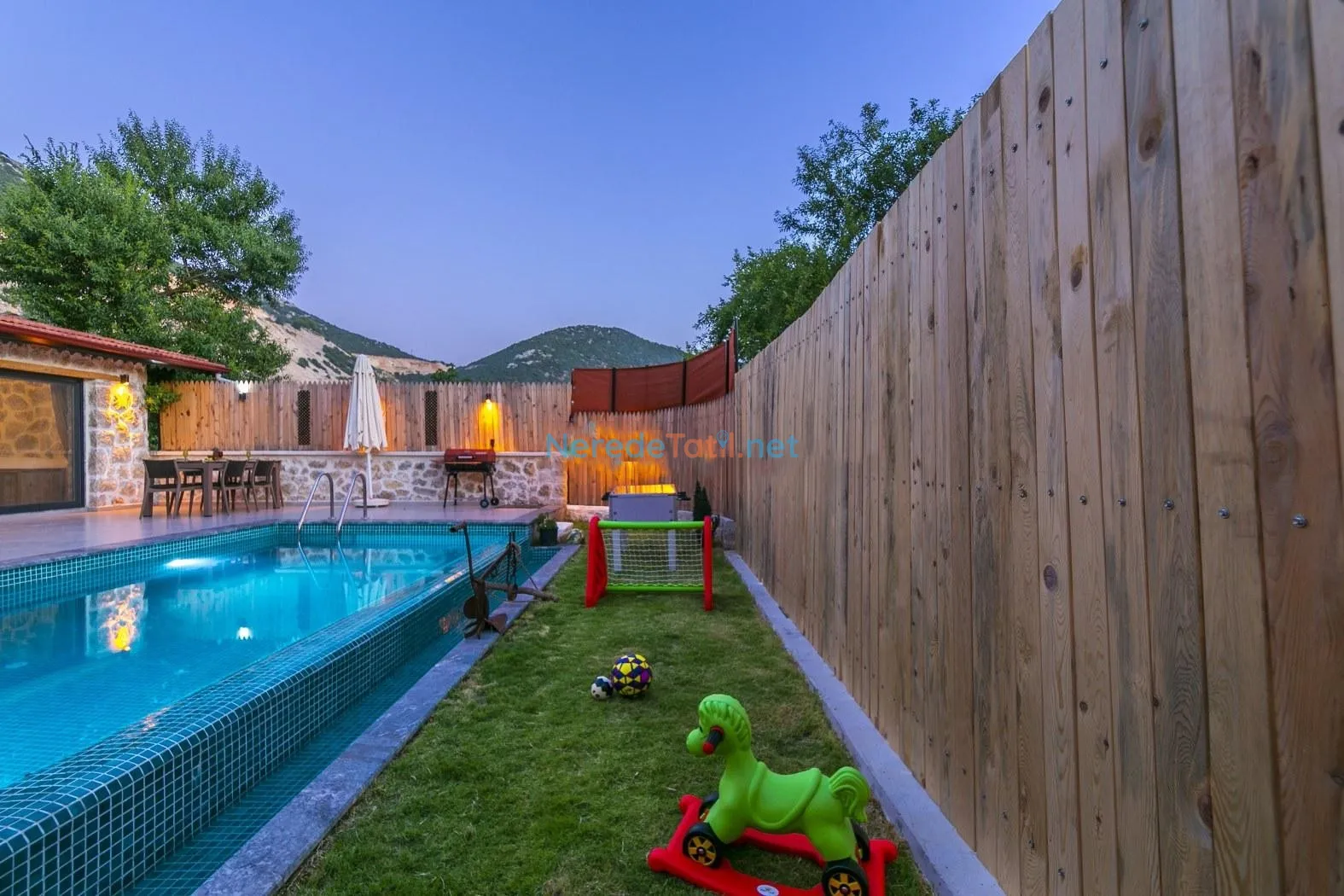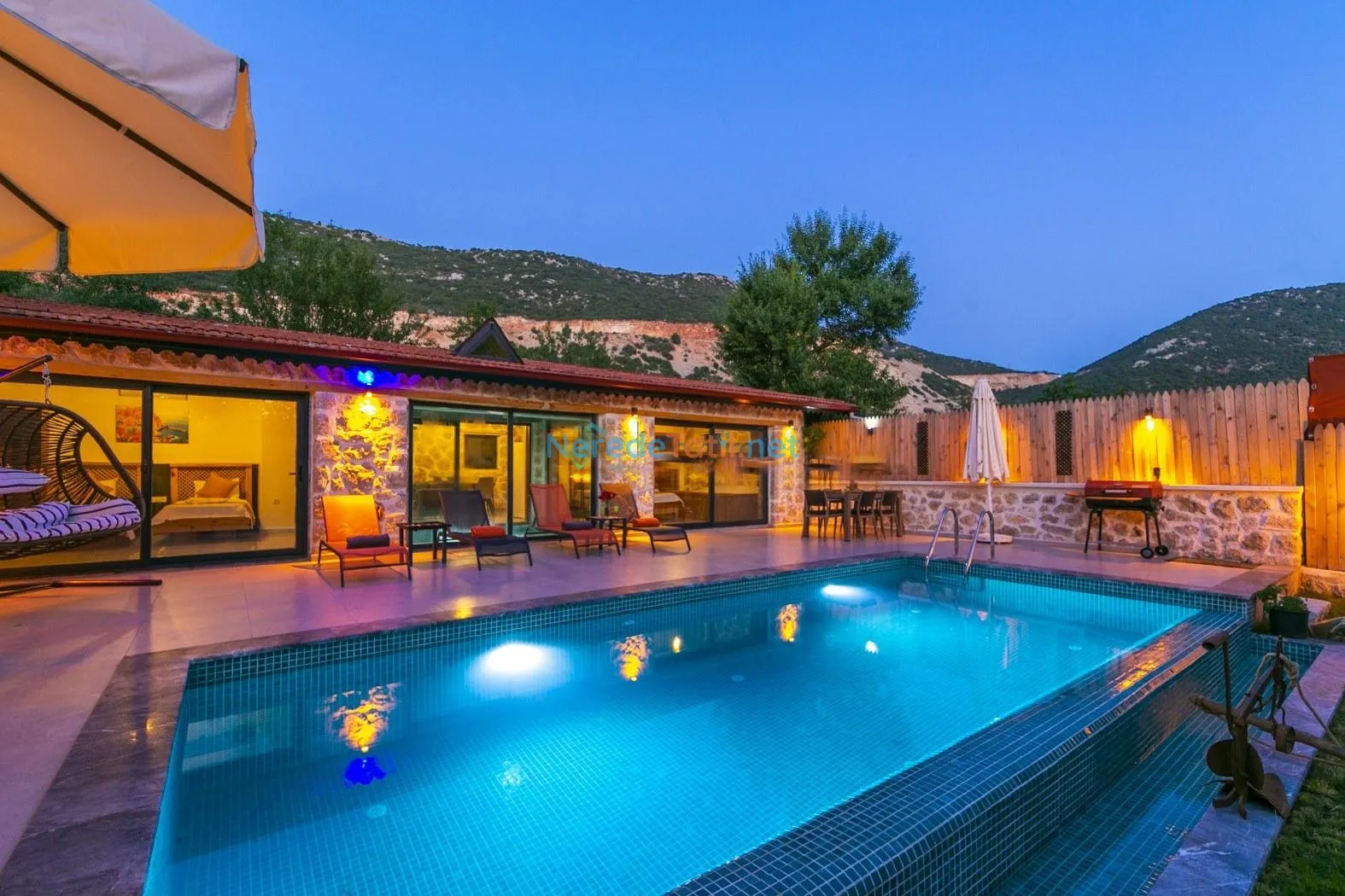 Villanın kapalı ve ısıtmalı havuzu, her mevsim konforlu yüzme imkanı sunarken, jakuzi ise günün yorgunluğunu atmak için mükemmel bir fırsat sağlıyor. Tatiliniz boyunca BBQ - Mangal alanında keyifli anlar yaşayabilir, doğa manzarası eşliğinde huzurlu zamanlar geçirebilirsiniz.