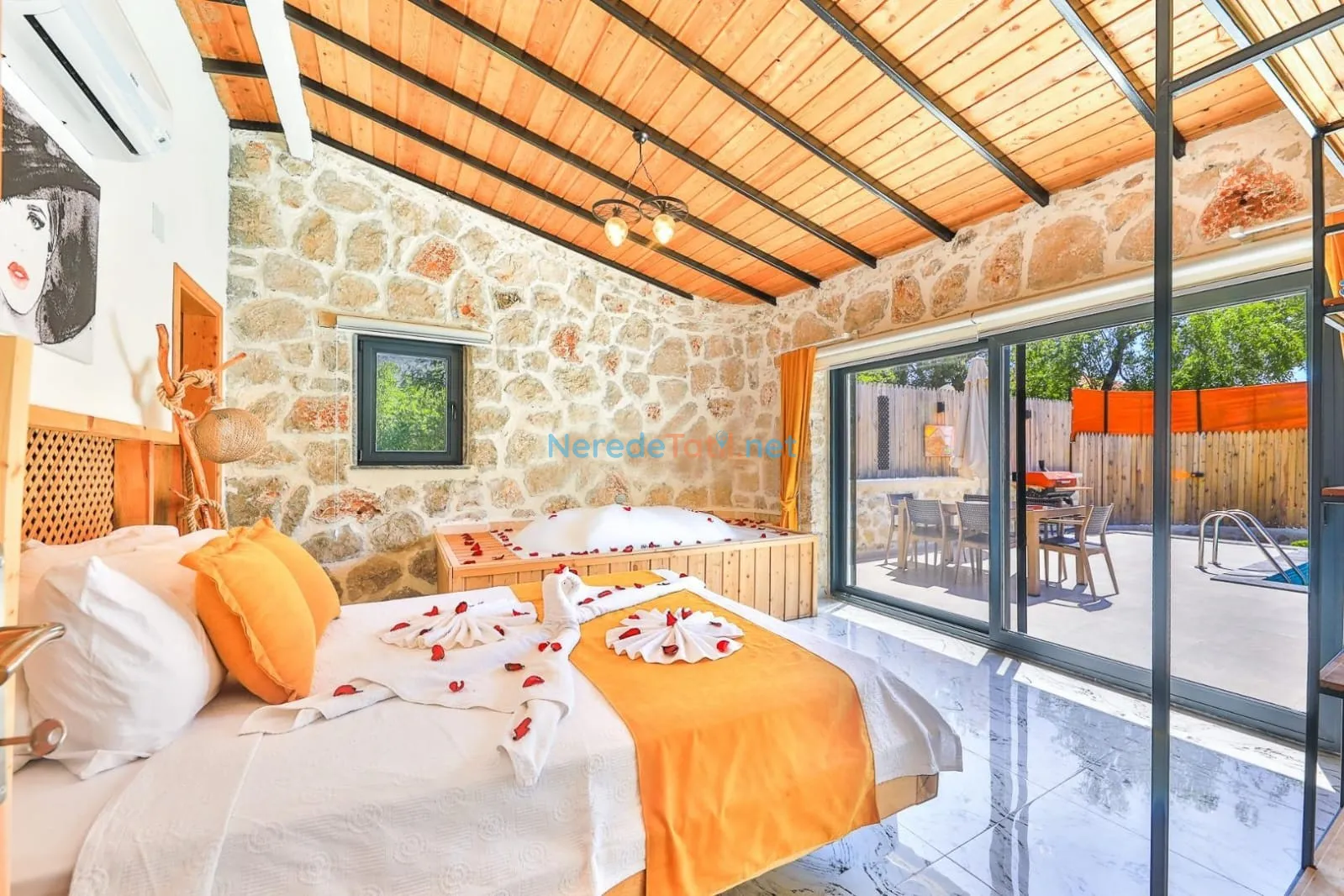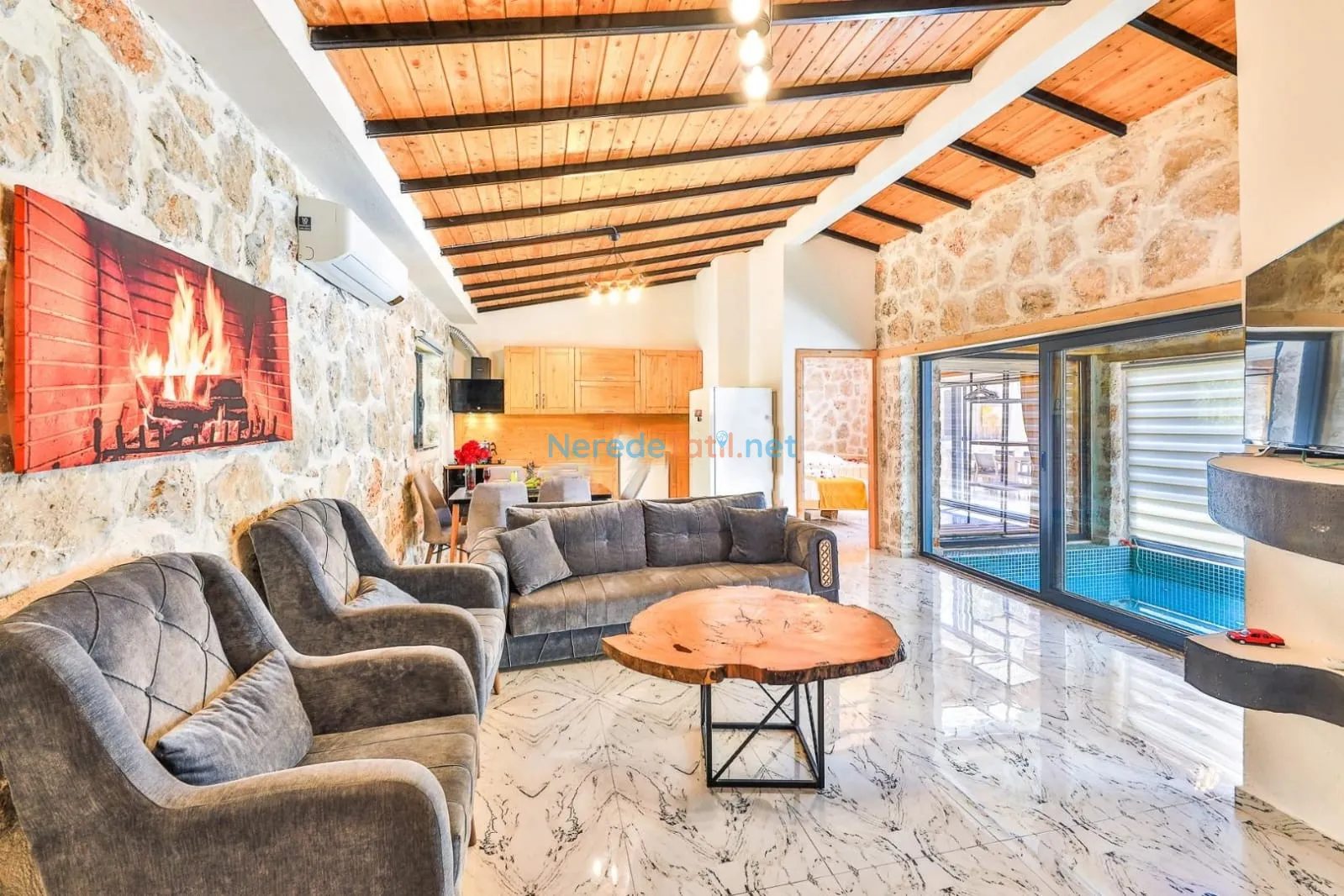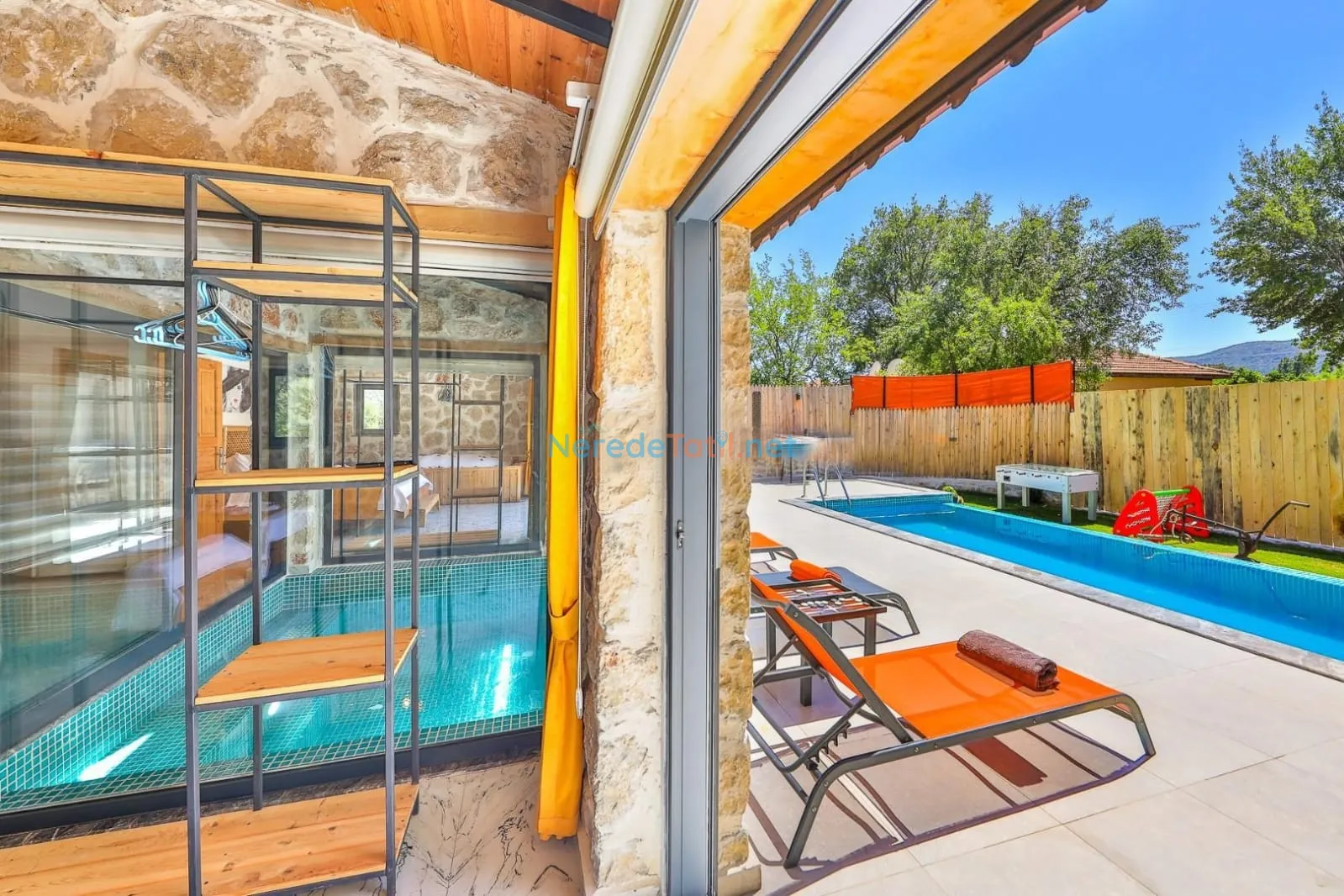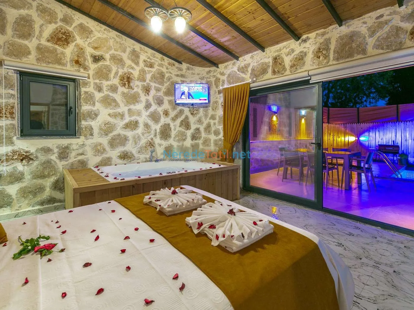 Villanın kapalı ve ısıtmalı havuzu, her mevsim konforlu yüzme imkanı sunarken, jakuzi ise günün yorgunluğunu atmak için mükemmel bir fırsat sağlıyor. Tatiliniz boyunca BBQ - Mangal alanında keyifli anlar yaşayabilir, doğa manzarası eşliğinde huzurlu zamanlar geçirebilirsiniz.