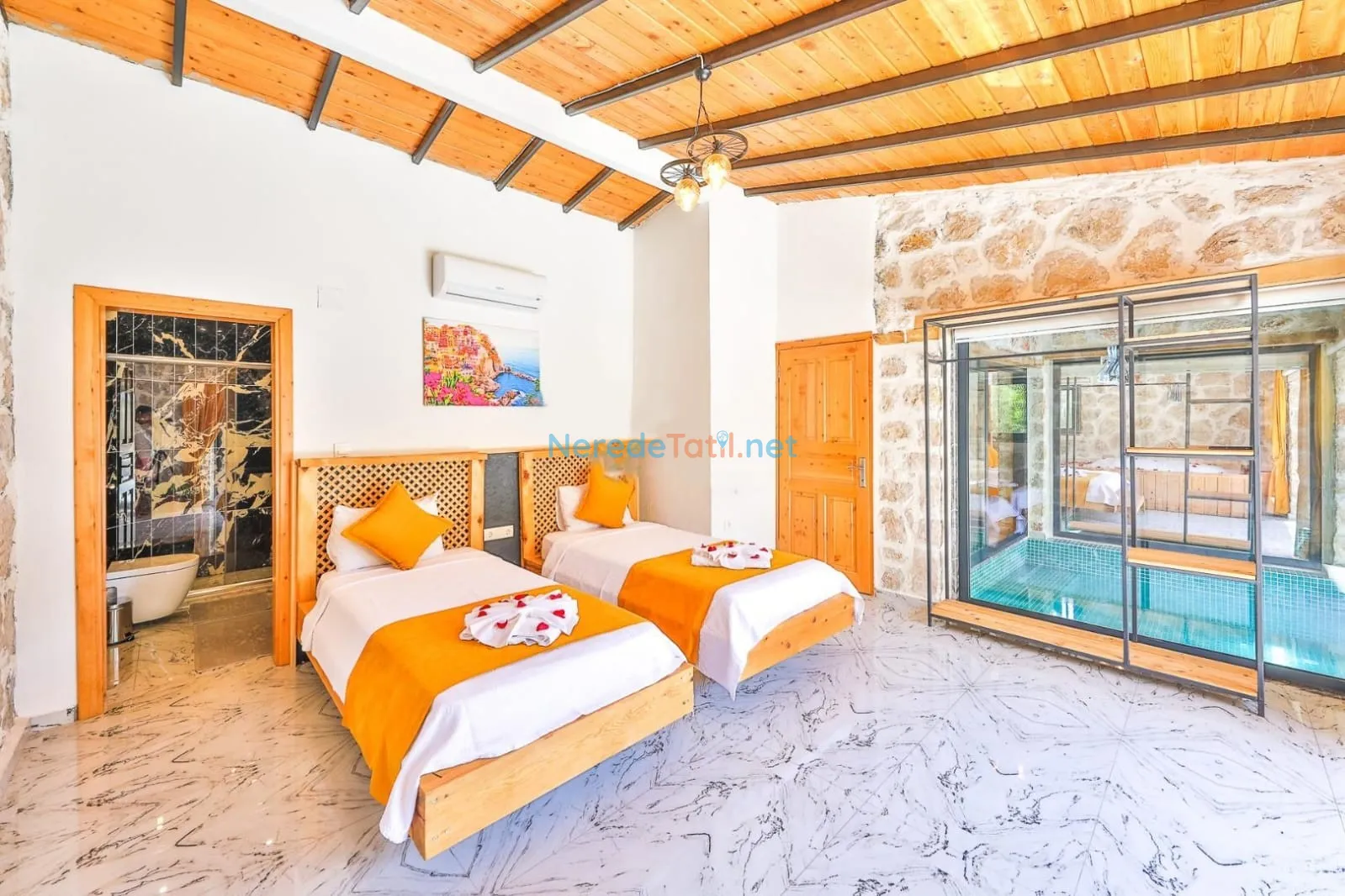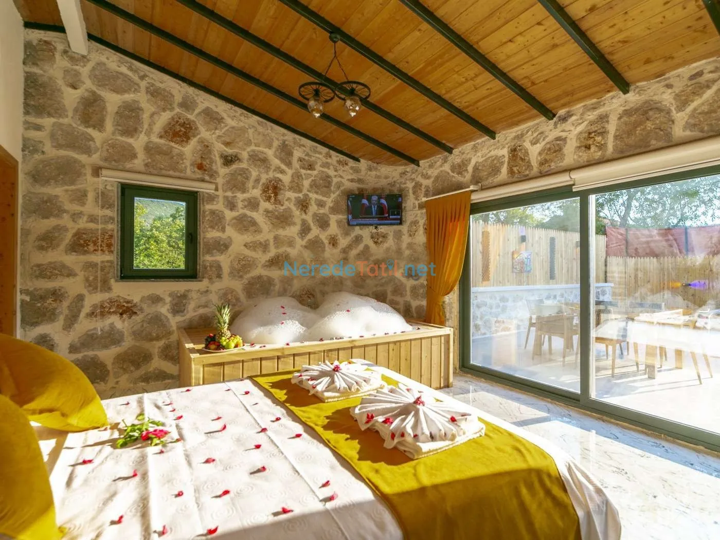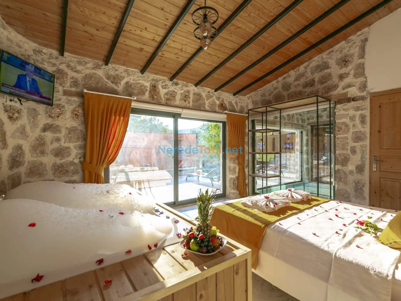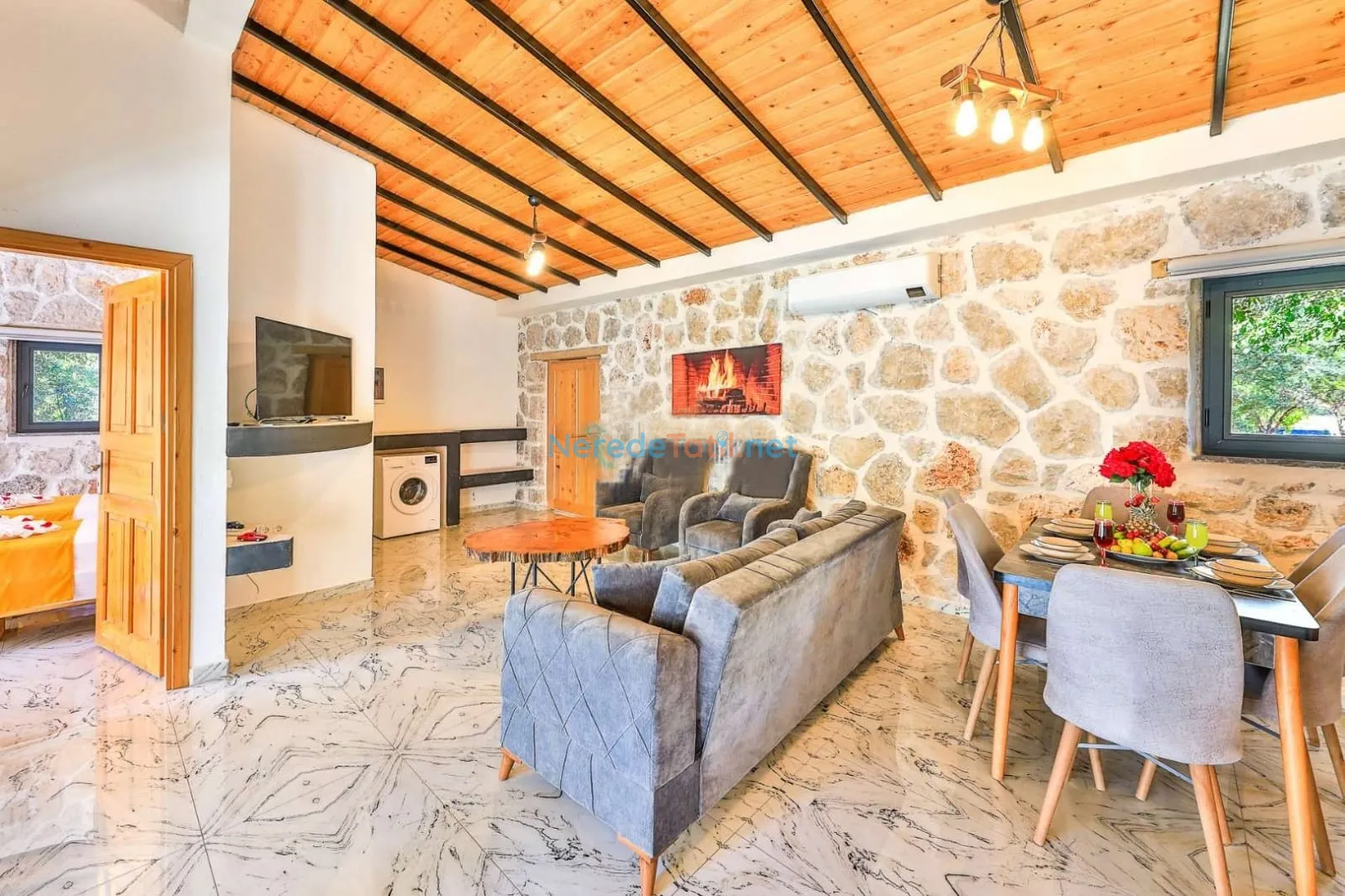 Villanın kapalı ve ısıtmalı havuzu, her mevsim konforlu yüzme imkanı sunarken, jakuzi ise günün yorgunluğunu atmak için mükemmel bir fırsat sağlıyor. Tatiliniz boyunca BBQ - Mangal alanında keyifli anlar yaşayabilir, doğa manzarası eşliğinde huzurlu zamanlar geçirebilirsiniz.