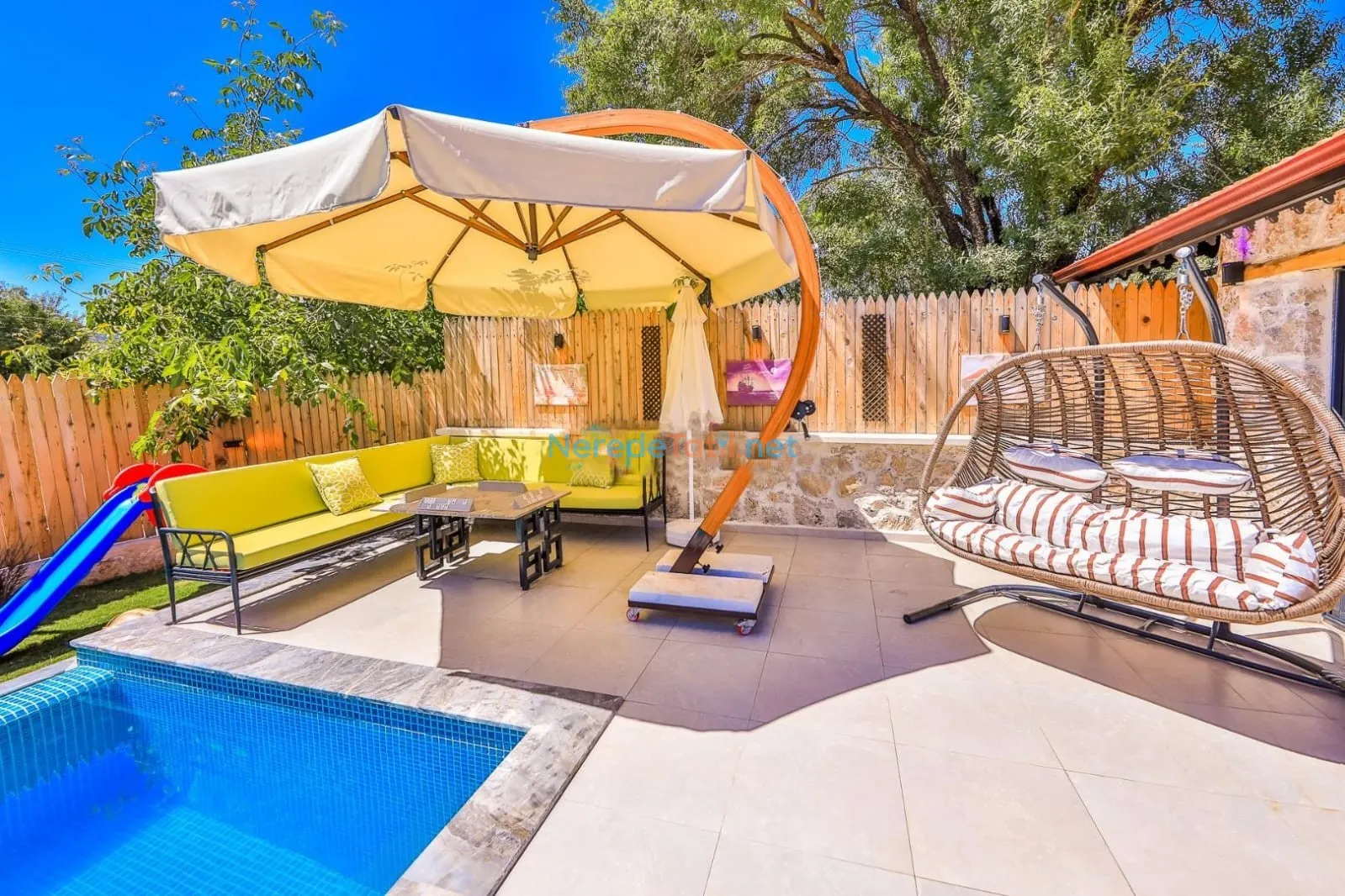 Bezirgan'ın eşsiz doğasında bulunan bu lüks villa, hem muhafazakar hem de balayı çiftleri için ideal bir konaklama sunuyor. Villanın dört kişilik kapasitesi ile iki yatak odası ve iki banyosu mevcuttur. Özel havuzu sayesinde misafirler gizlilik içinde tatilin tadını çıkarabilir. 3 metre genişliğinde, 7.5 metre uzunluğunda ve 1.5 metre derinliğindeki havuzu ile serinlemeye davet ediyor.
