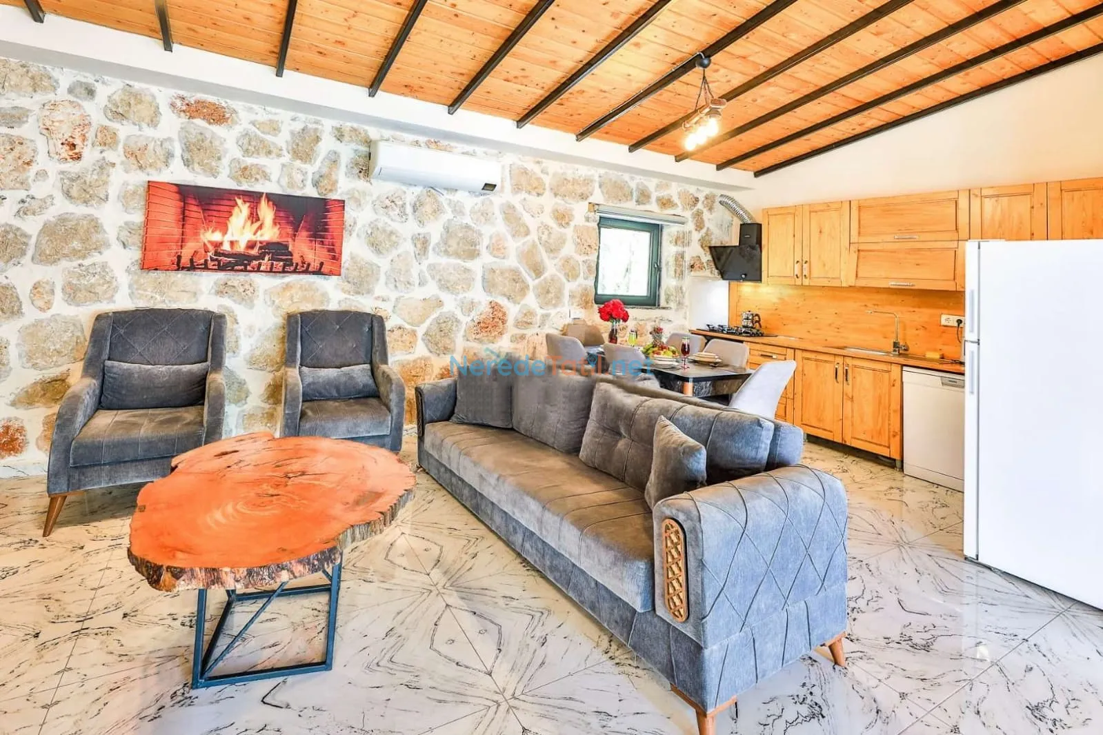Çevresindeki yerlere yakınlığı ile dikkat çeken bu villa, markete sadece 300 metre, restorana ise 1 kilometre mesafededir. Plaja ve merkeze 14 kilometre uzaklıkta olup, havalimanına 140 kilometre mesafededir. Bu, doğa ile iç içe huzurlu bir tatil arayanlar için mükemmel bir seçimdir.