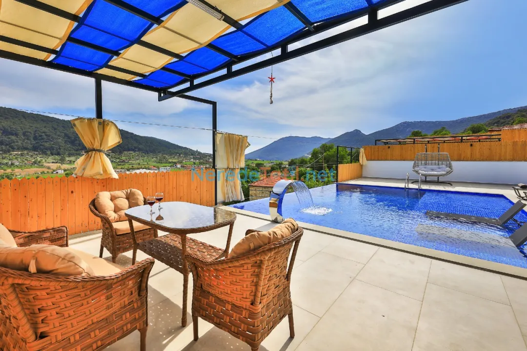 Villanın en dikkat çekici özelliklerinden biri, korunaklı ve özel havuzudur. Havuz, 4 metre genişliğinde, 8 metre uzunluğunda ve 1.55 metre derinliğindedir. Havuz başında sevdiklerinizle eğlenceli vakit geçirirken, doğa manzarasının tadını çıkarabilirsiniz.