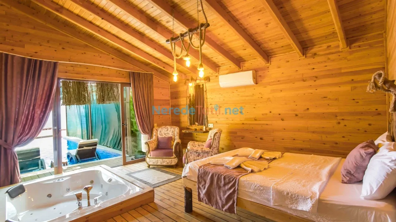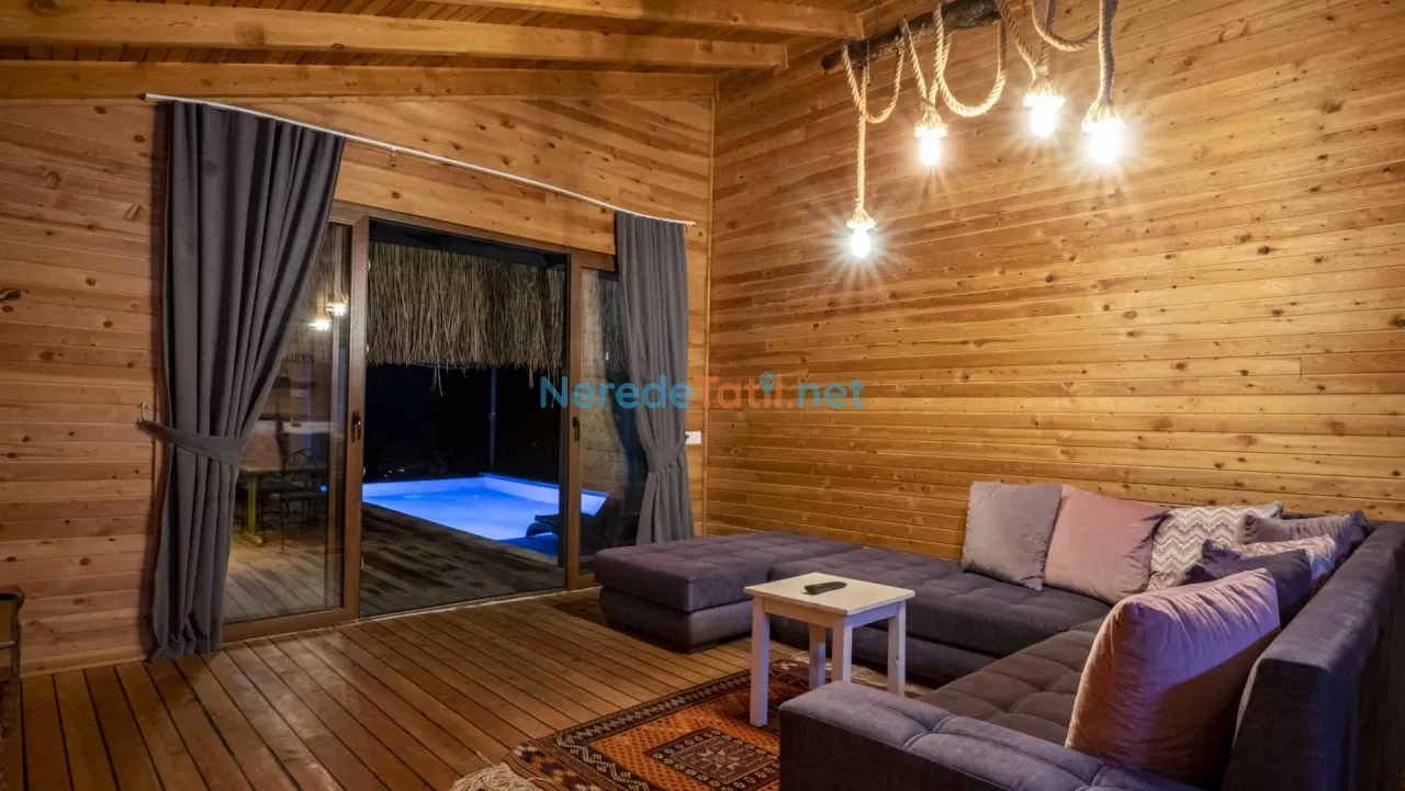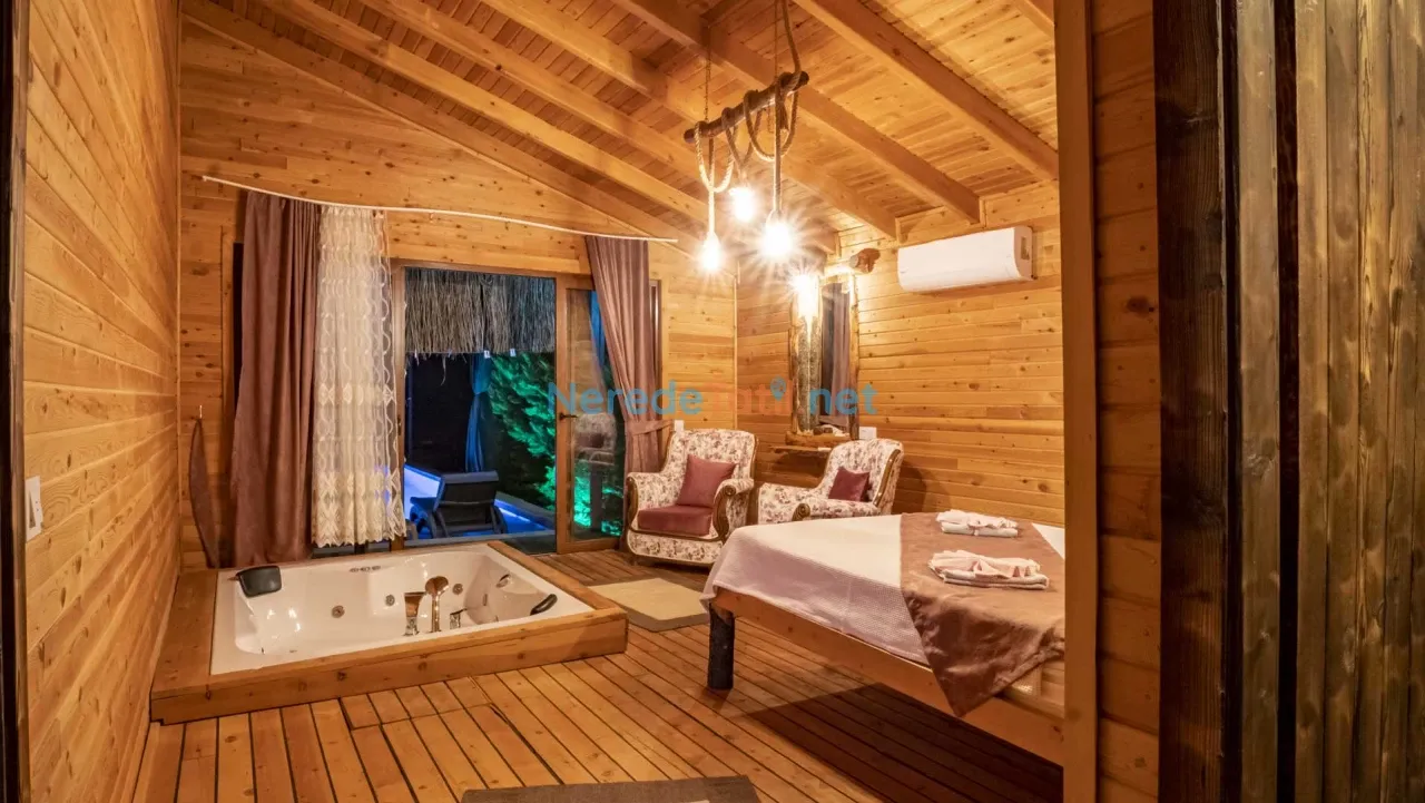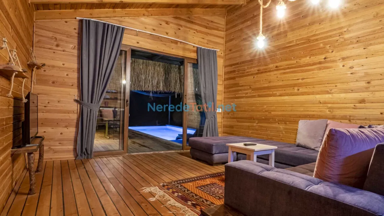 Villanın çevresindeki doğa manzarası, tatiliniz boyunca huzur verirken, akşamları BBQ - Mangal keyfi yapma imkanı sunuyor. Jakuzi ile günün yorgunluğunu atabilir, huzurlu bir tatilin keyfini çıkarabilirsiniz.