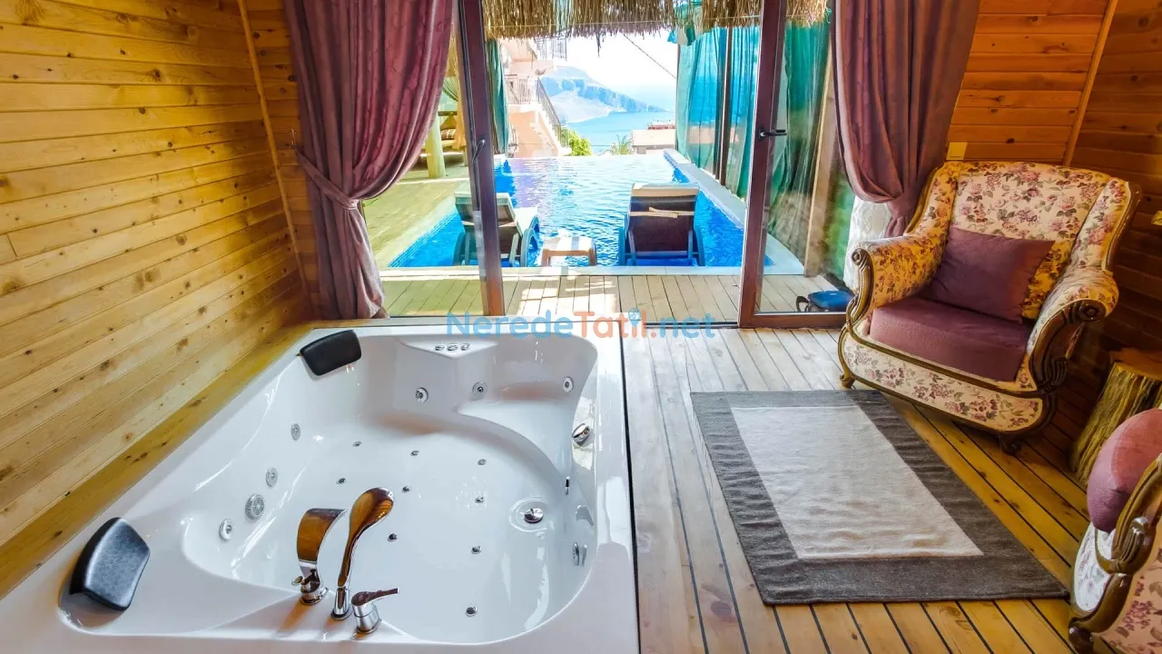 Villa, 3.5 metreye 5.5 metre ölçülerinde ve 1.55 metre derinliğinde korunaklı yüzme havuzu sunmaktadır. Bu özellik, mahremiyetin ön planda olduğu muhafazakar tatil arayışında olan misafirler için mükemmel bir tercih yapmaktadır.