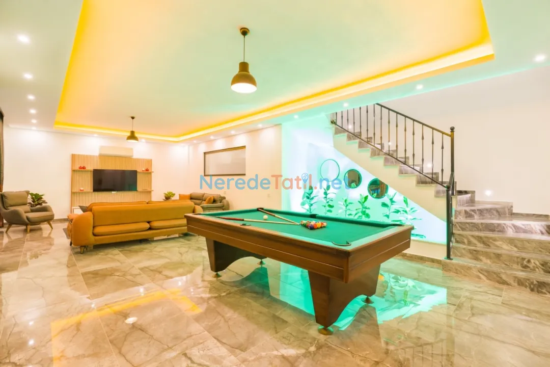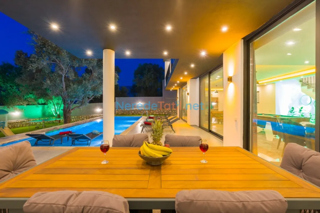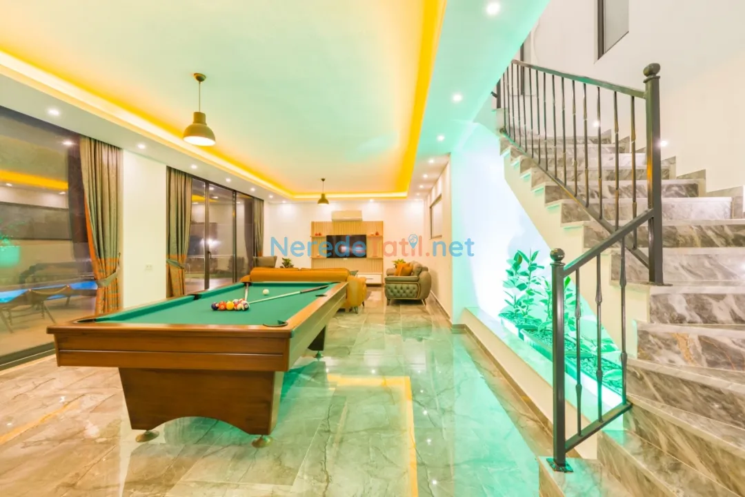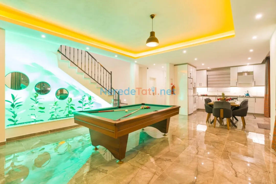 Korunaklı özel havuzu ile mahremiyetinizi korurken, 3.5 metre genişliğinde ve 1.5 metre derinliğindeki havuzda serinleyebilirsiniz. Villada ayrıca jakuzi bulunmakta olup, günün yorgunluğunu atmanız için ideal bir ortam sunar. Doğa manzaralı bahçesinde barbekü keyfi yapabilir, bilardo masası ile eğlenceli vakit geçirebilirsiniz.