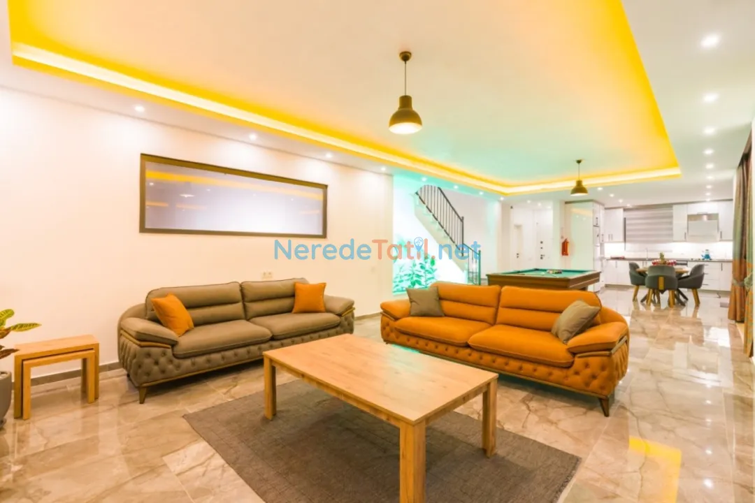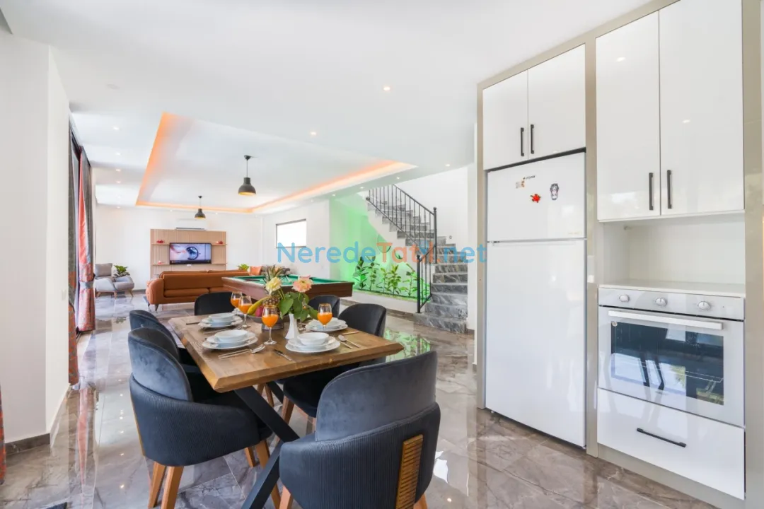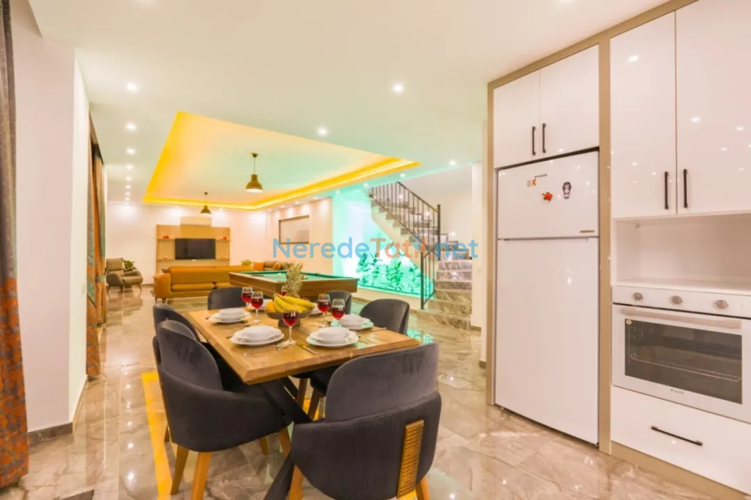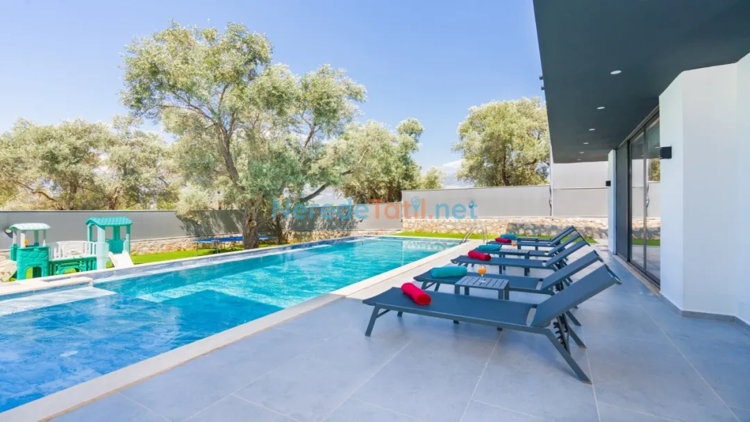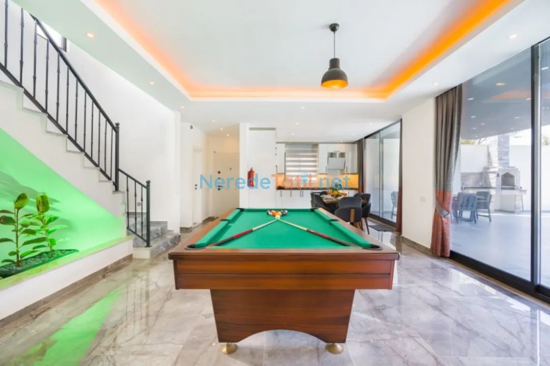 Korunaklı özel havuzu ile mahremiyetinizi korurken, 3.5 metre genişliğinde ve 1.5 metre derinliğindeki havuzda serinleyebilirsiniz. Villada ayrıca jakuzi bulunmakta olup, günün yorgunluğunu atmanız için ideal bir ortam sunar. Doğa manzaralı bahçesinde barbekü keyfi yapabilir, bilardo masası ile eğlenceli vakit geçirebilirsiniz.