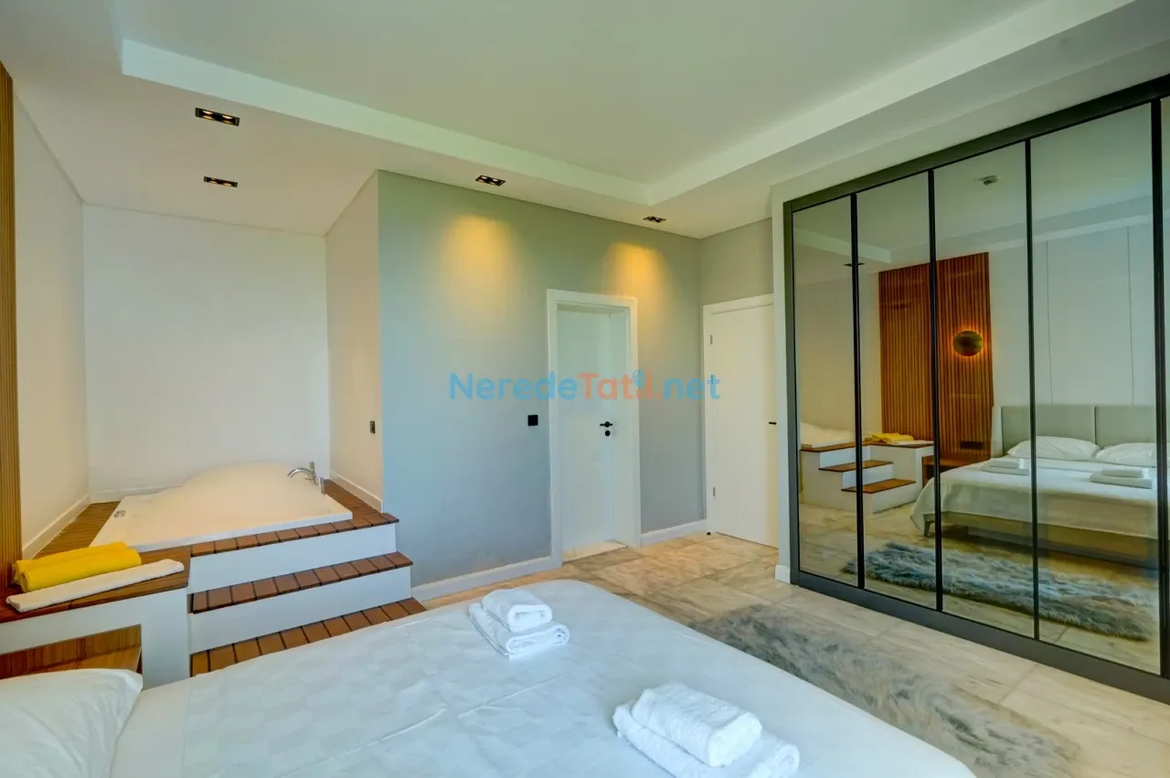 İslamlar'ın huzurlu doğasında yer alan bu lüks villa, 6 kişilik konaklama kapasitesi ile aileler ve arkadaş grupları için mükemmel bir tatil imkanı sunuyor. Villada üç yatak odası ve üç banyo bulunmakta, konforunuz için tüm detaylar düşünülmüştür. İki çift kişilik yatak ve iki tek kişilik yatak ile rahat bir uyku deneyimi yaşanır.