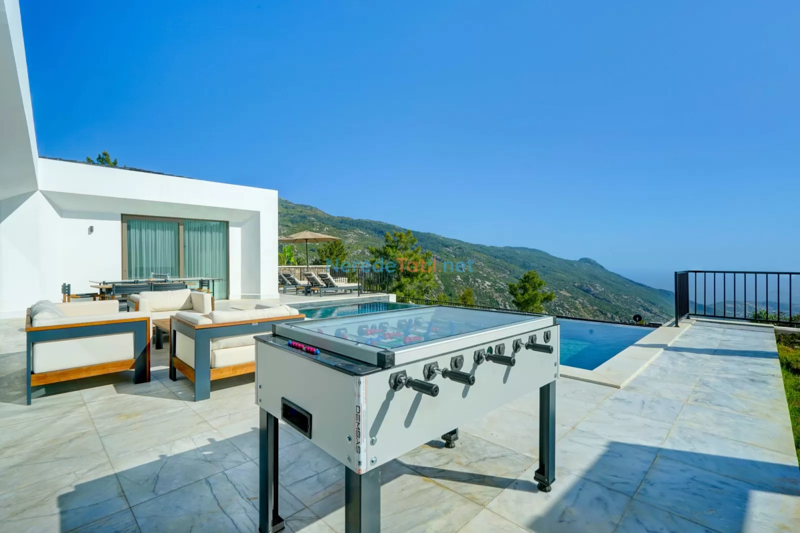 Geniş bahçesi, BBQ - Mangal alanı ve doğa manzarası ile huzurlu bir ortamda dinlenme imkanı sunulmaktadır. Ayrıca villanın deniz manzaralı olması, tatilinize farklı bir değer katmaktadır. Villada bulunan langırt ve masa tenisi gibi oyun alanları sayesinde eğlenceli vakit geçirebilirsiniz.