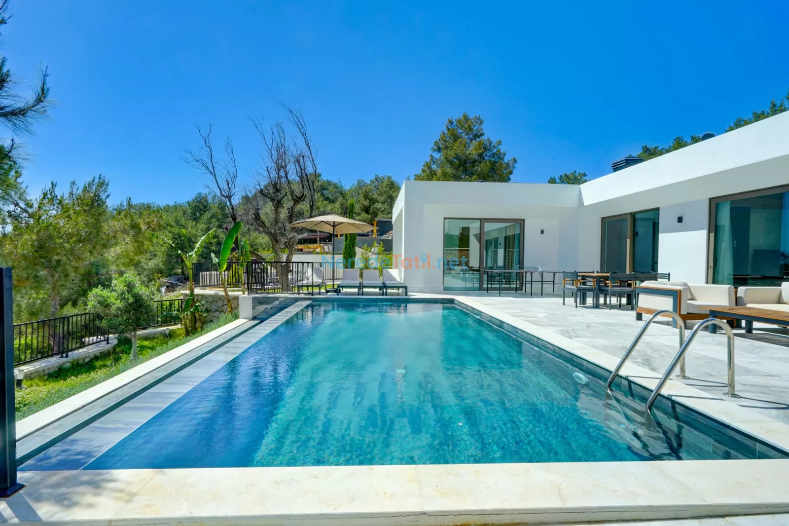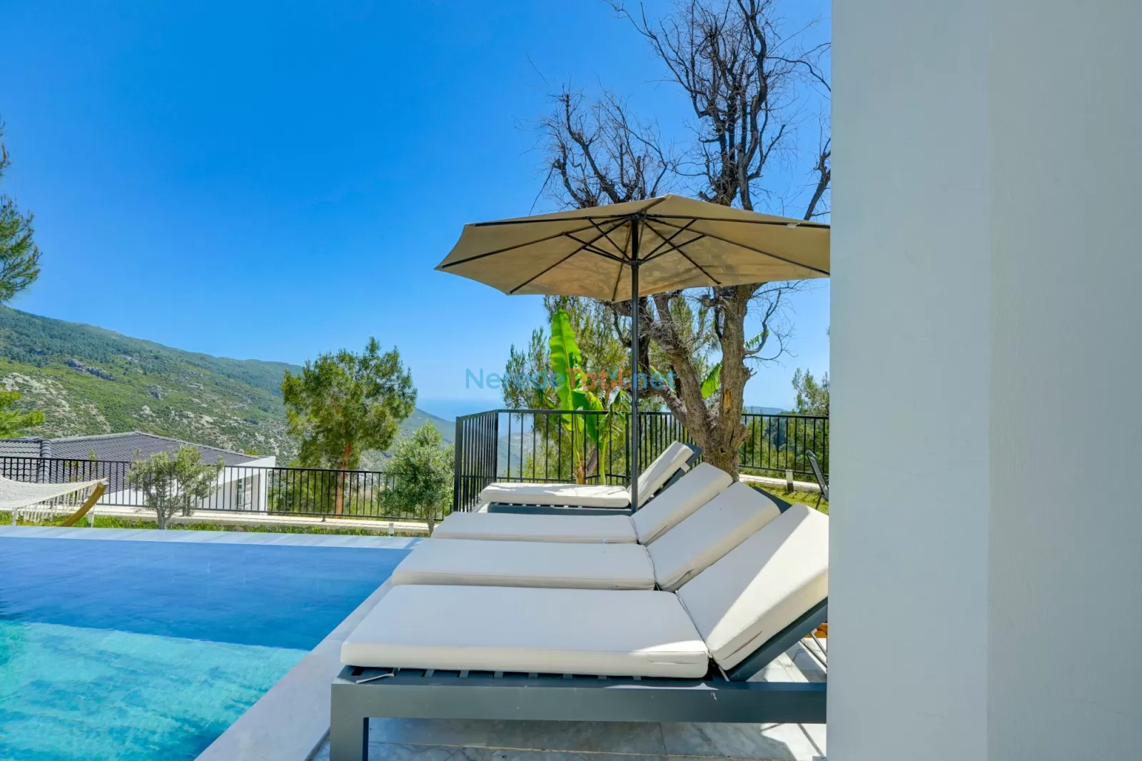 Villanın etkileyici bir özel yüzme havuzu vardır. Havuzun boyutları 4x8 metre olup, derinliği 1.5 metre olarak tasarlanmıştır. Ayrıca villanın korunaklı yapısı sayesinde muhafazakar aileler için de uygundur. Doğa içinde huzurlu bir tatil geçirirken, deniz manzarasının tadını çıkarabilirsiniz.